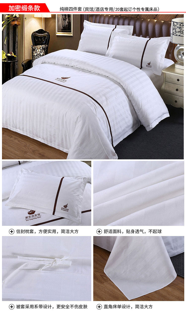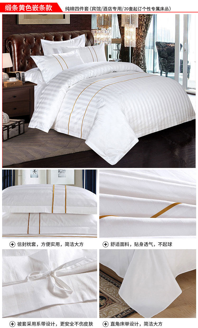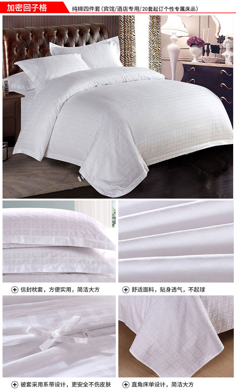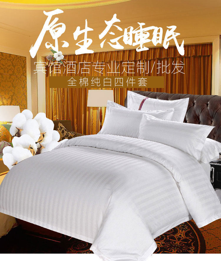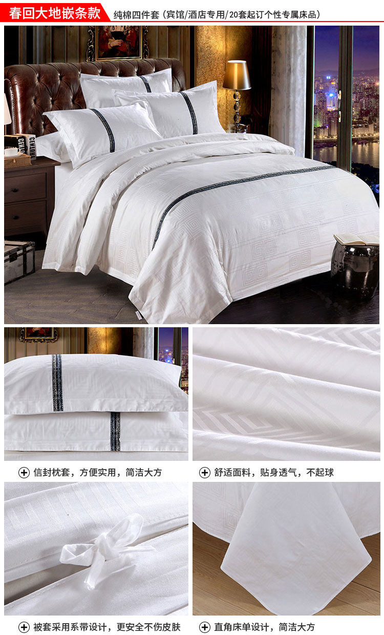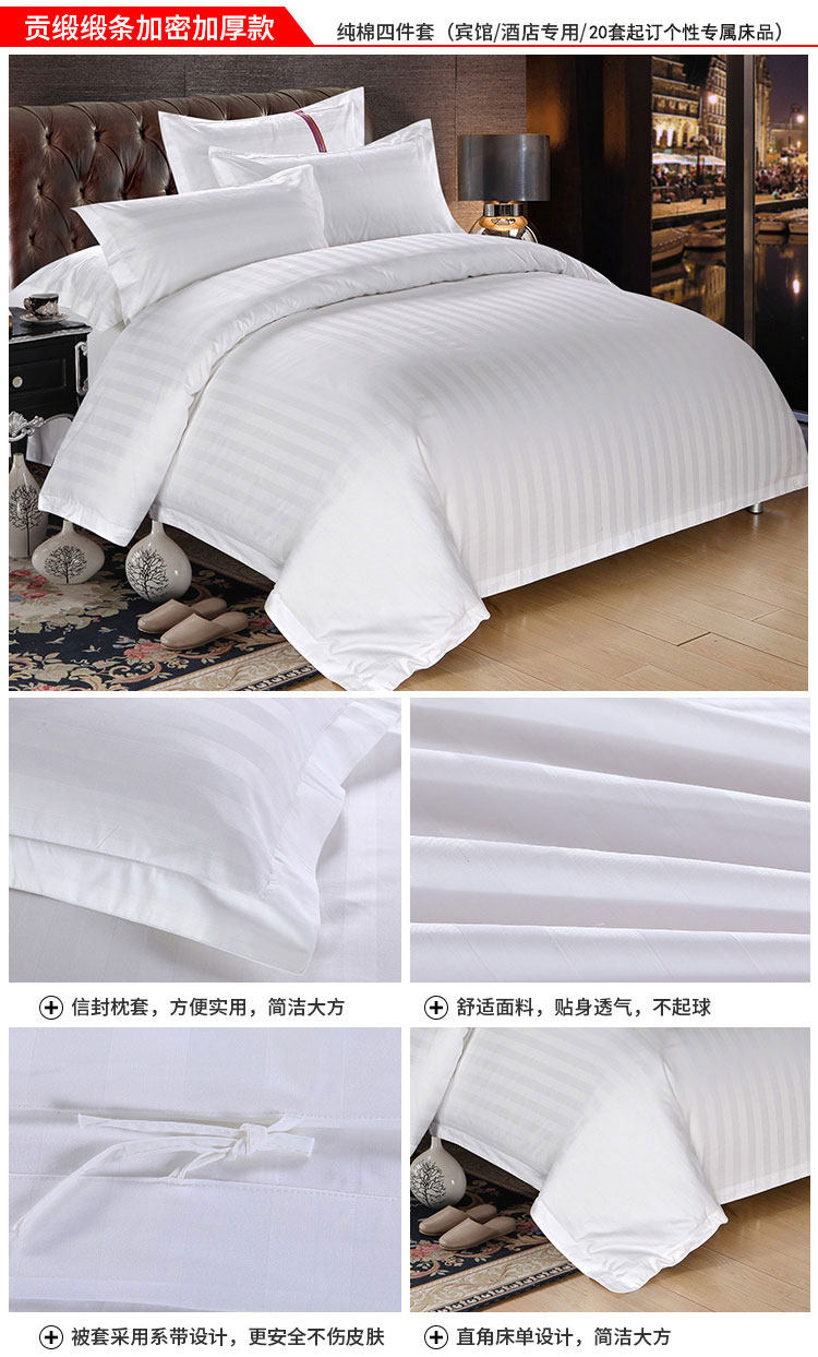 賓館酒店床上用品全棉三四件套純白色被套床單純棉五星級套件貢緞