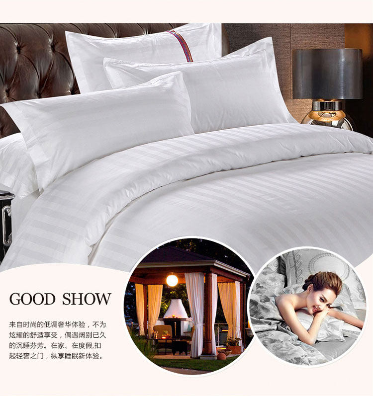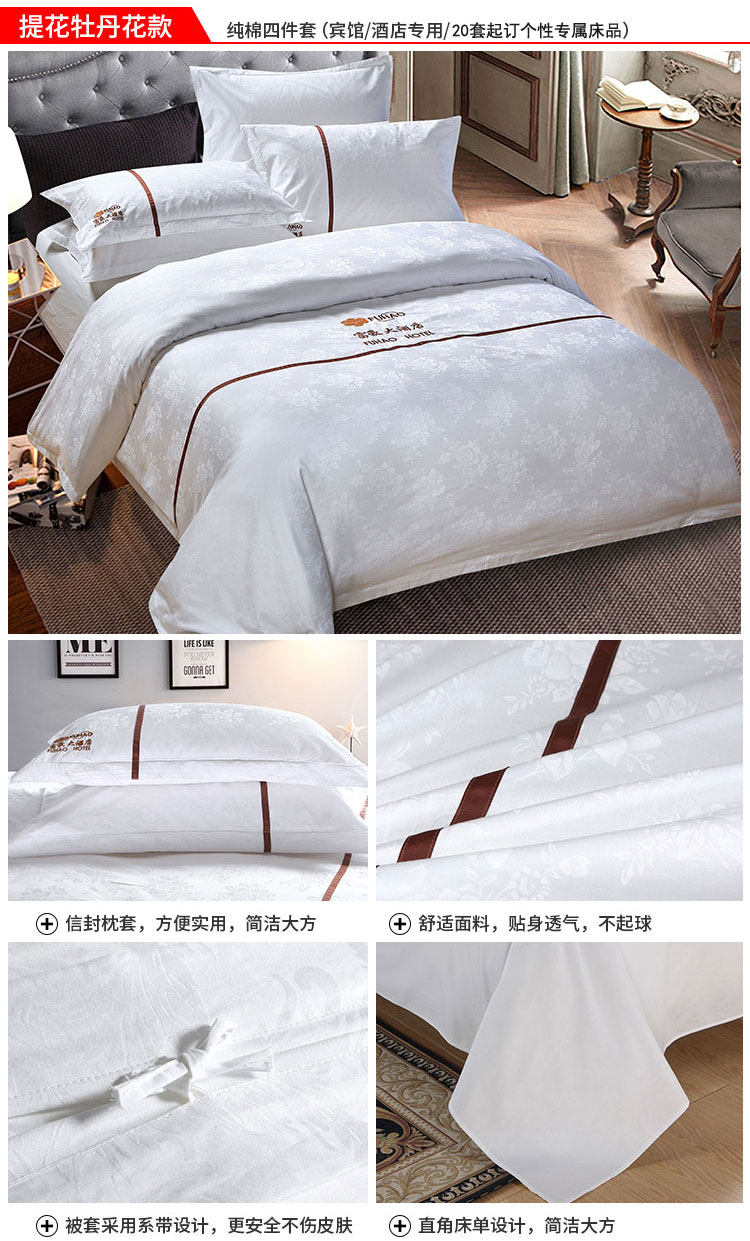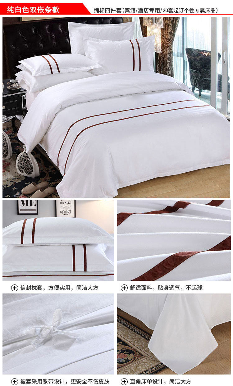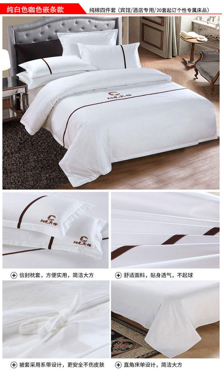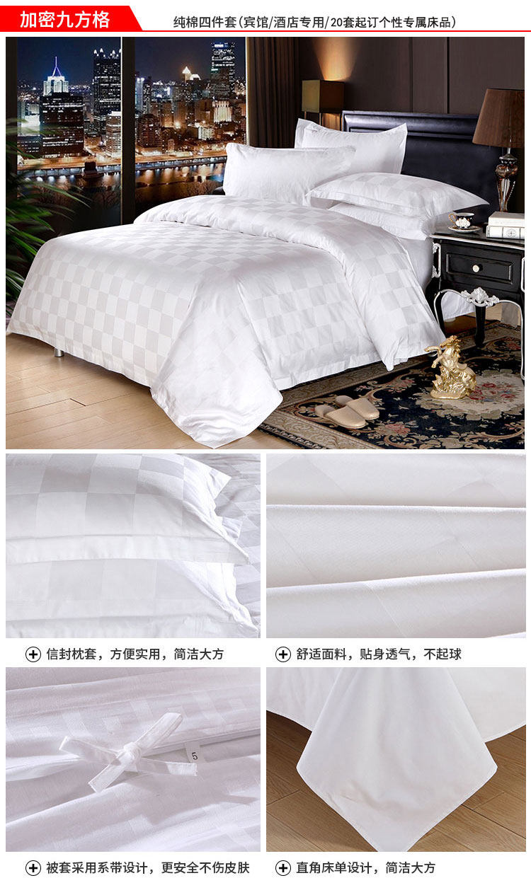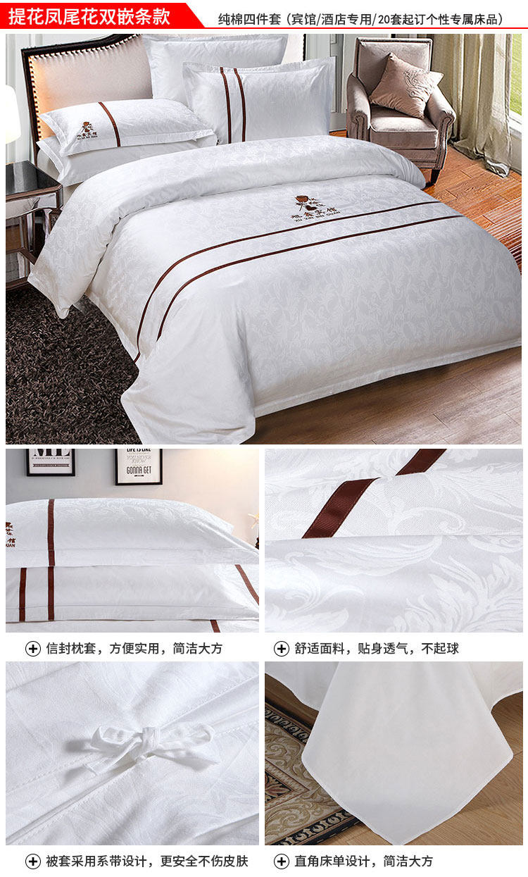 賓館酒店床上用品全棉三四件套純白色被套床單純棉五星級套件貢緞