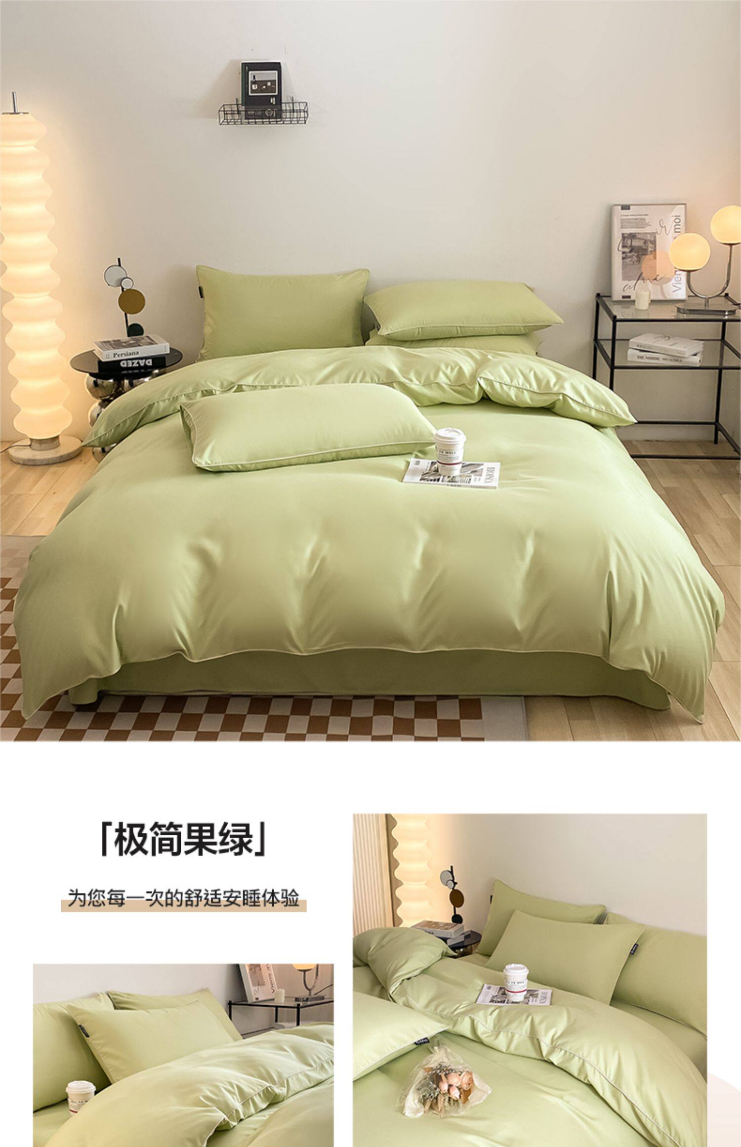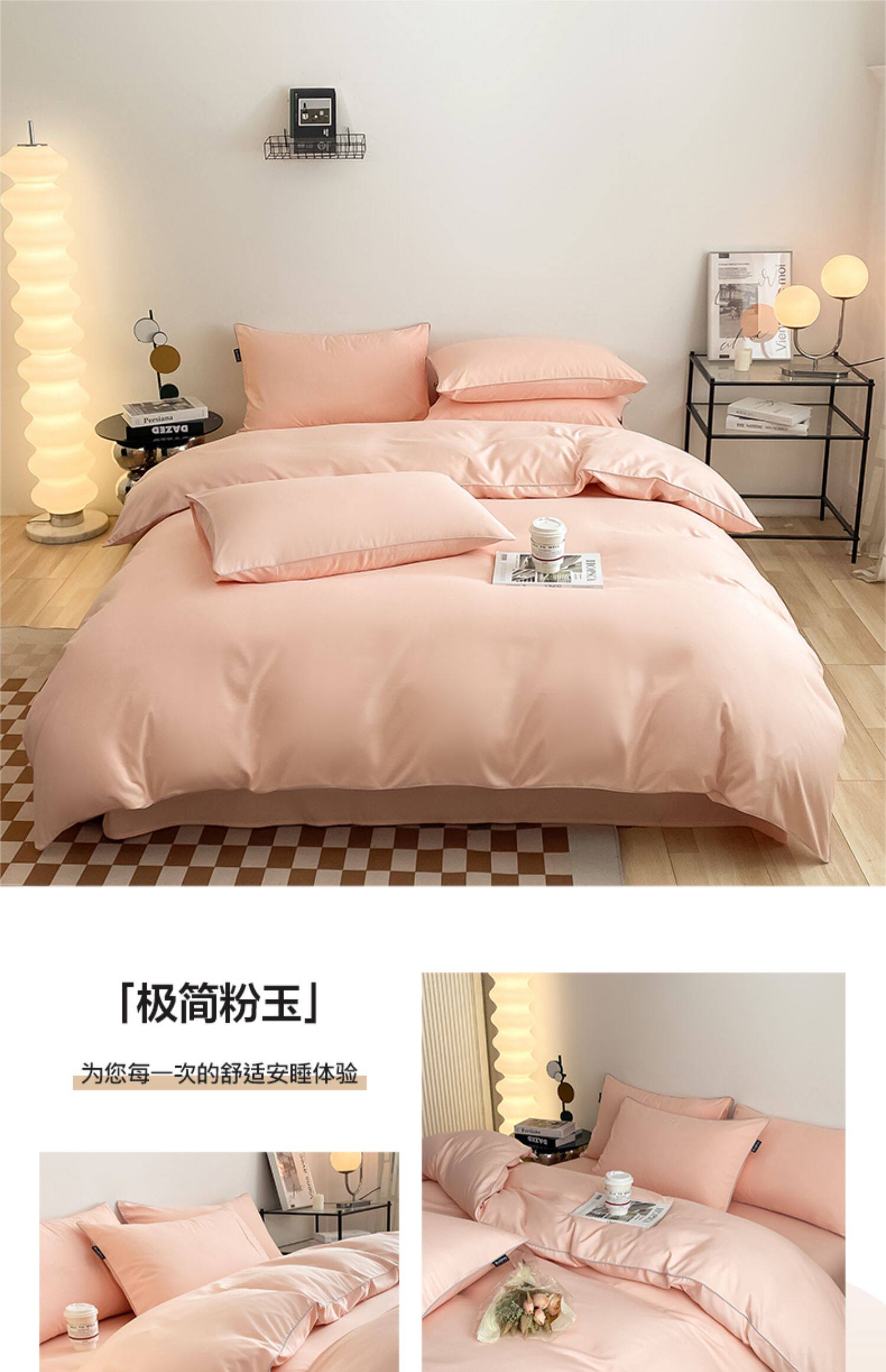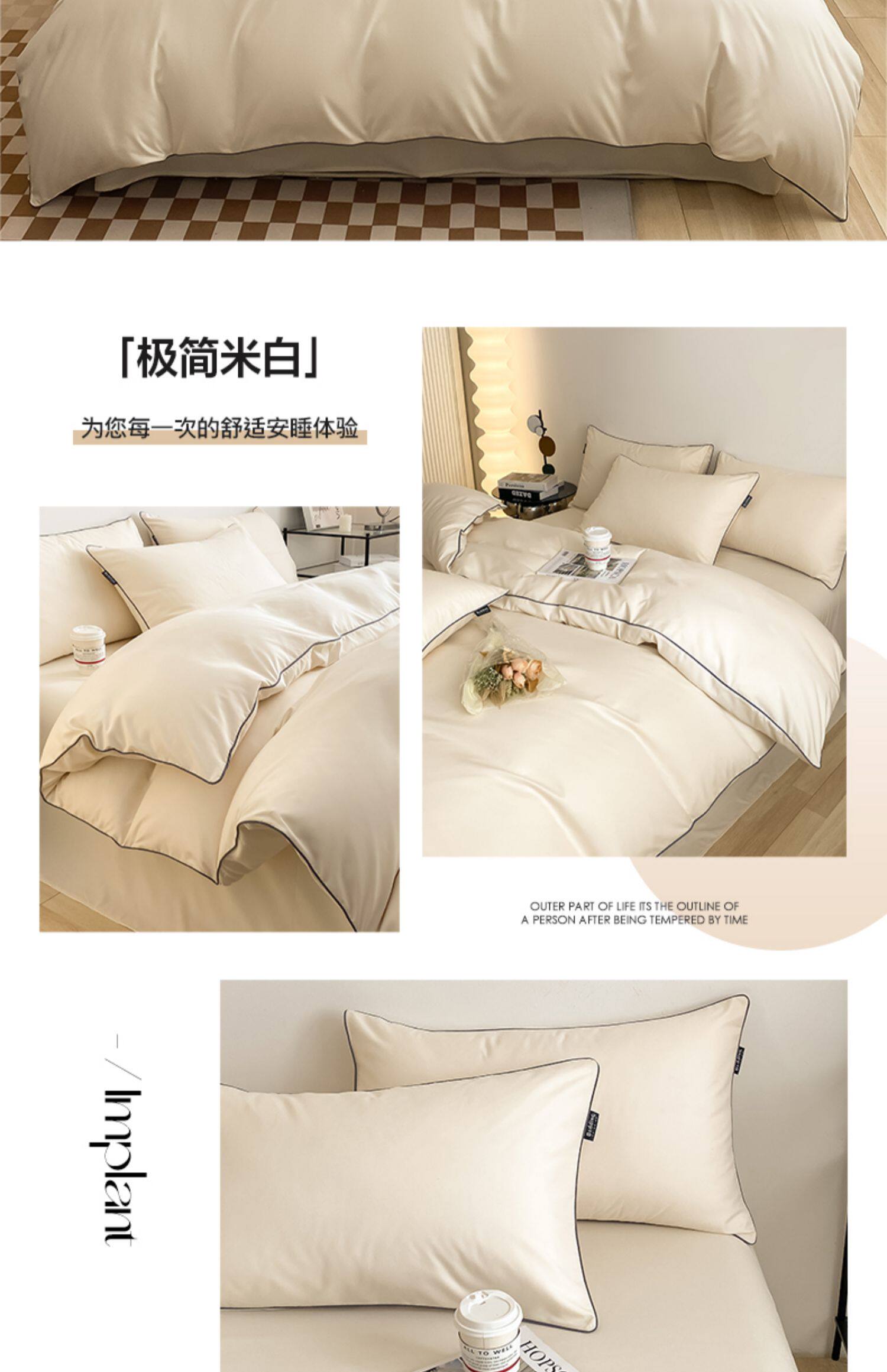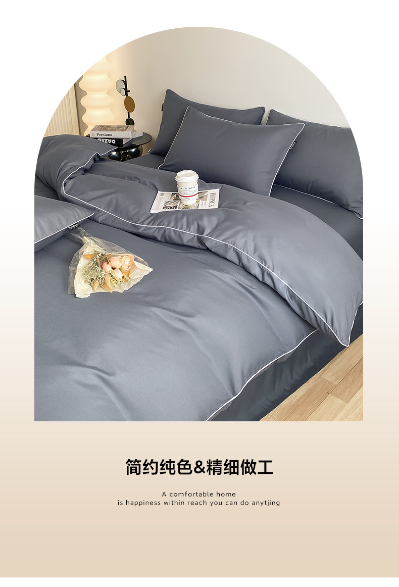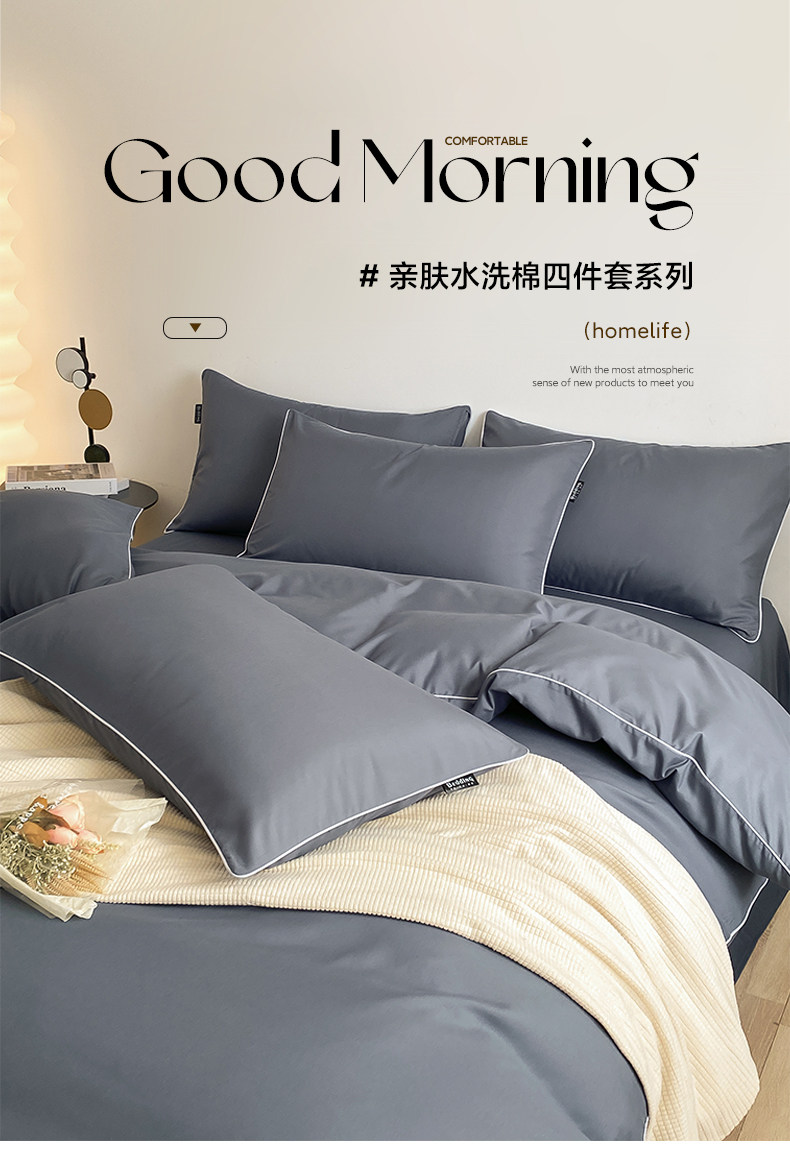 輕奢風高級感水洗棉四件套純色被套床單三件套非純棉全棉床上用品