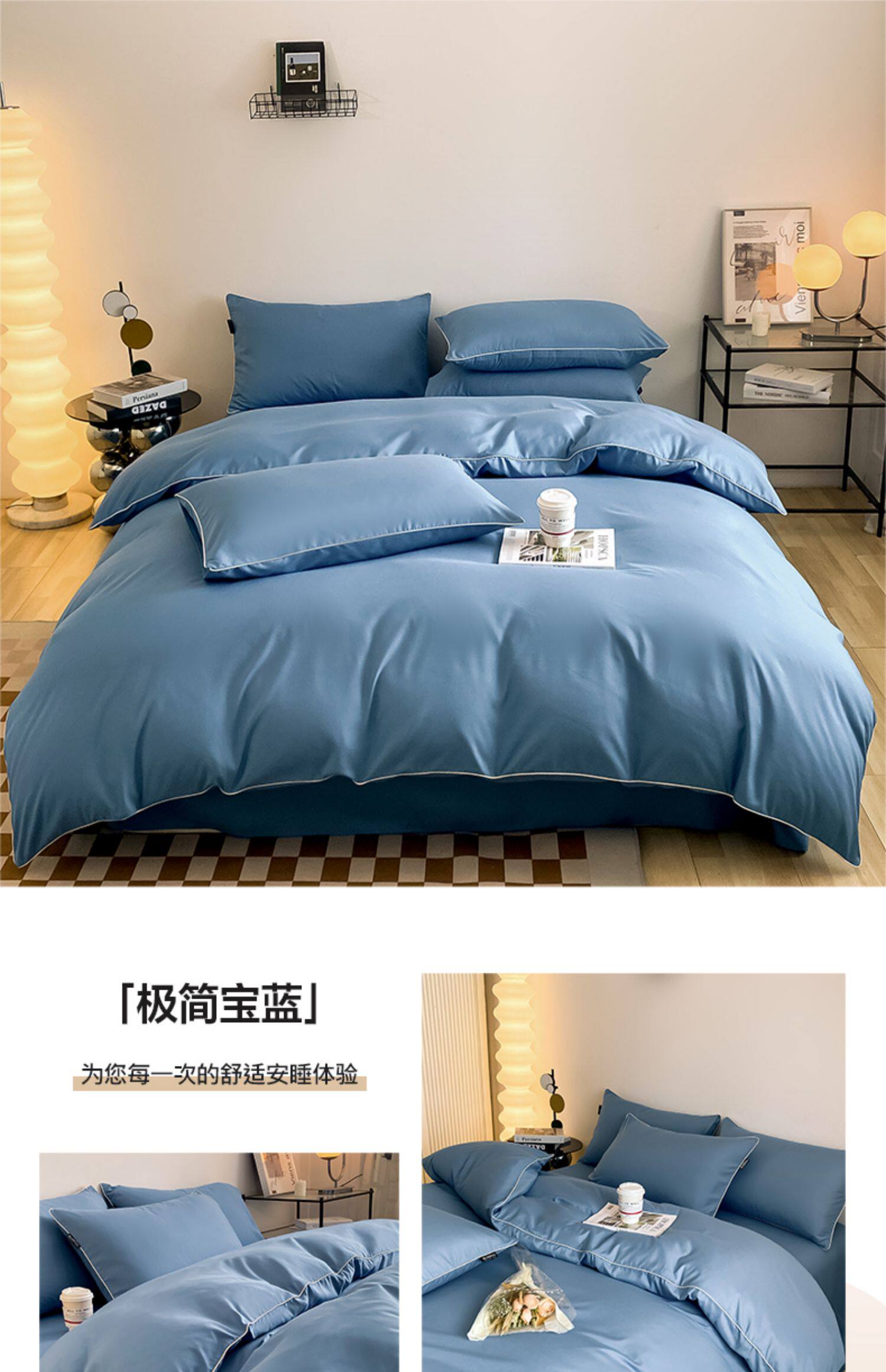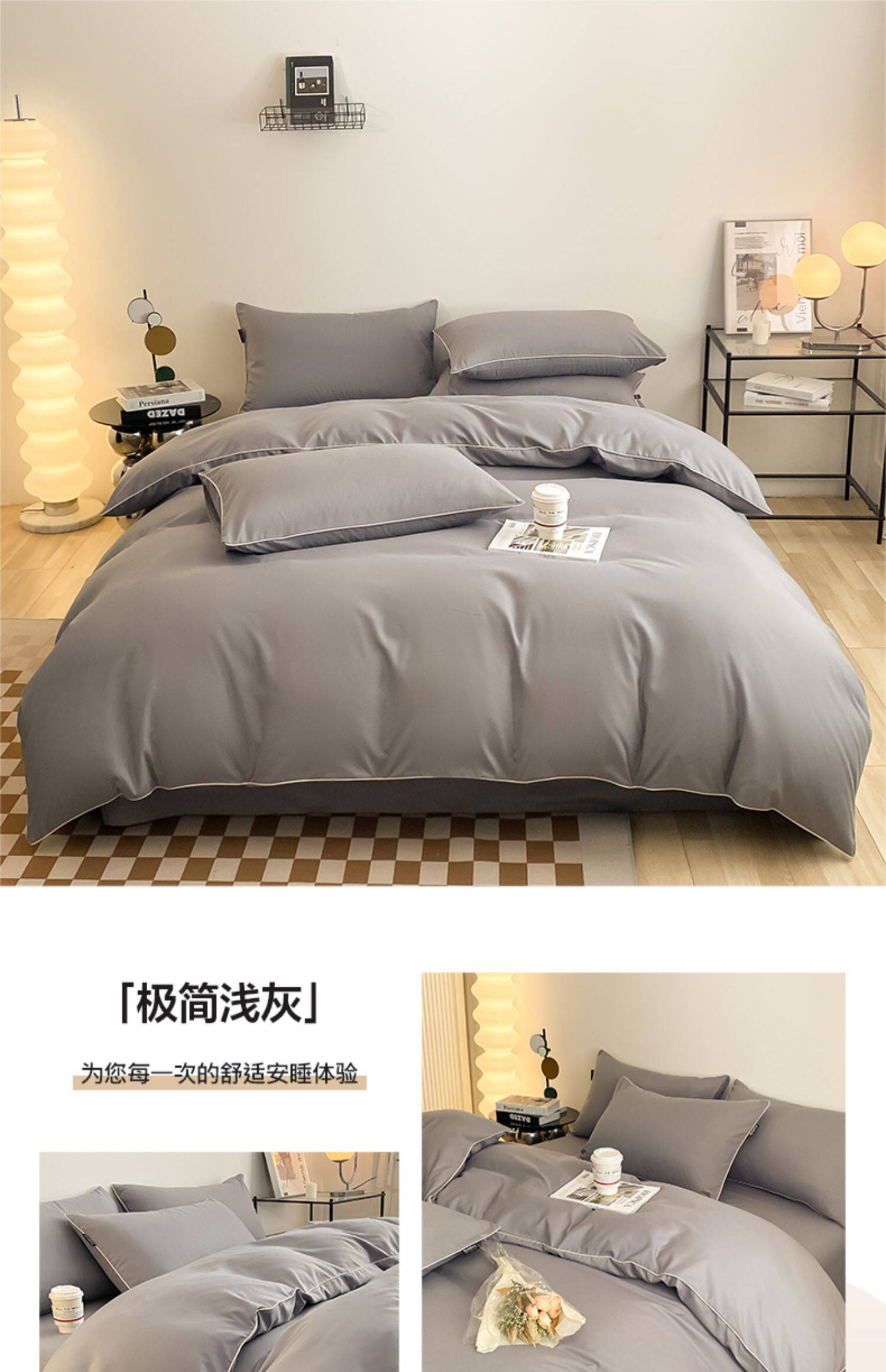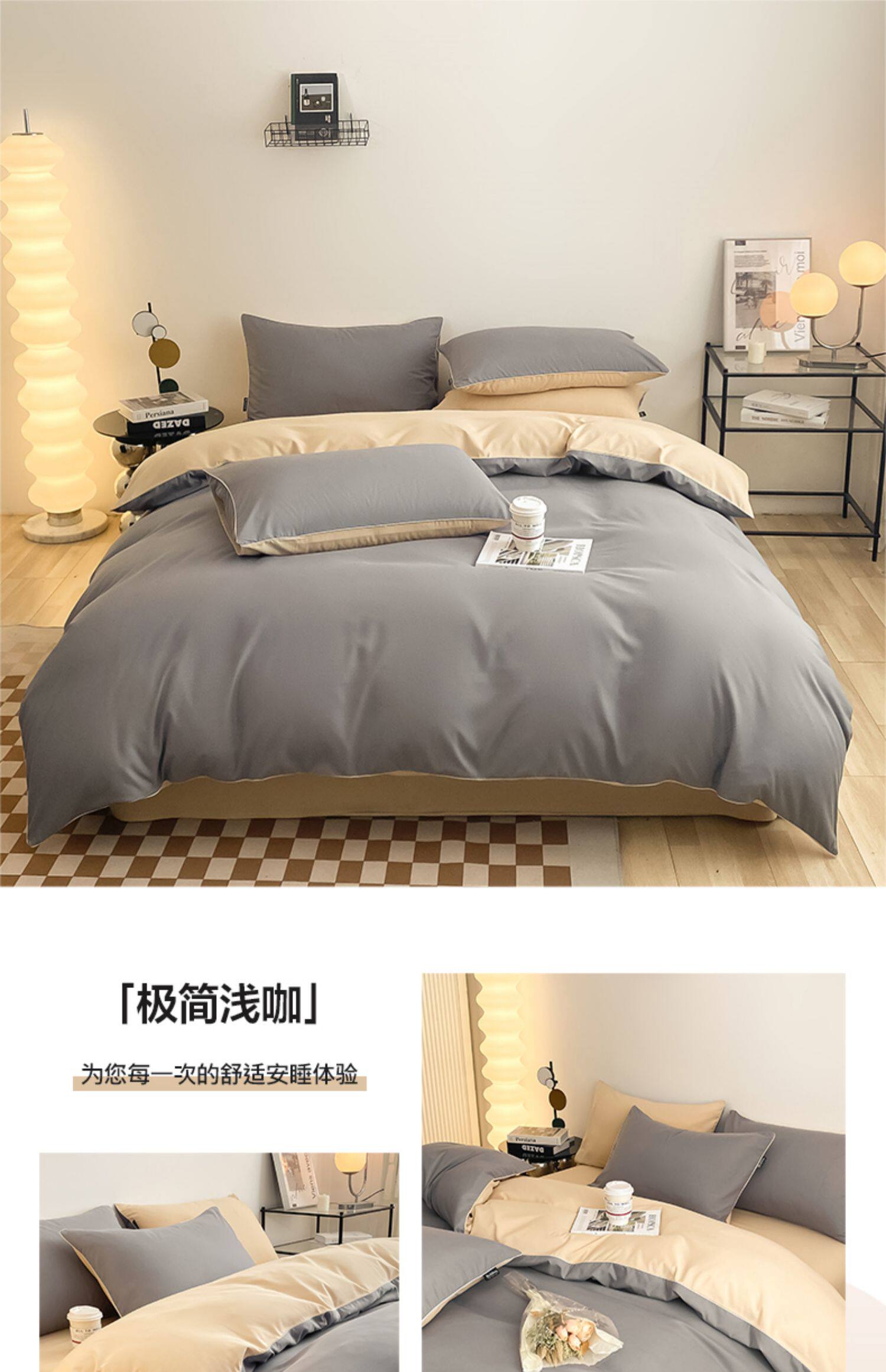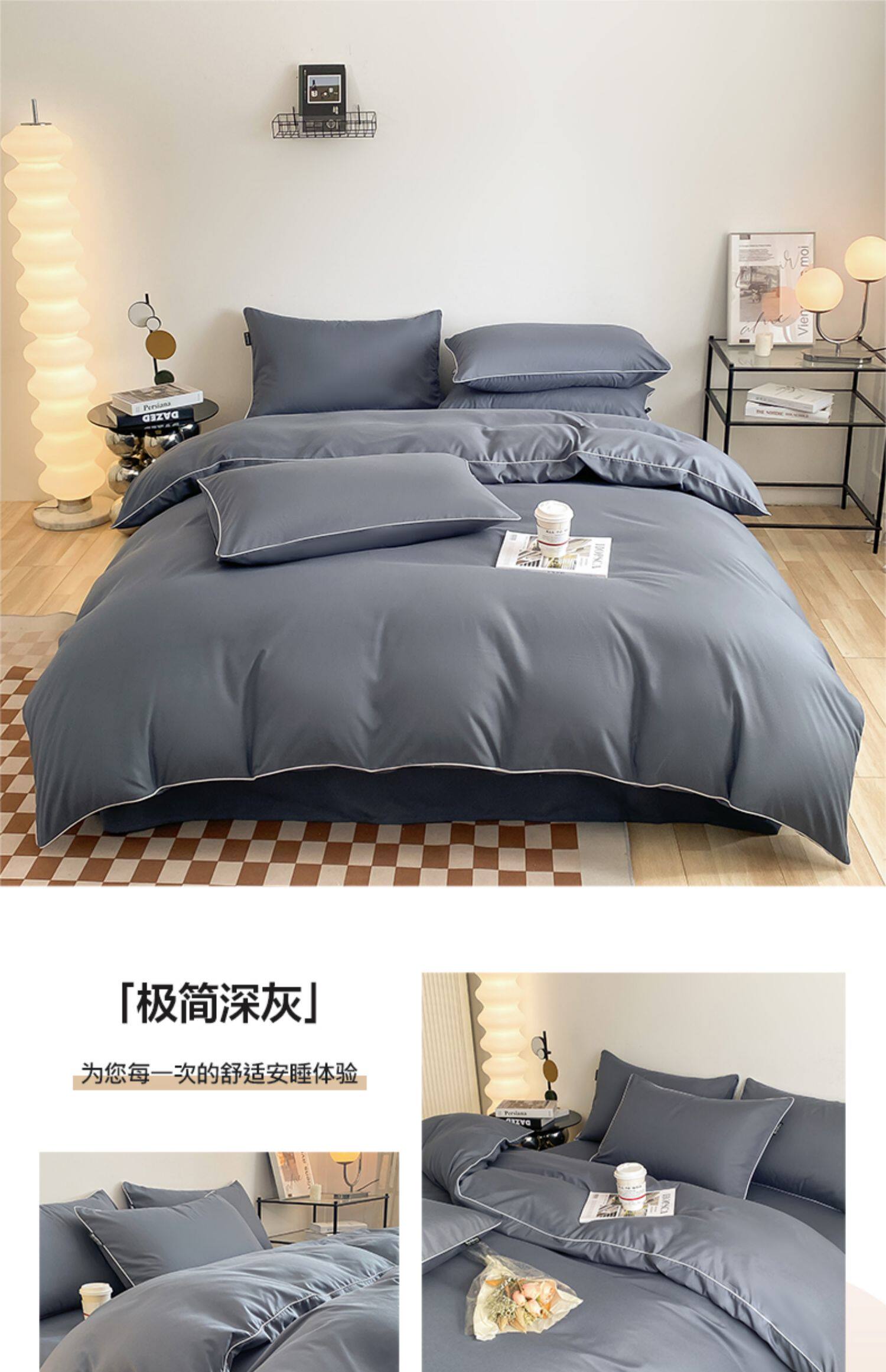 輕奢風高級感水洗棉四件套純色被套床單三件套非純棉全棉床上用品