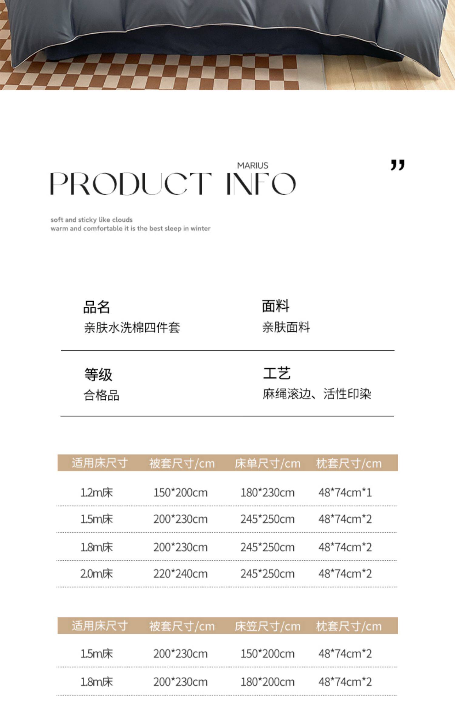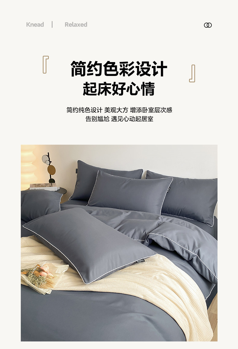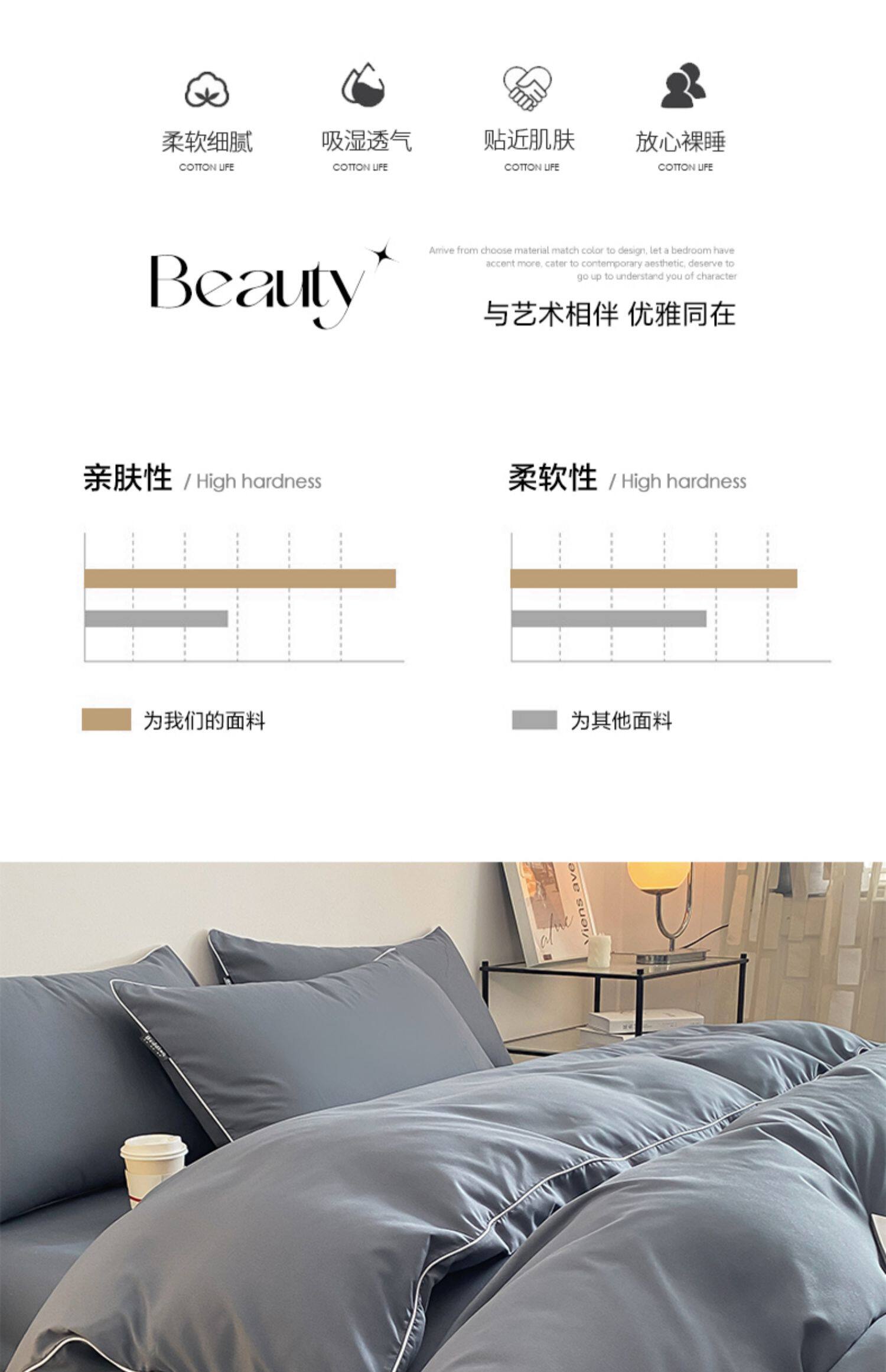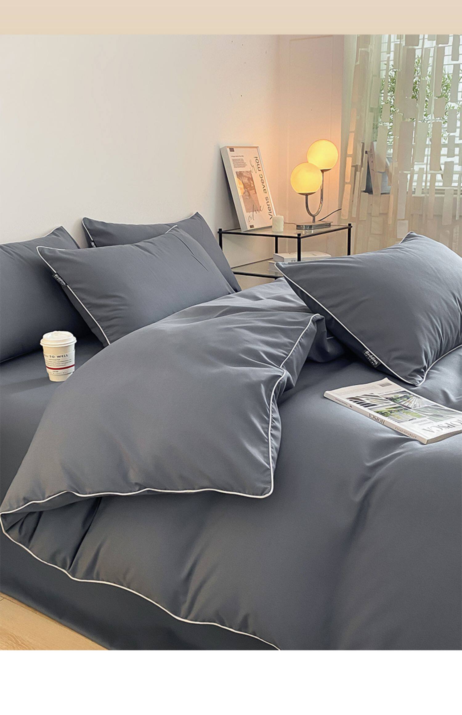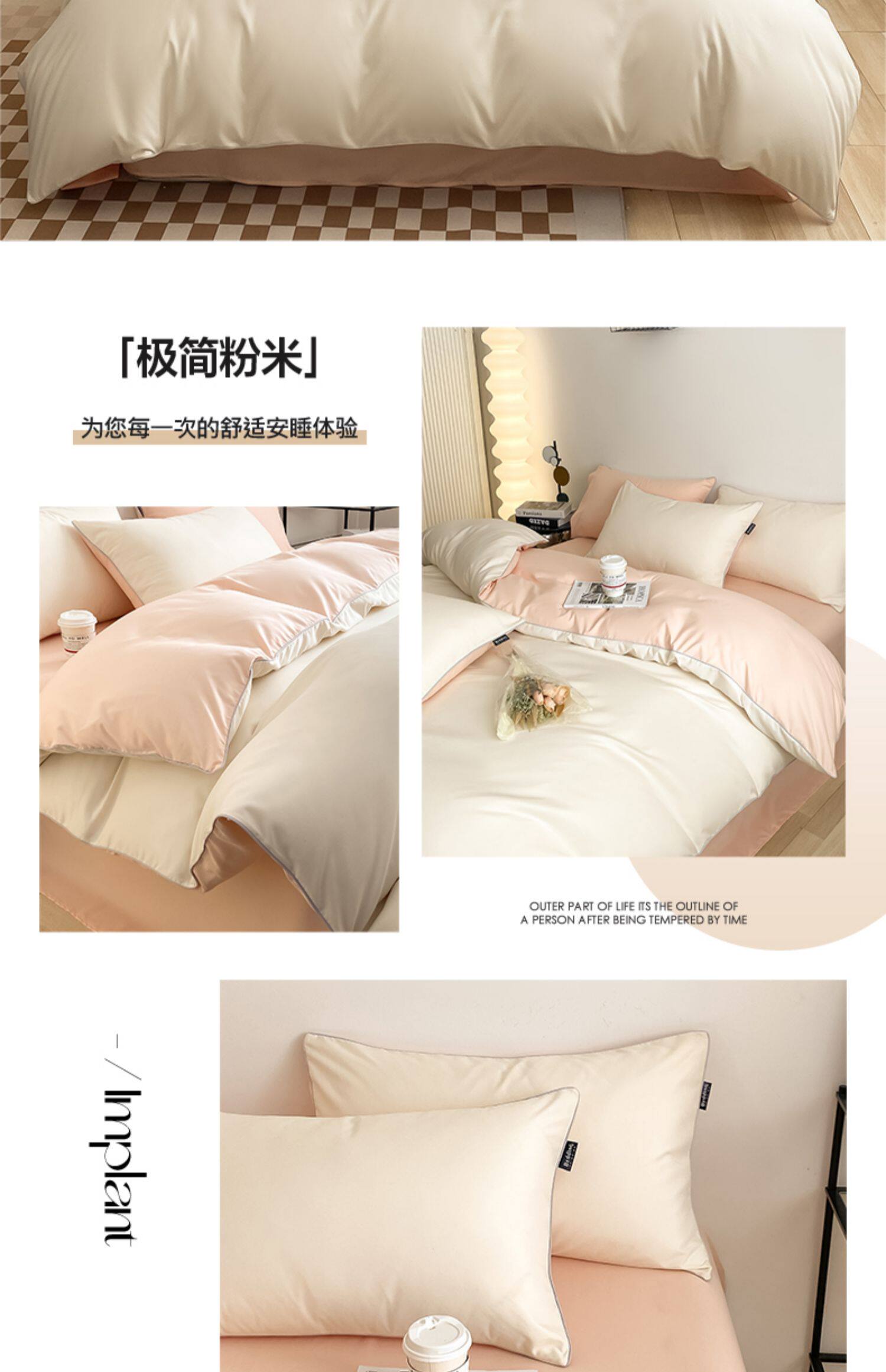 輕奢風高級感水洗棉四件套純色被套床單三件套非純棉全棉床上用品