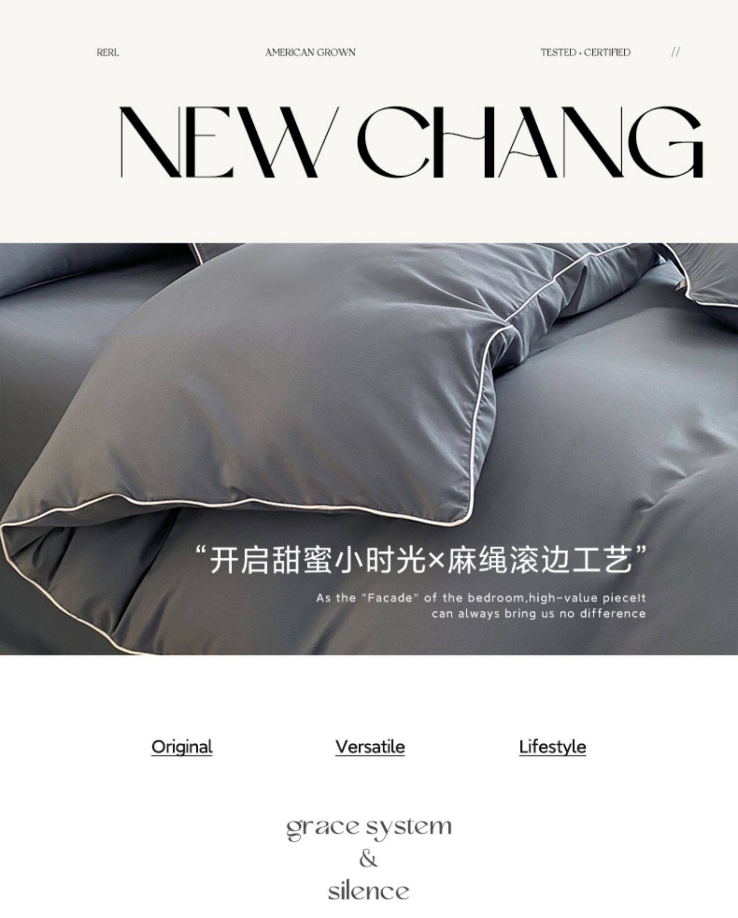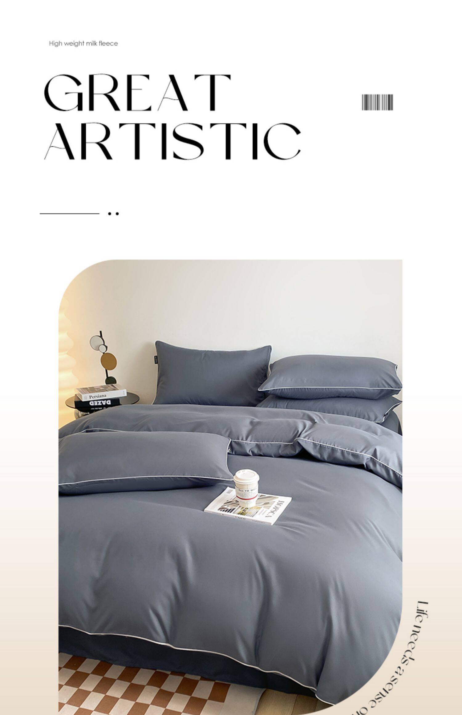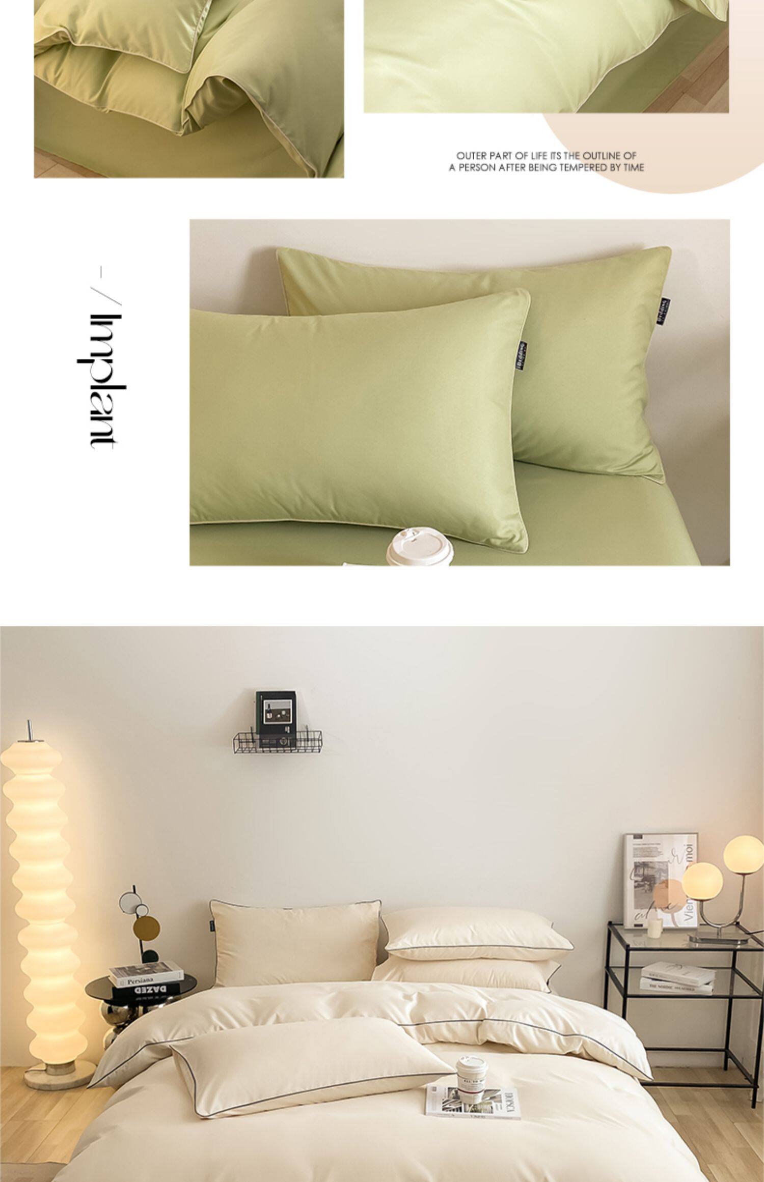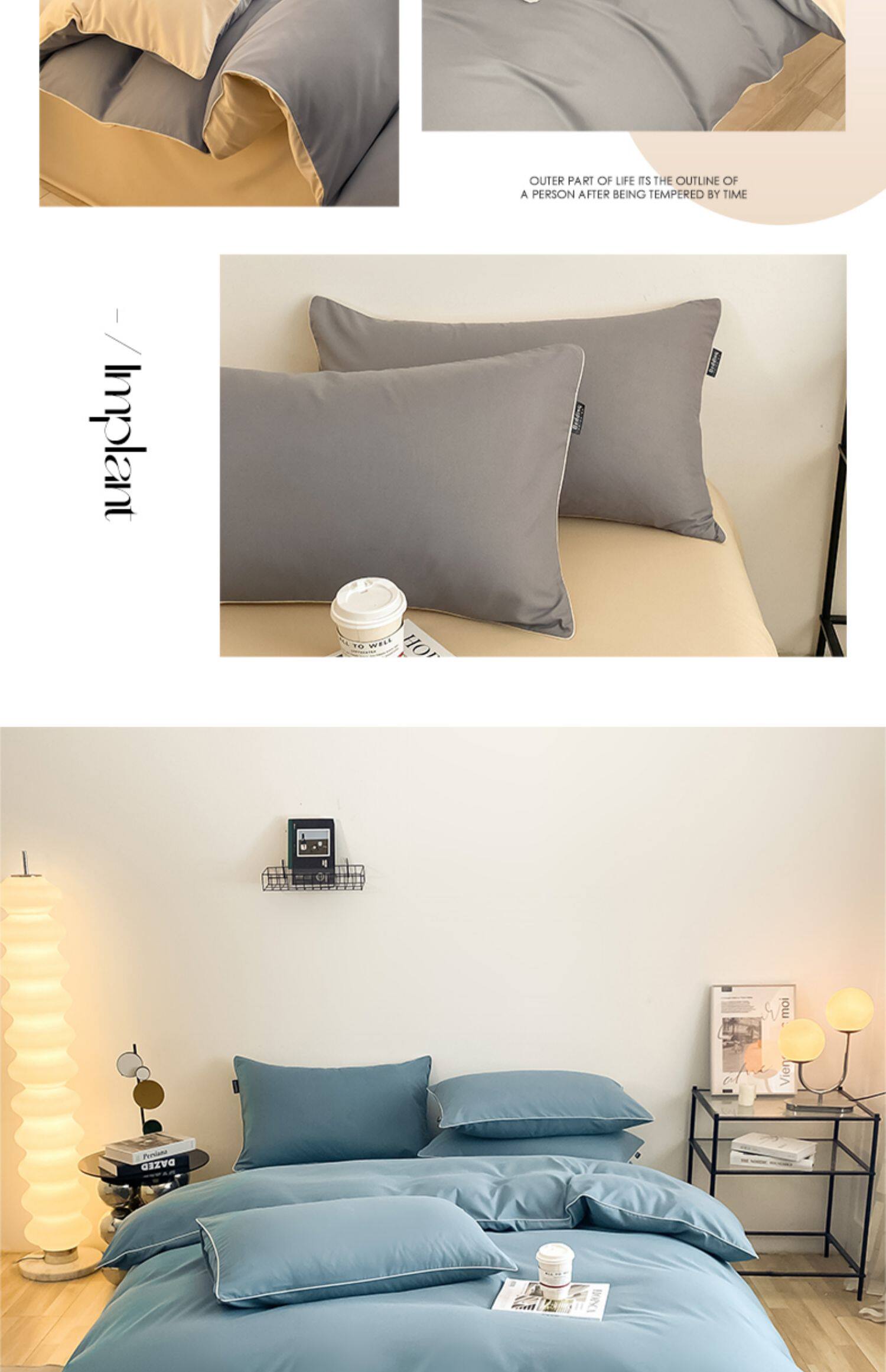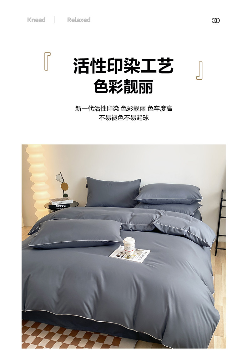 輕奢風高級感水洗棉四件套純色被套床單三件套非純棉全棉床上用品