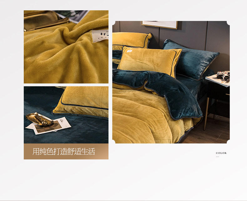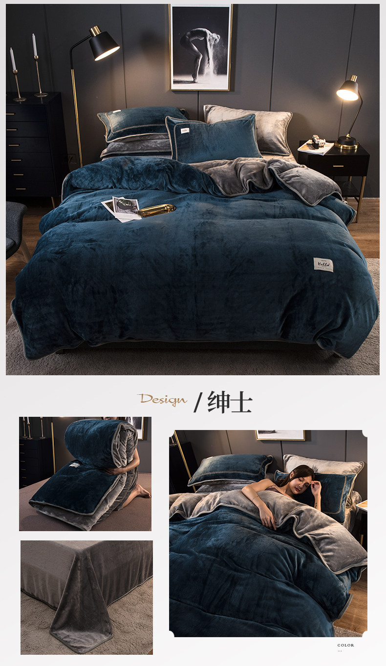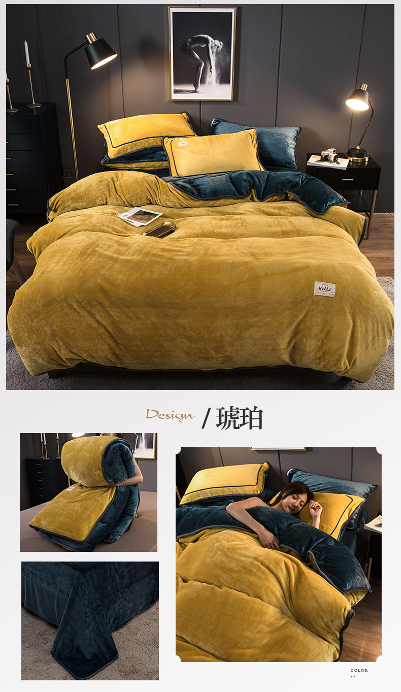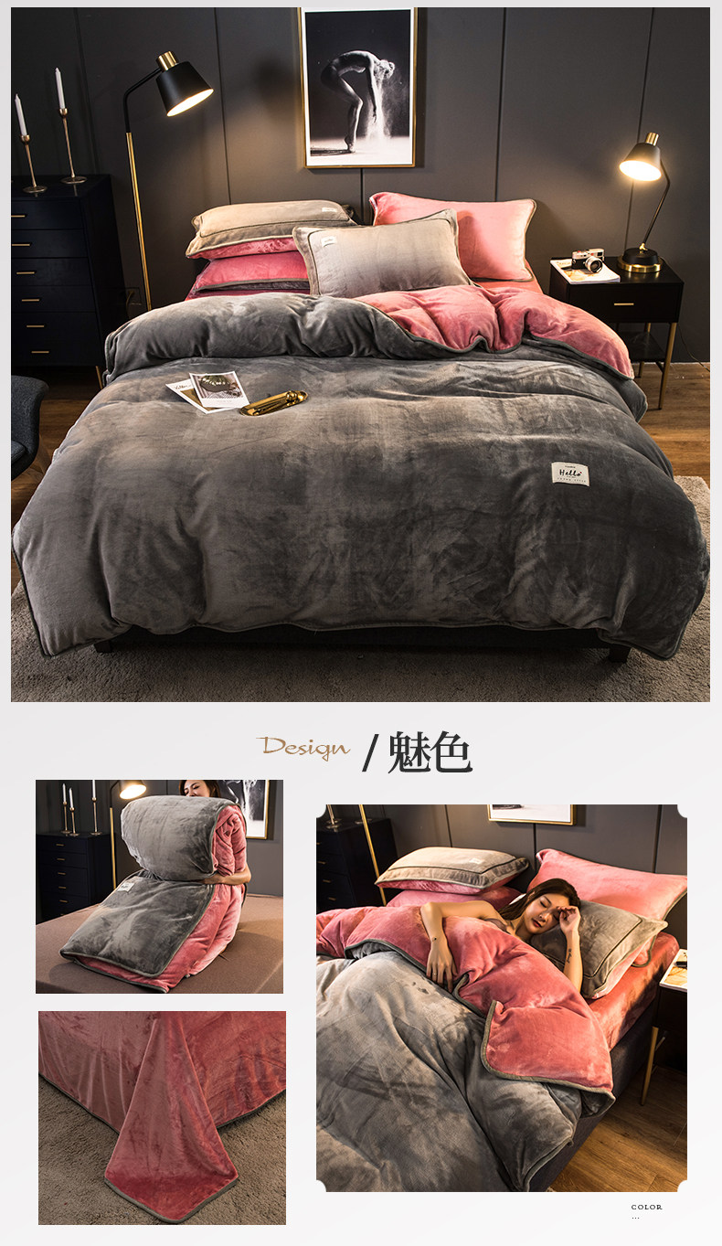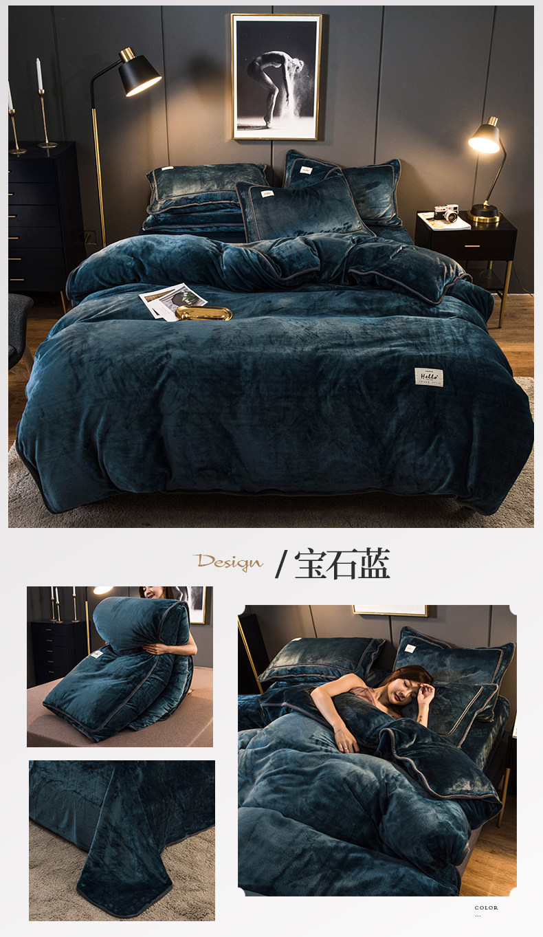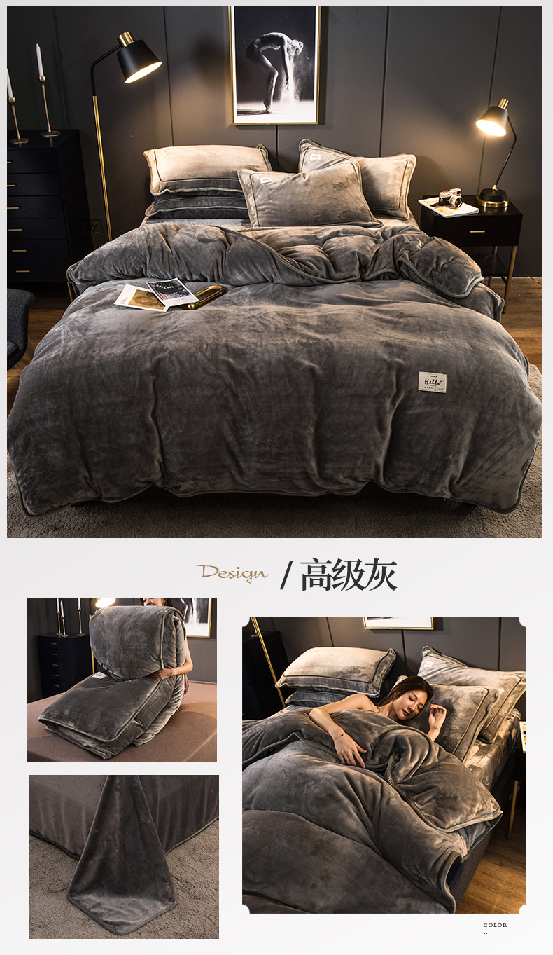 冬季加厚珊瑚絨四件套簡約純色法蘭法萊牛奶絨床上被套床單三件套