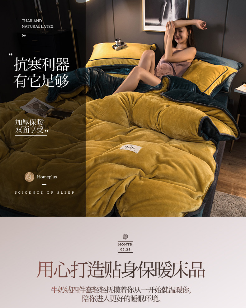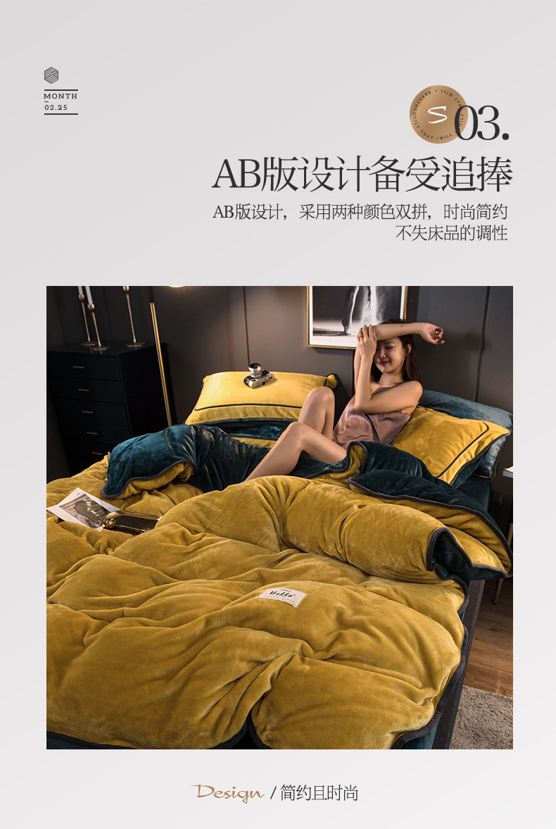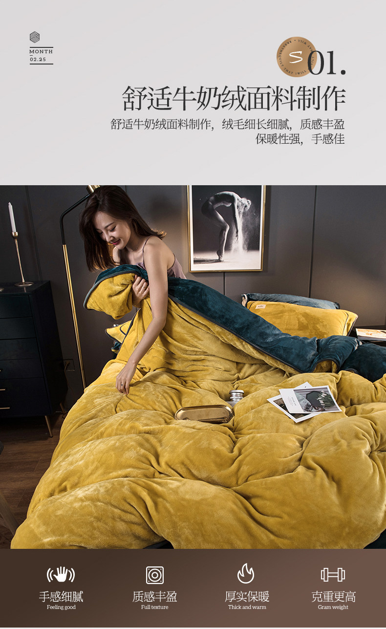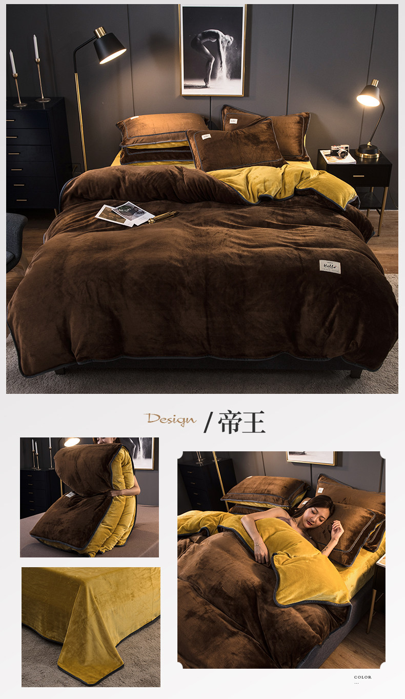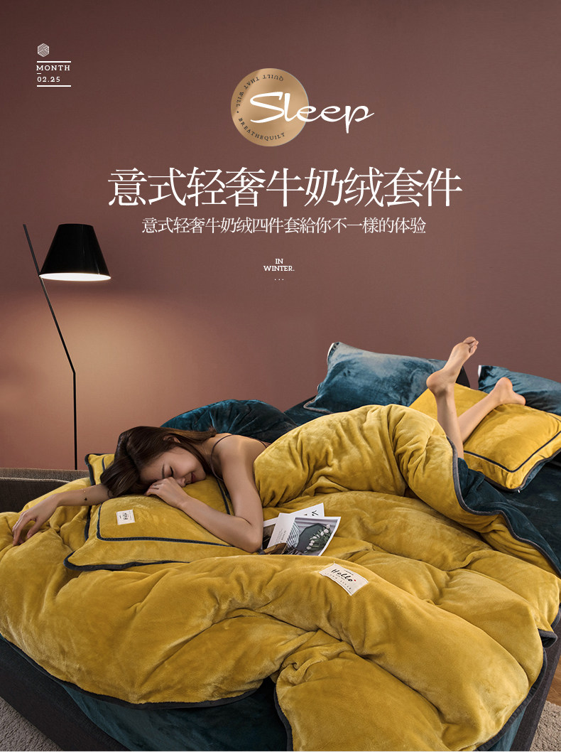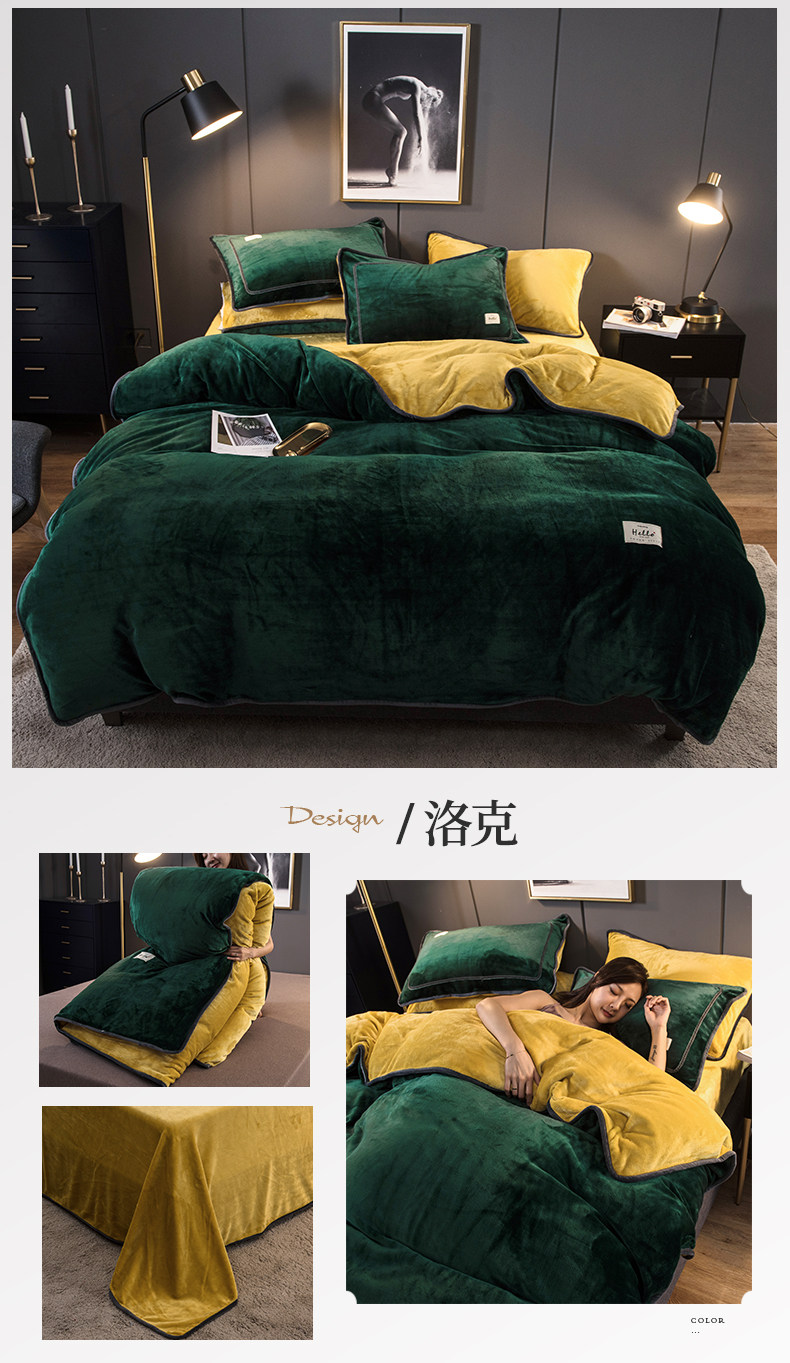冬季加厚珊瑚絨四件套簡約純色法蘭法萊牛奶絨床上被套床單三件套