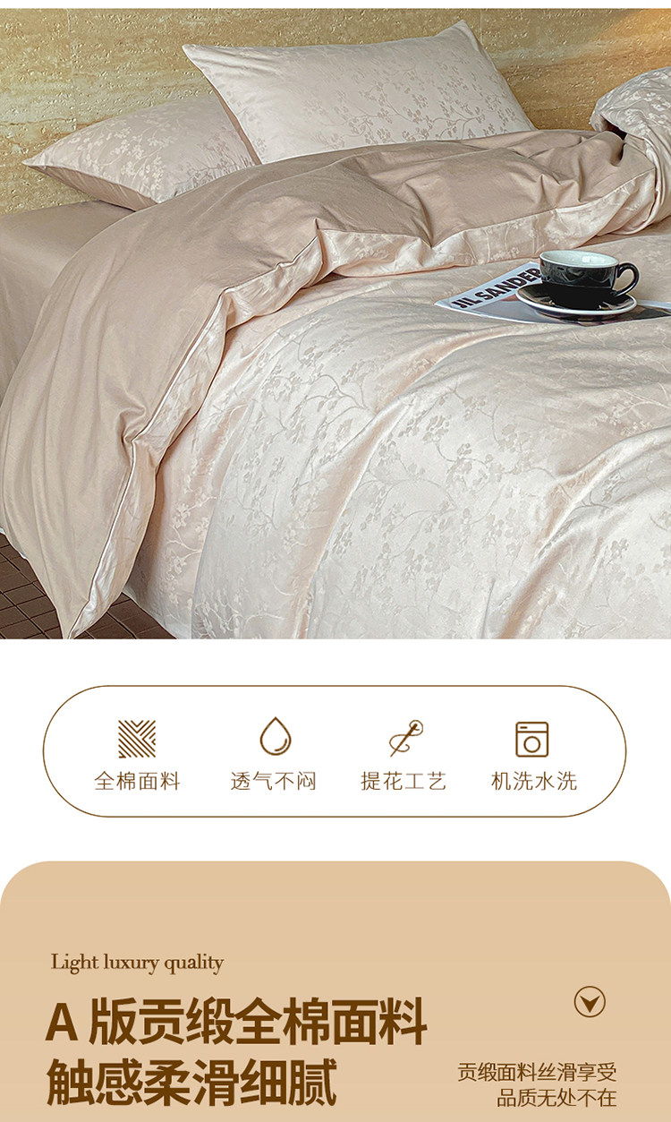 A類母嬰級輕奢高級感160支長絨棉四件套純棉全棉床單被套床上用品