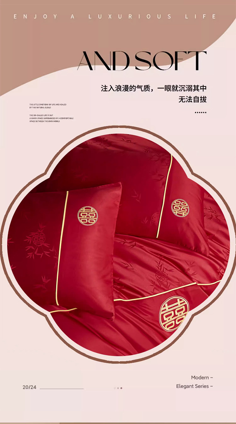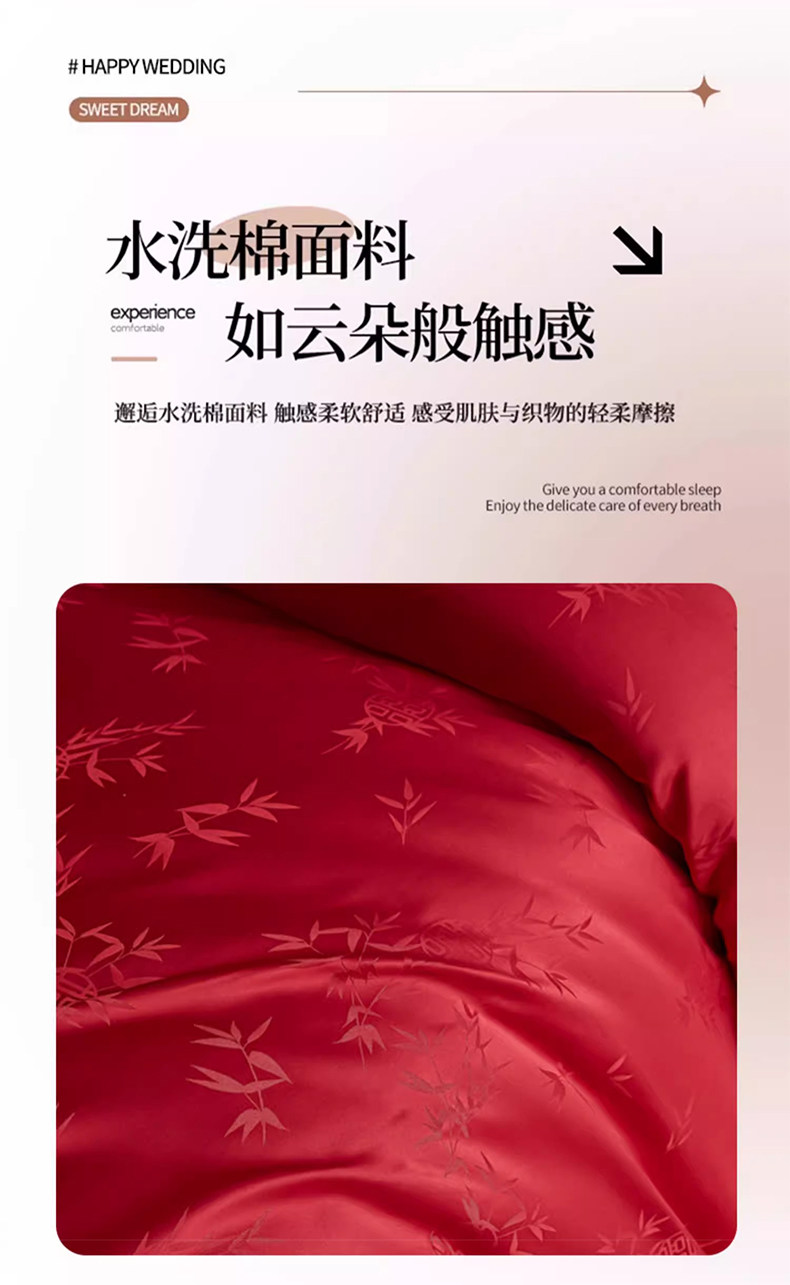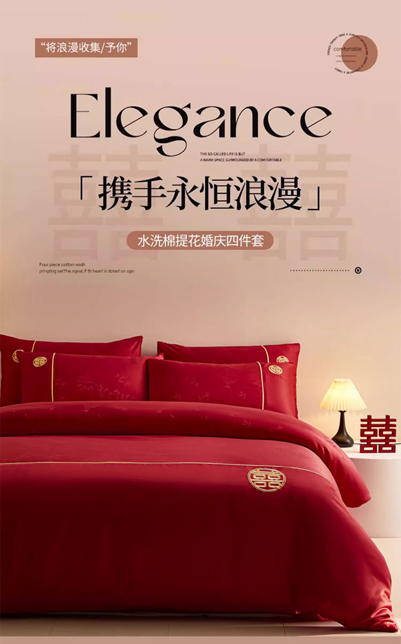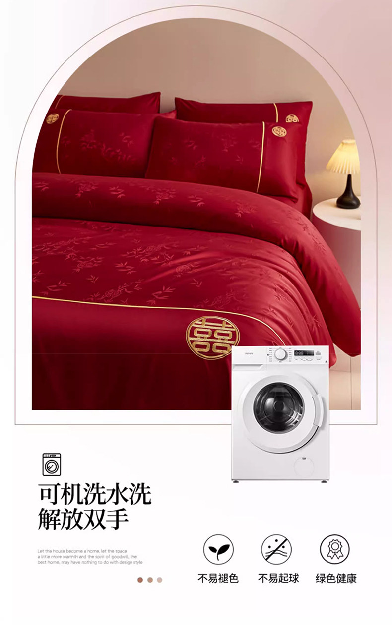 高檔提花結婚床上四件套婚慶大紅色非純棉全棉被套新婚房喜被床單