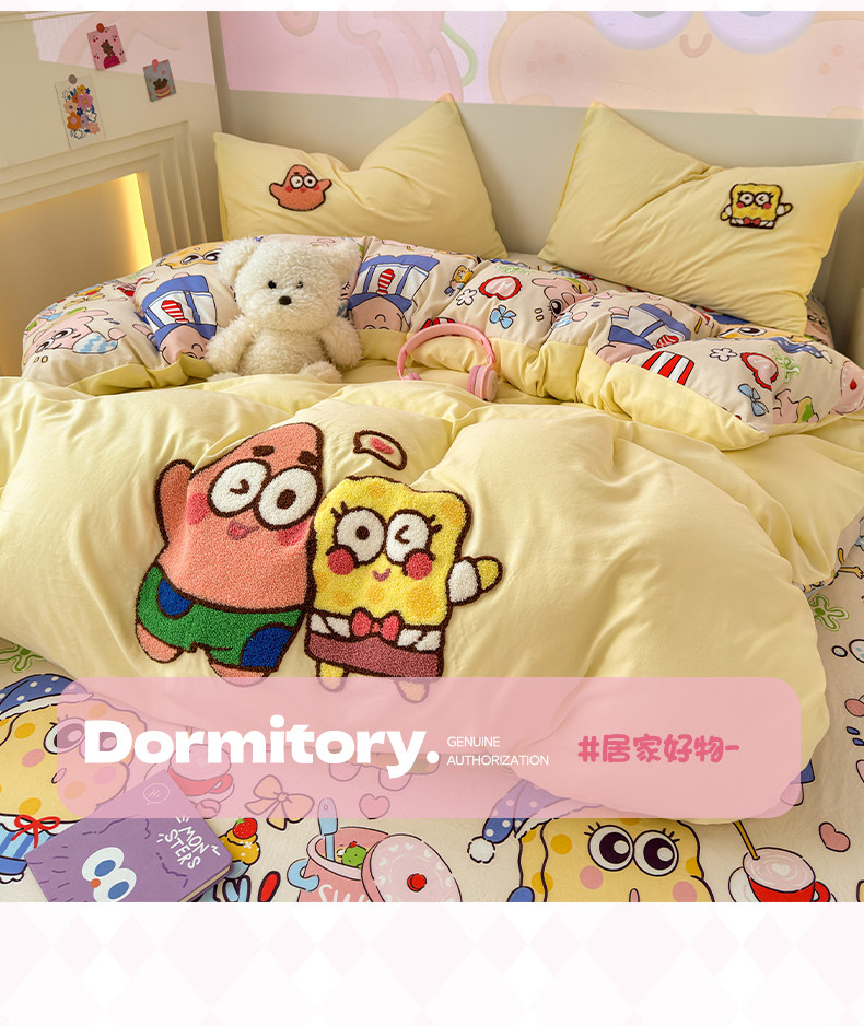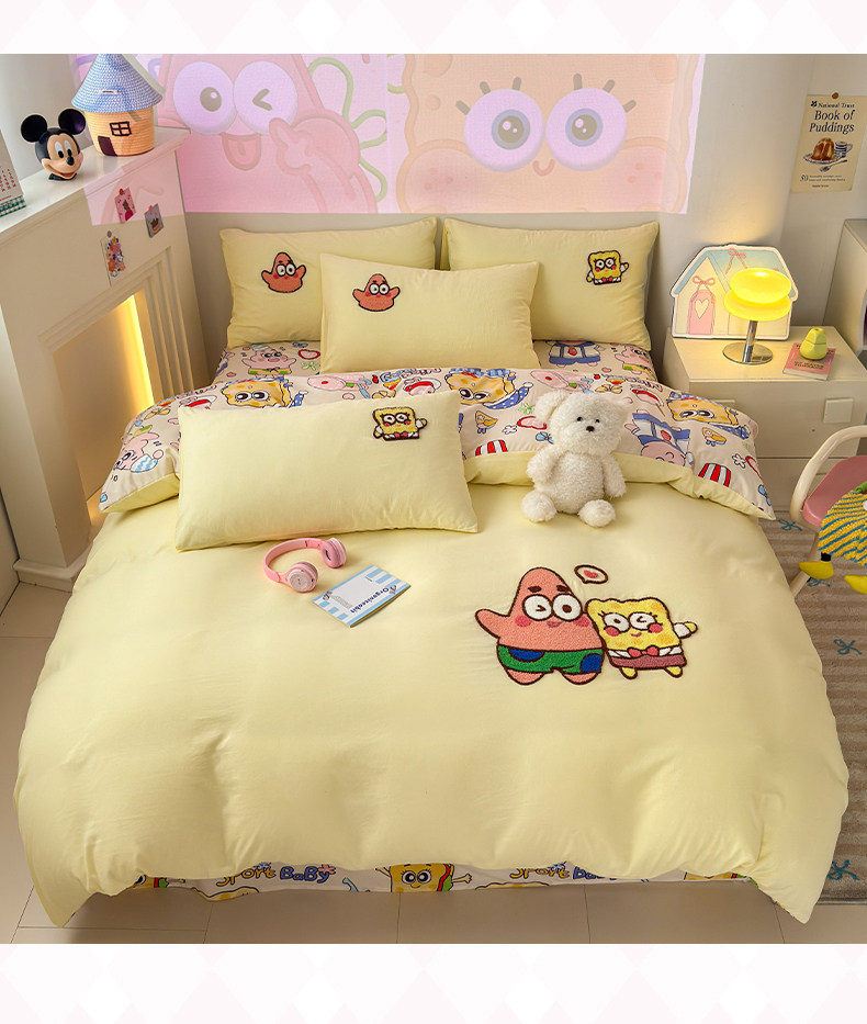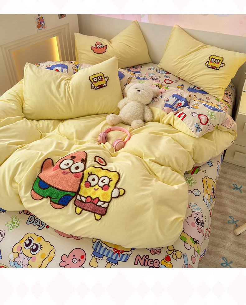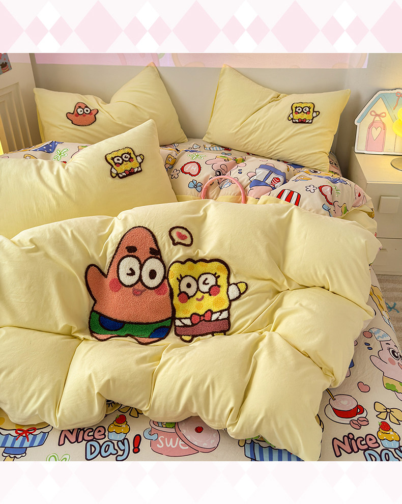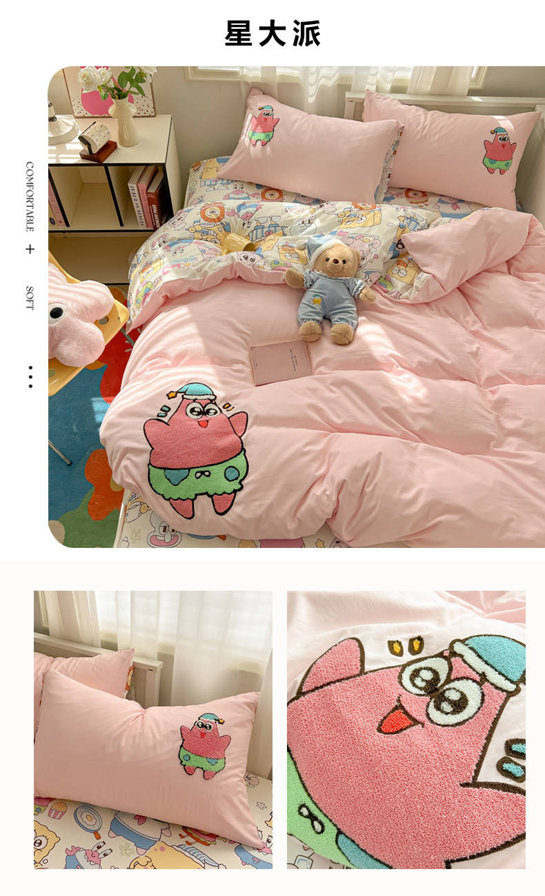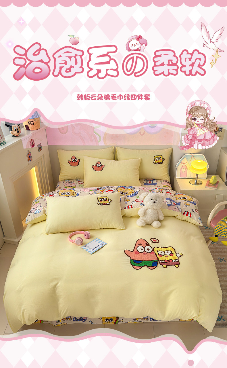 卡通毛巾綉床上四件套2026新款被套床單人兒童學生宿捨三件套床品