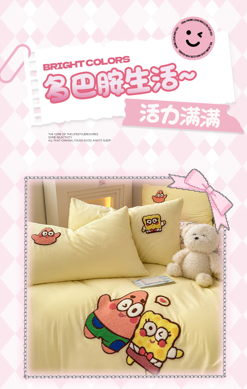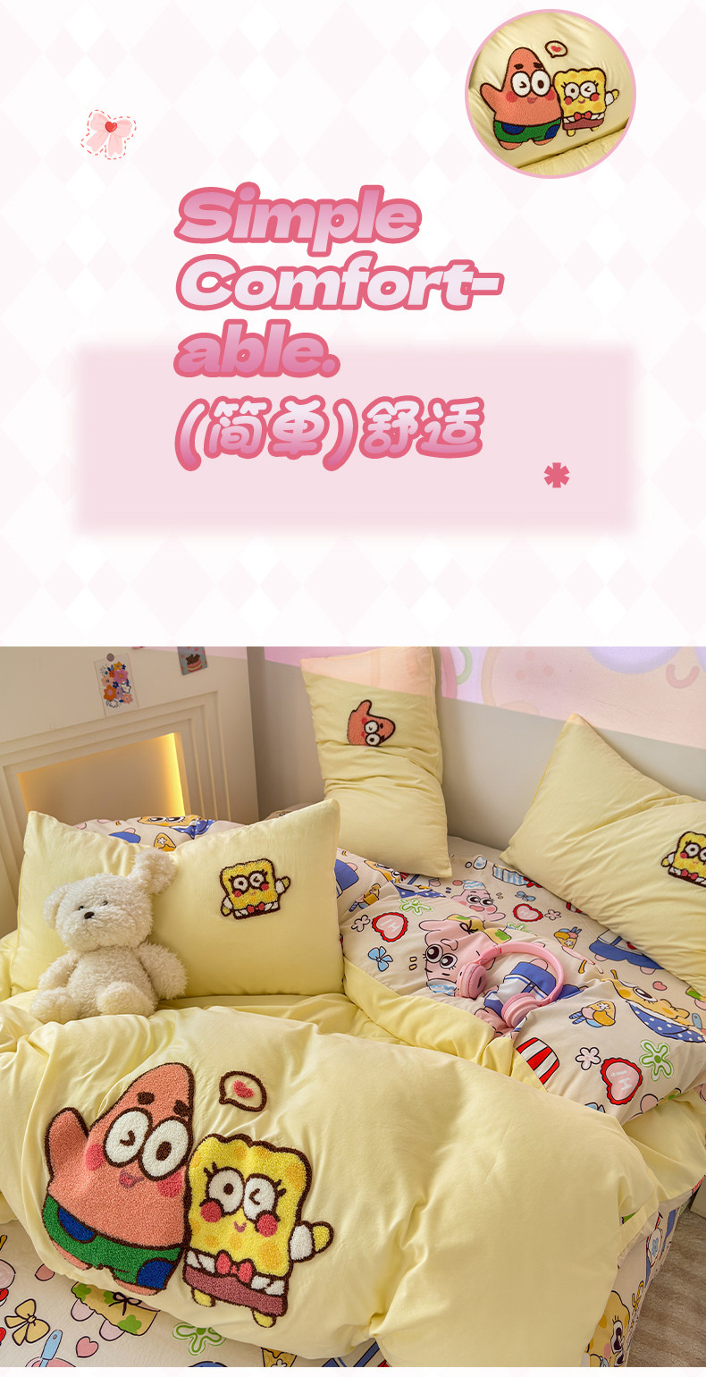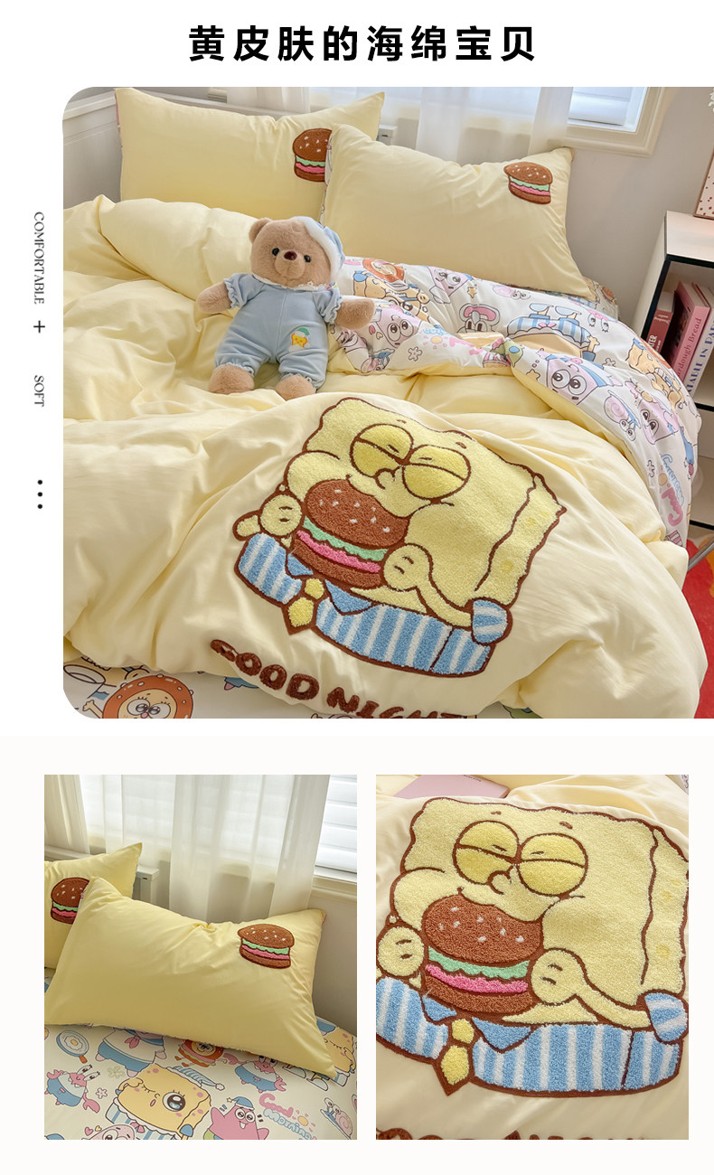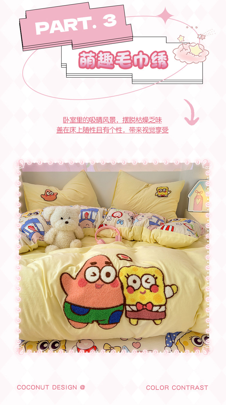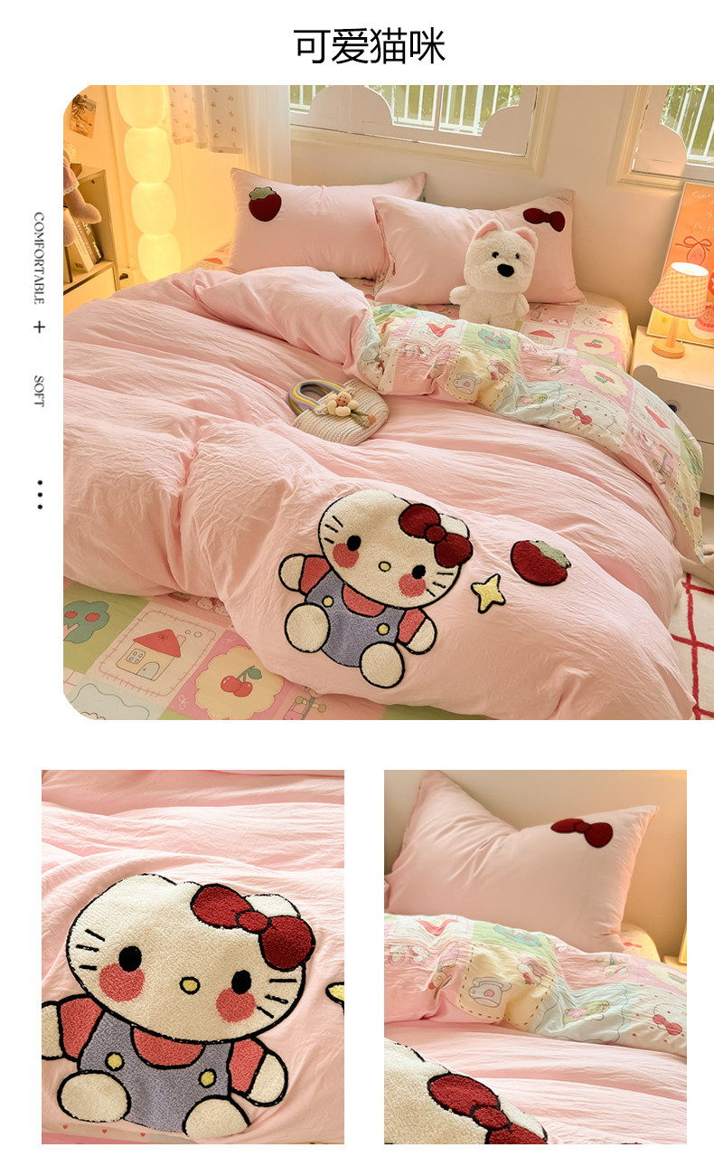 卡通毛巾綉床上四件套2026新款被套床單人兒童學生宿捨三件套床品