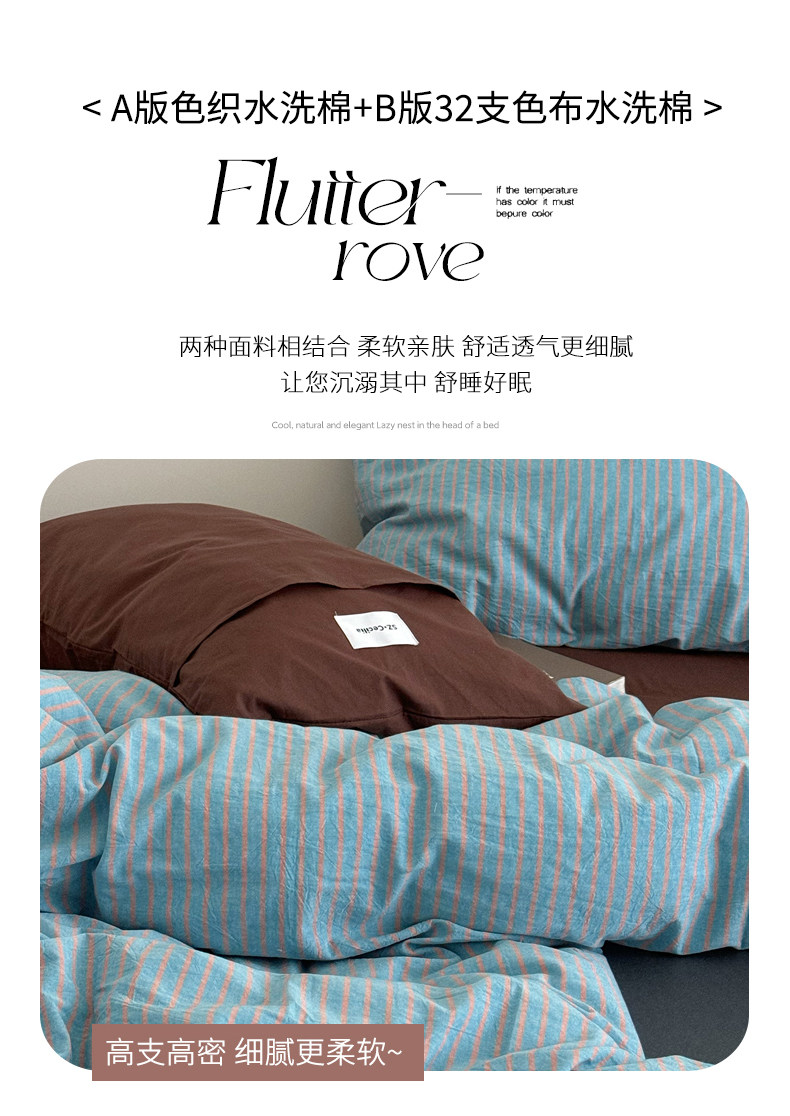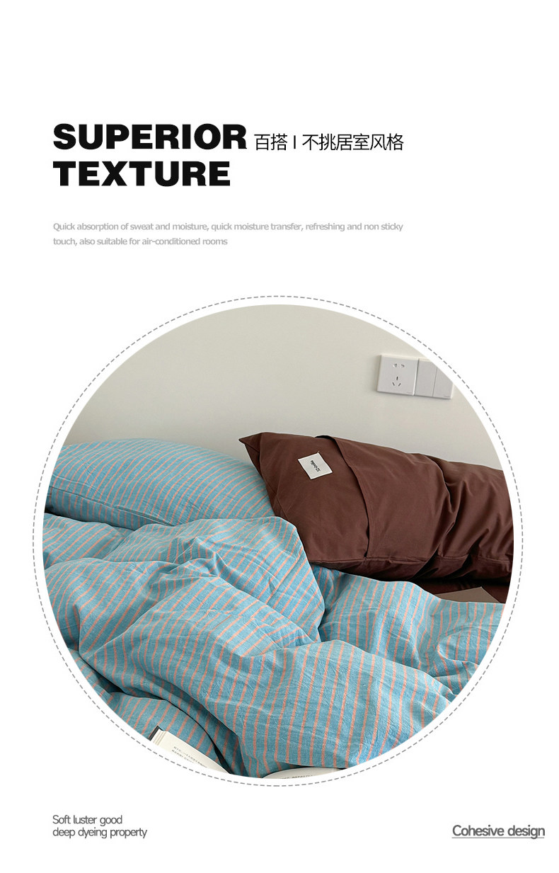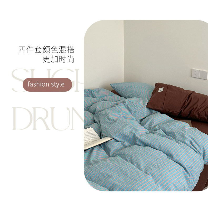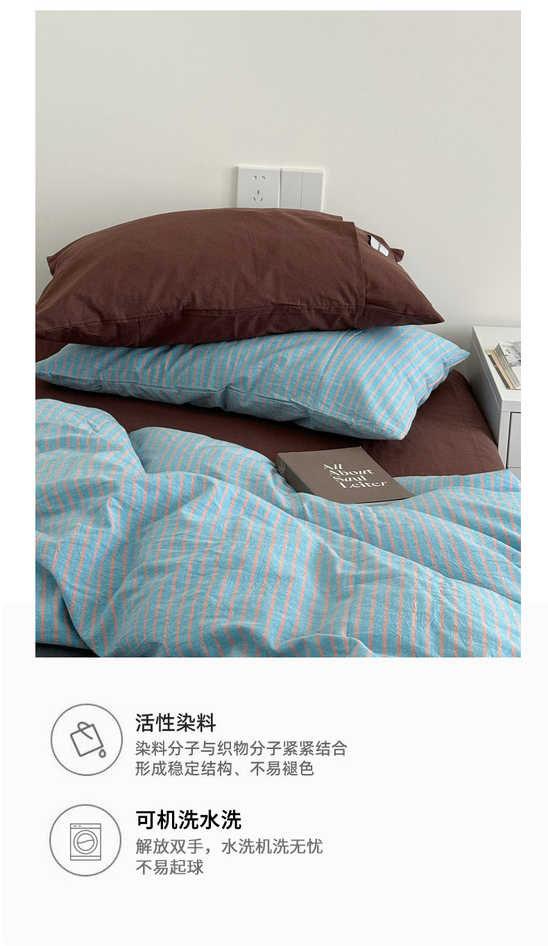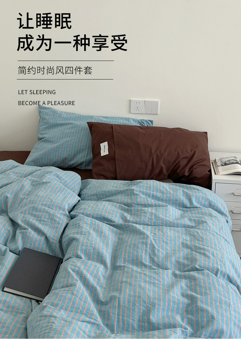 簡約藍色線條全棉水洗棉床上四件套純棉主臥室被套床單床品三件套