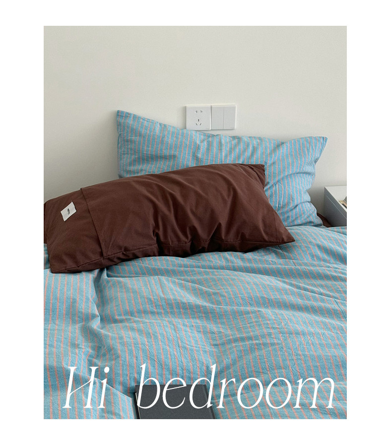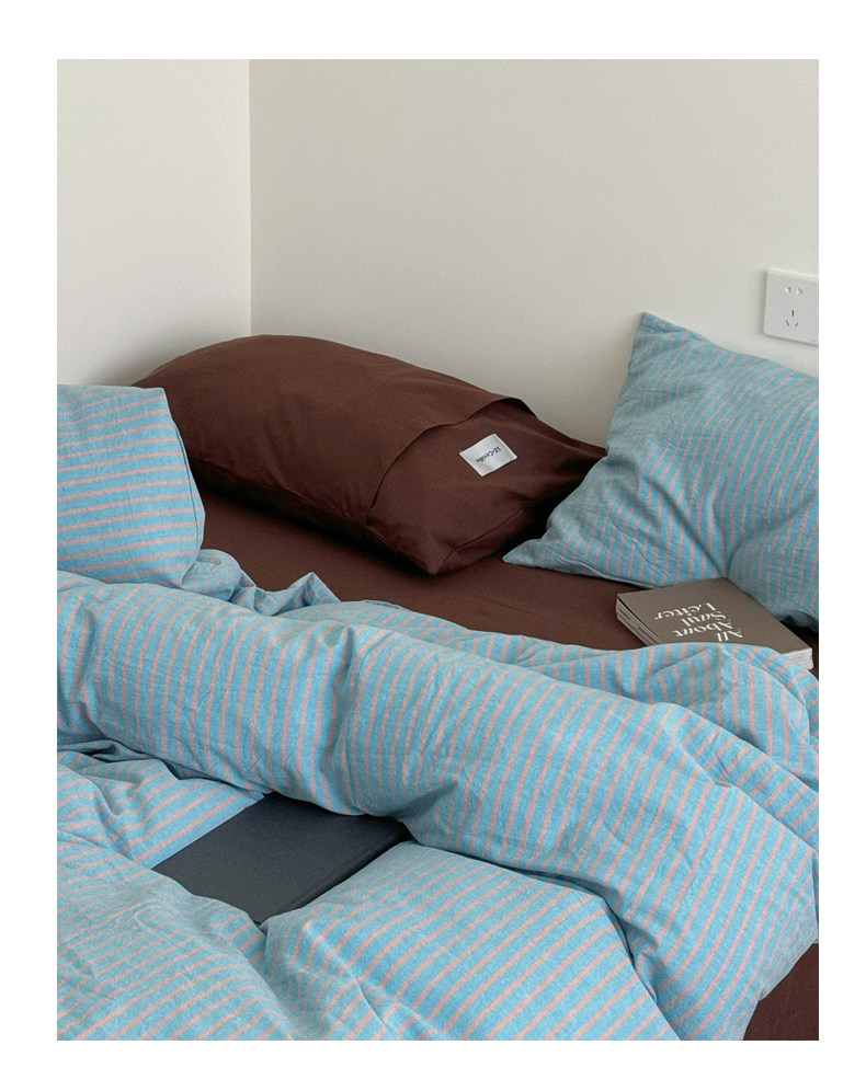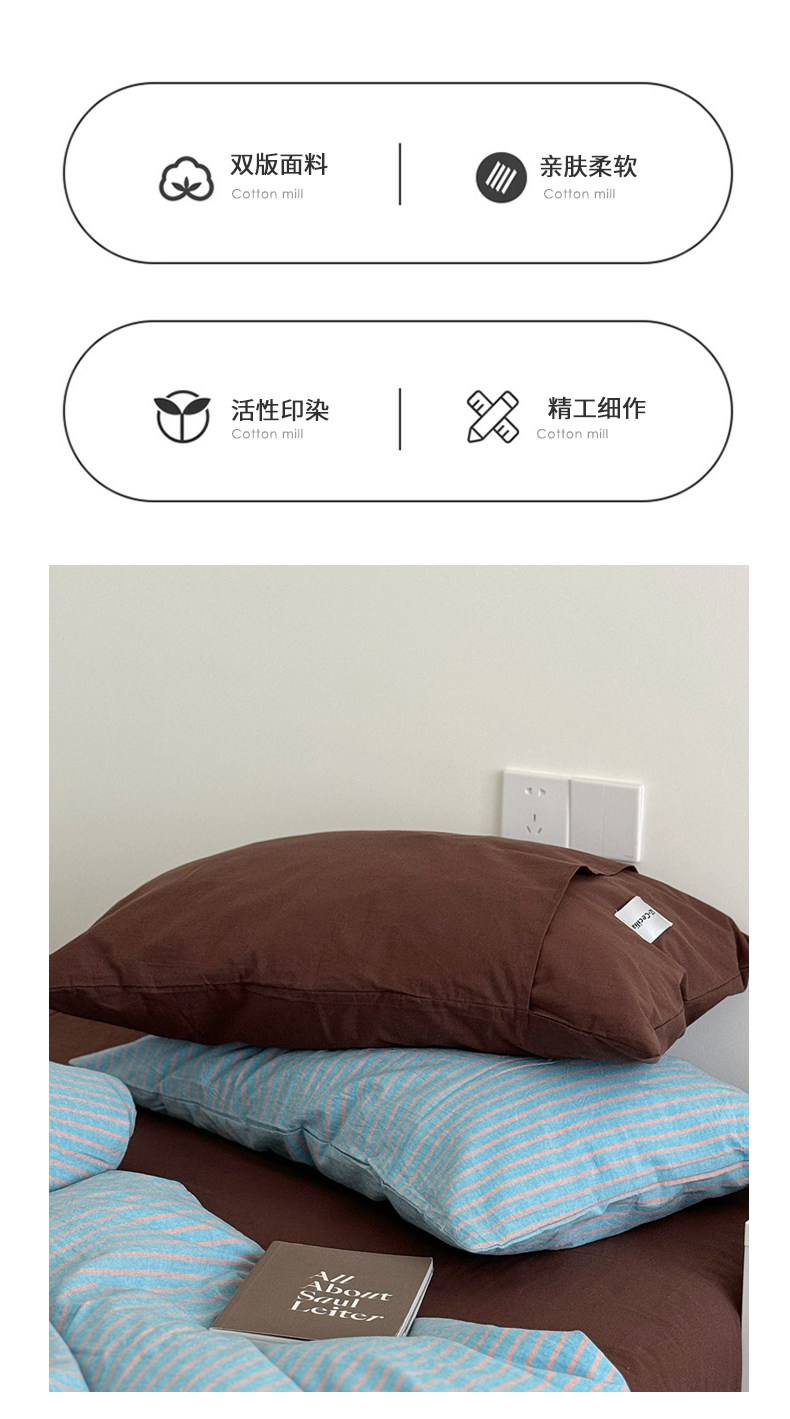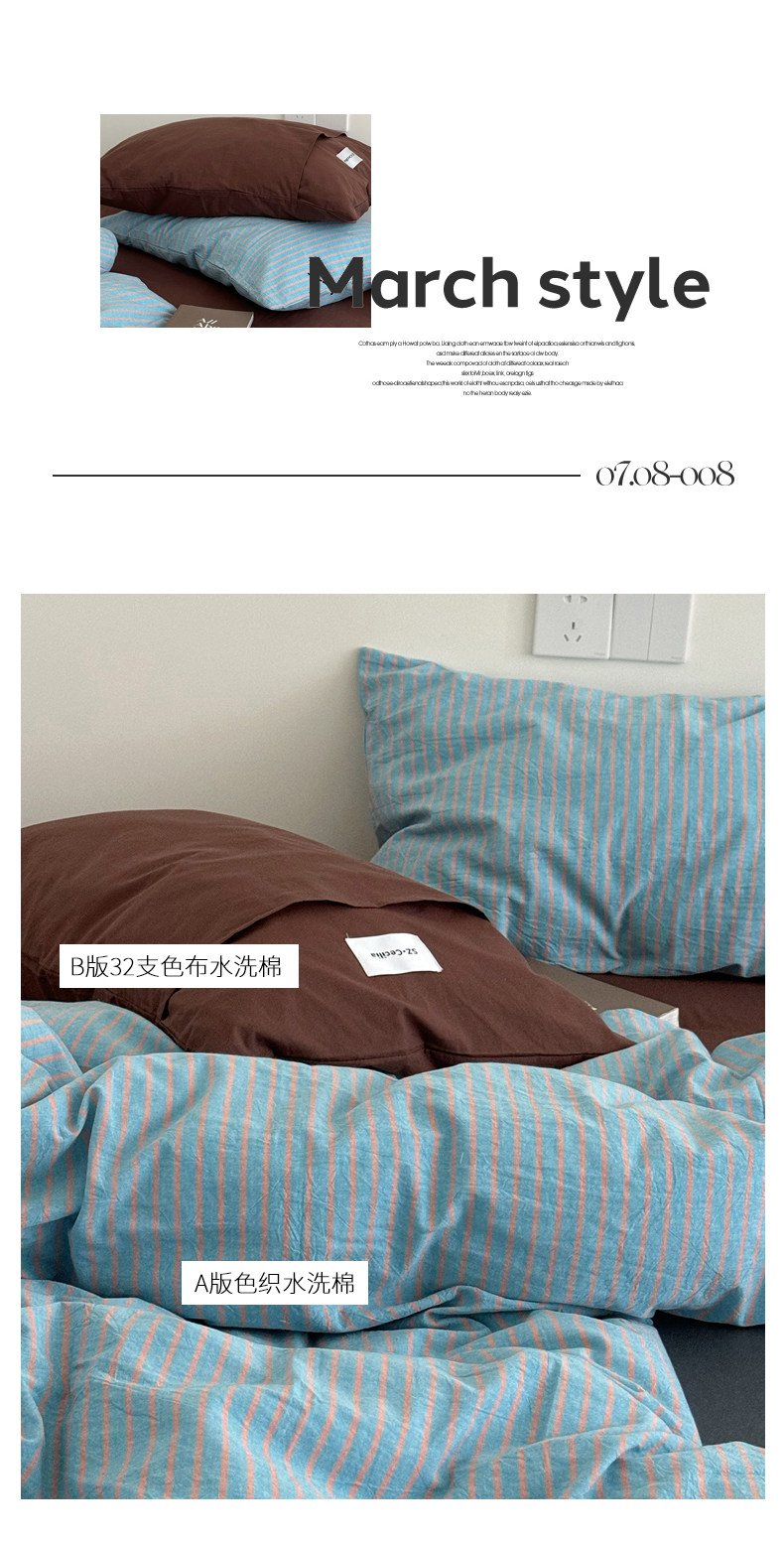 簡約藍色線條全棉水洗棉床上四件套純棉主臥室被套床單床品三件套