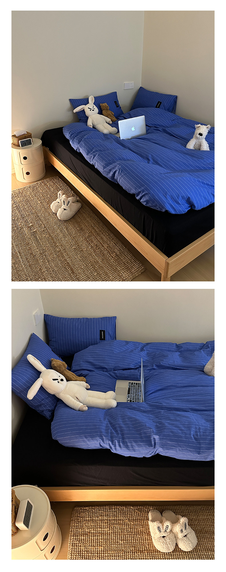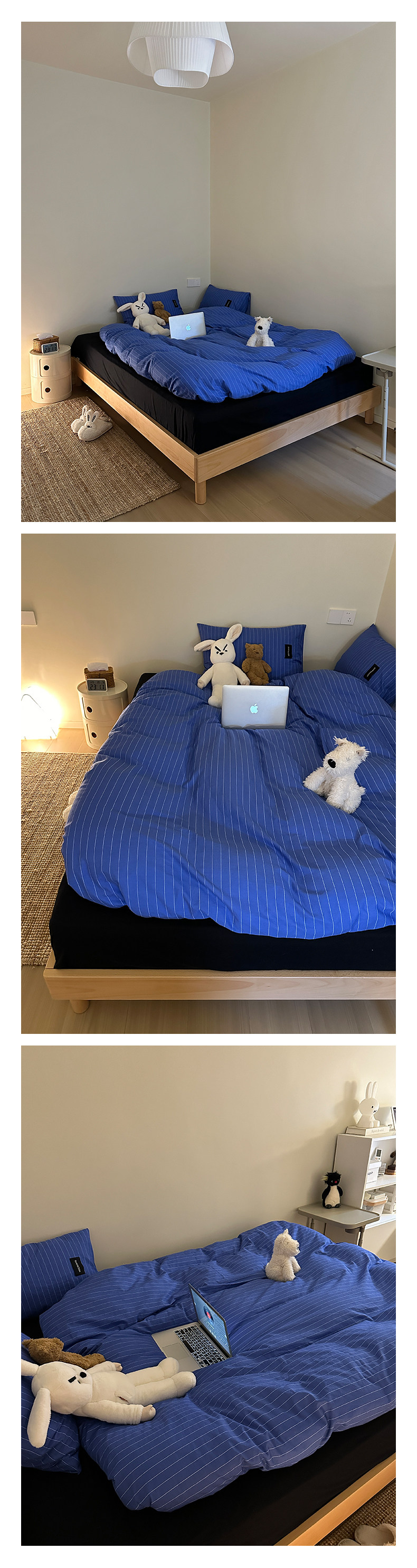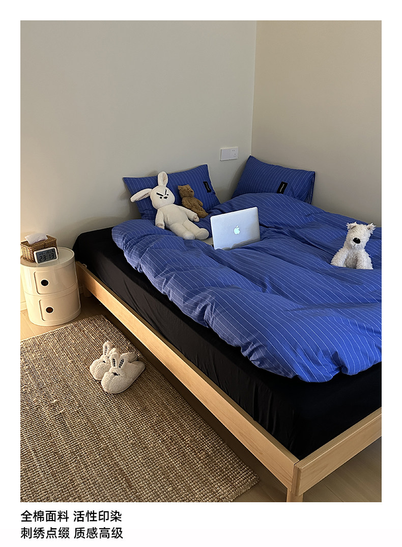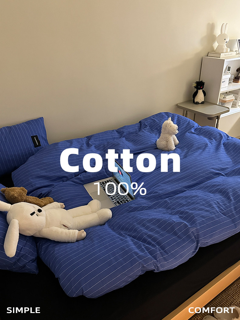 YAKEHOME【夜蝕星紗】極簡約藍色條紋全棉純棉四件套床上床單被套
