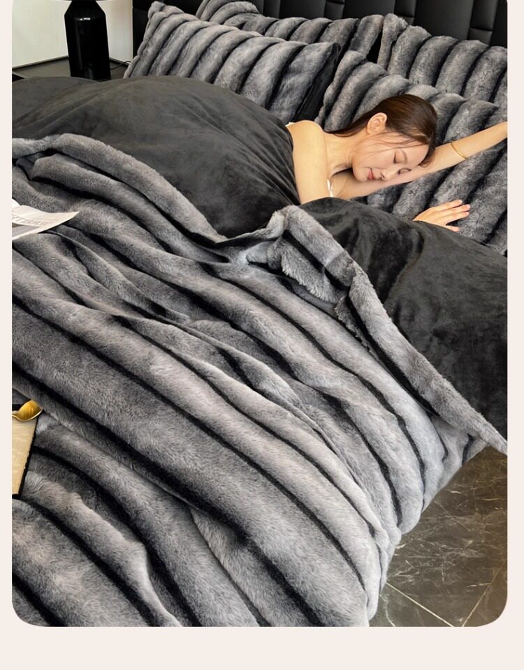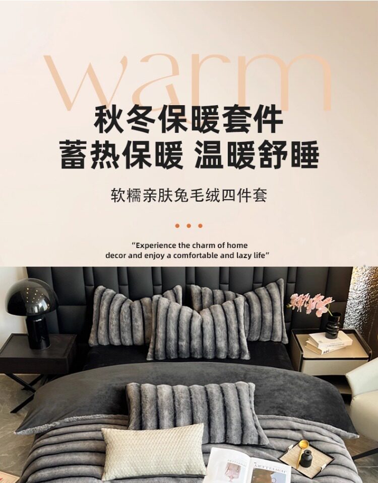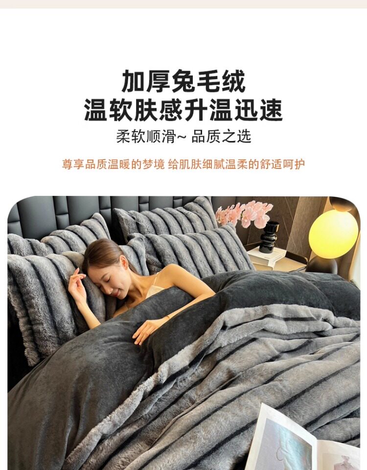 高檔兔毛絨四件套2025新款冬季珊瑚絨牛奶絨雙面加厚法蘭絨床單笠