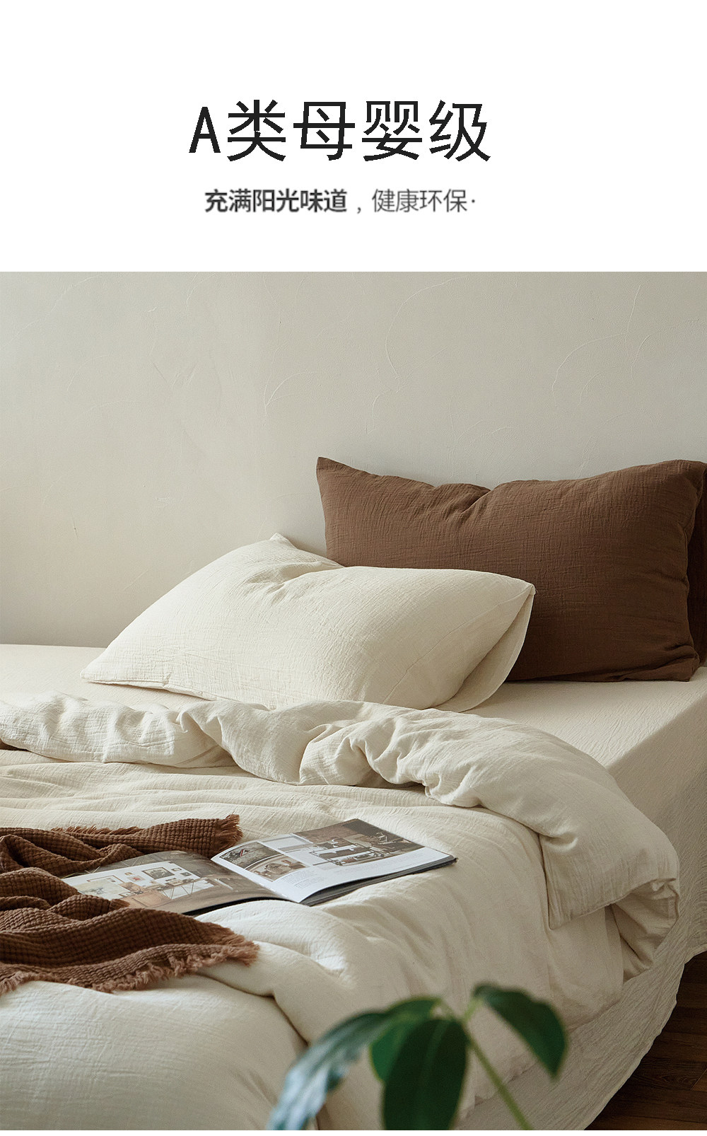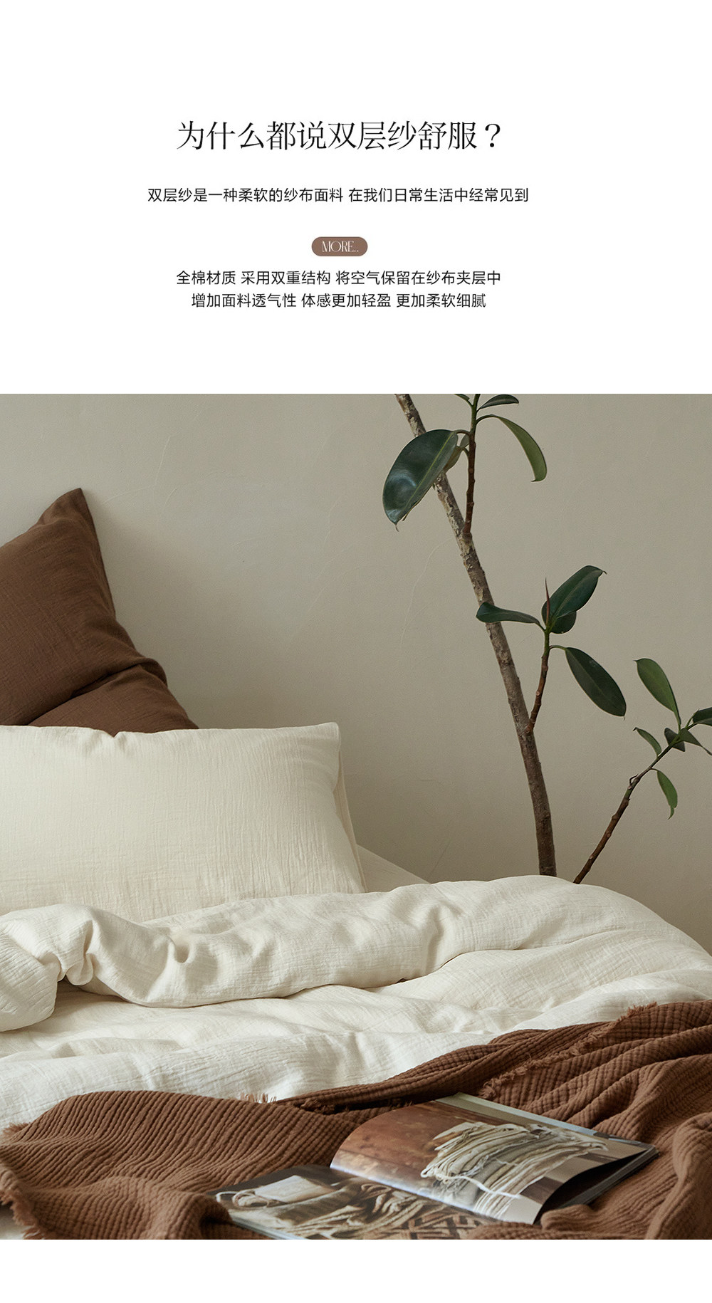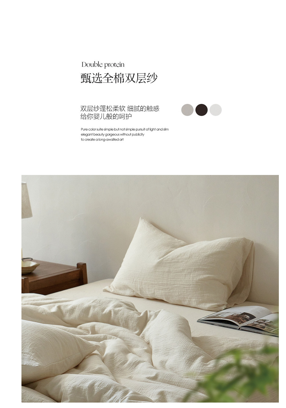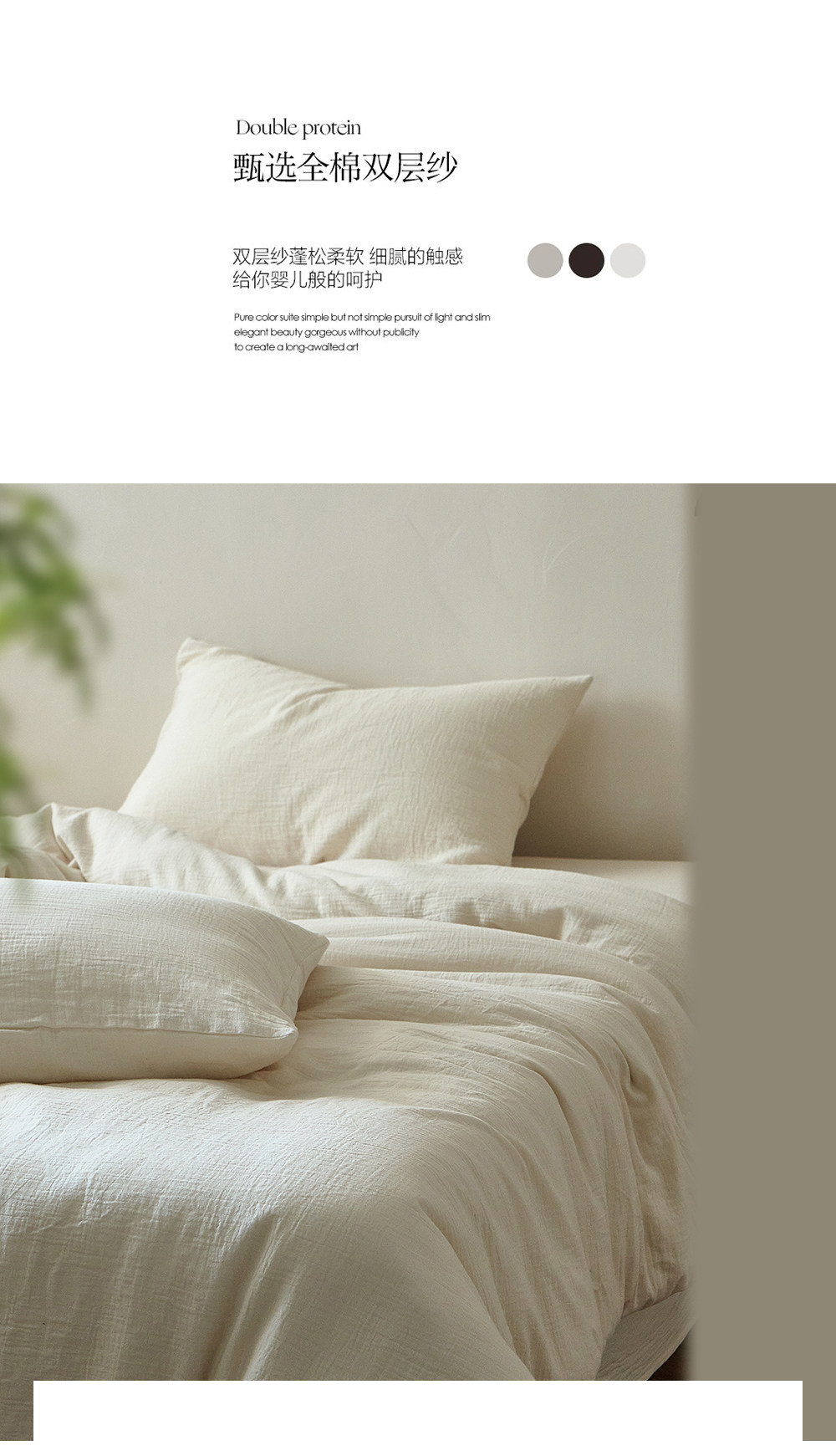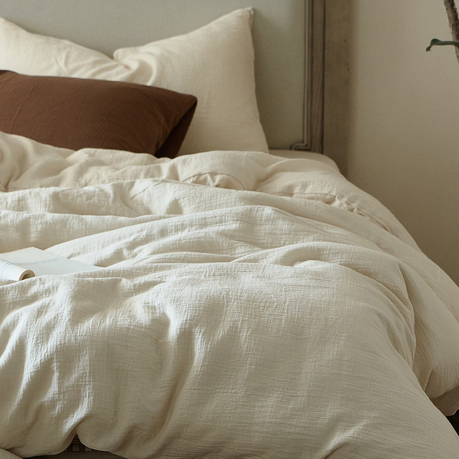 軟到心巴上!A類母嬰級60支全棉雙層紗四件套無染米白純棉紗柔軟