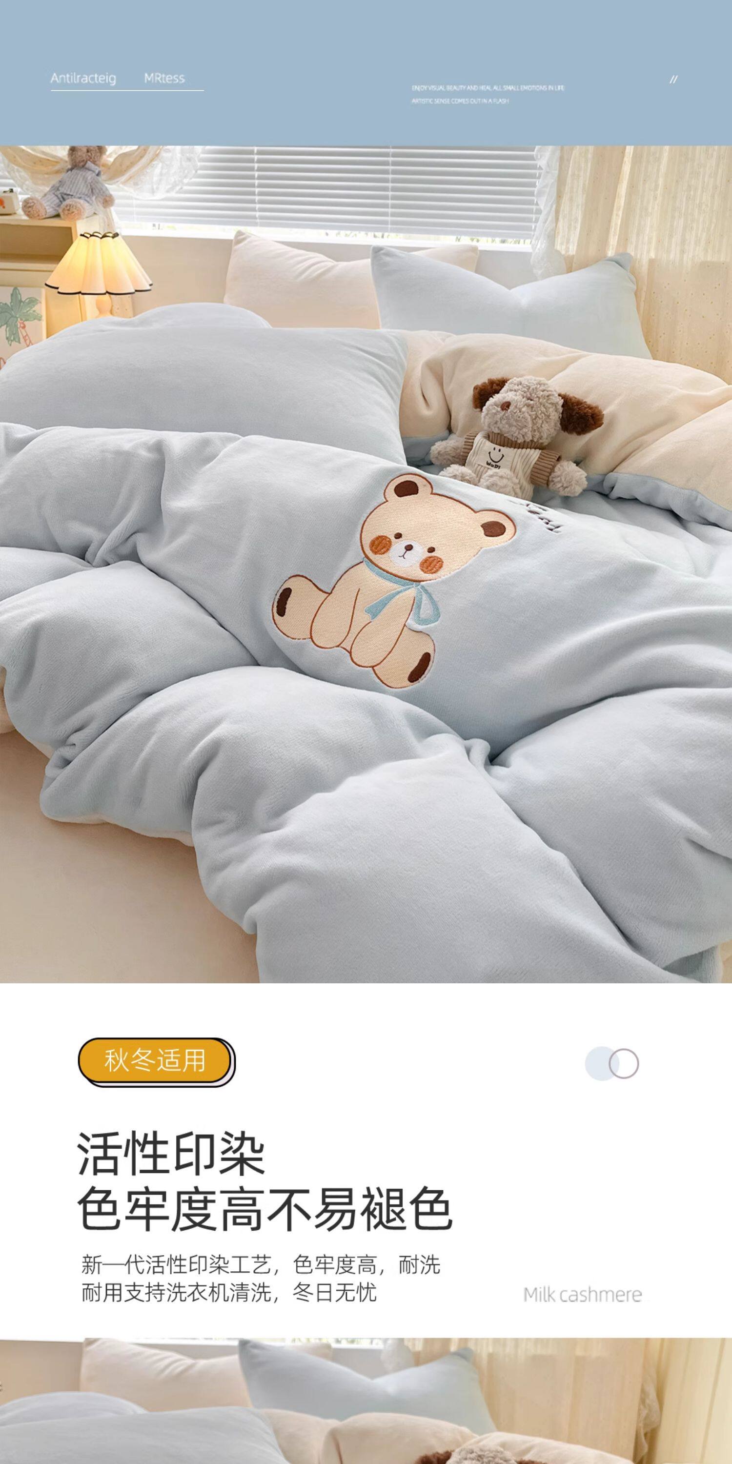 牛奶絨床上四件套床品水晶絨床單被套冬季兒童加絨三件套2025新款