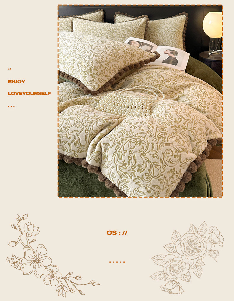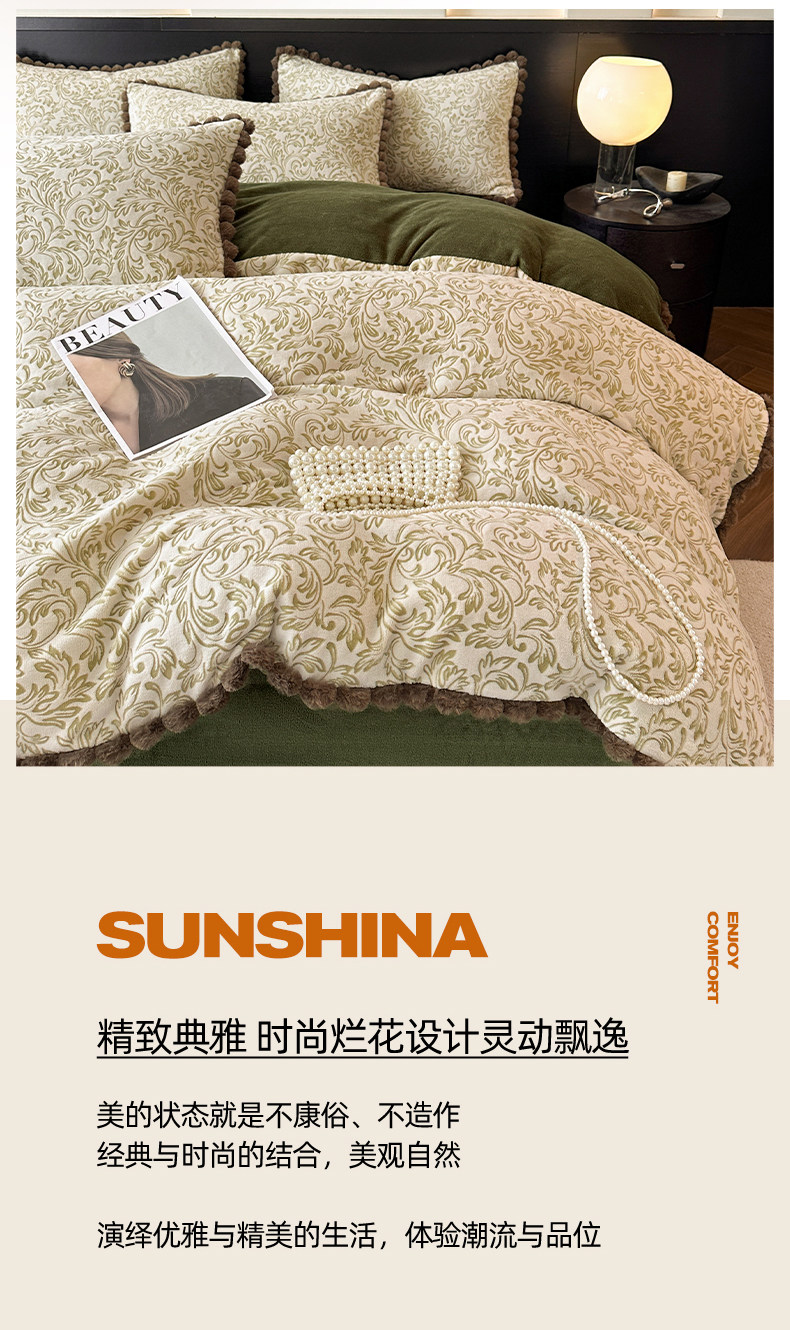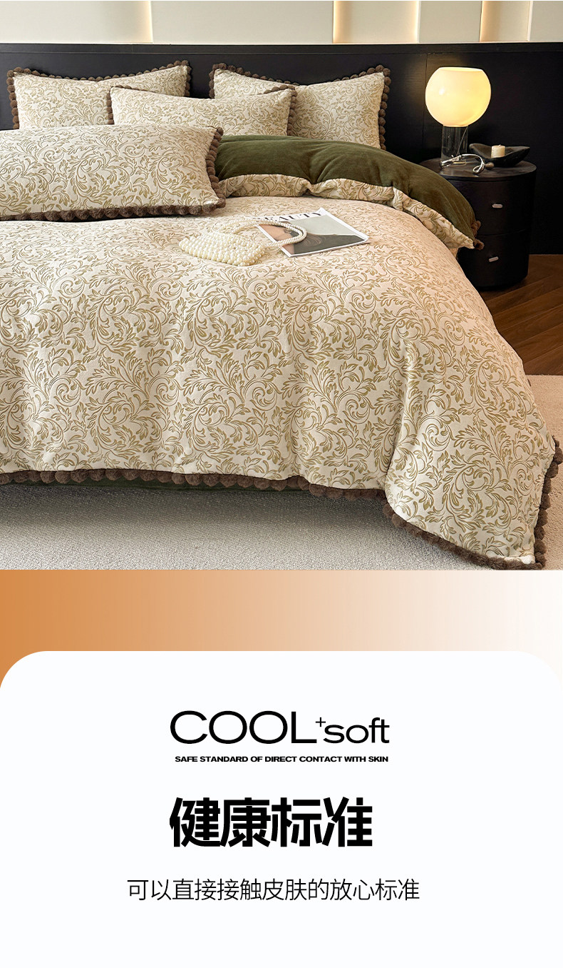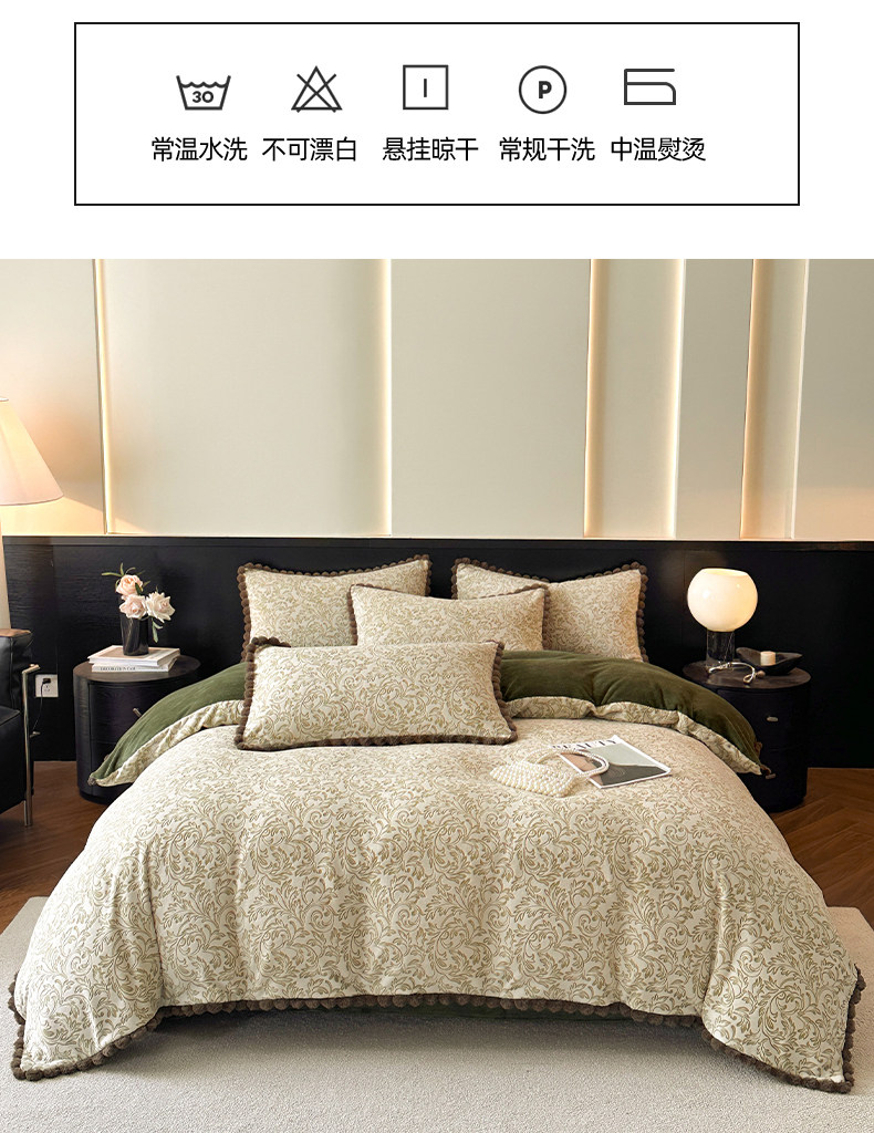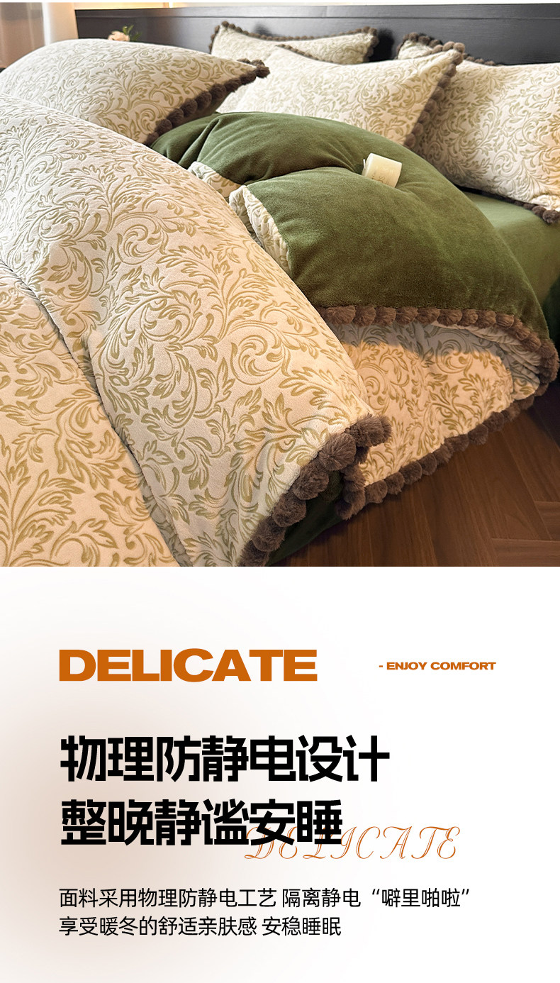 法式兔毛球雕花牛奶絨床上四件套高級感冬季加厚珊瑚絨被套床單三