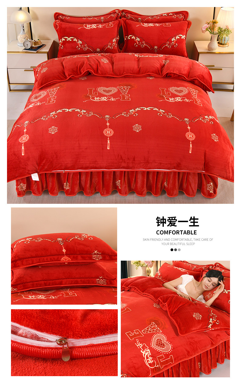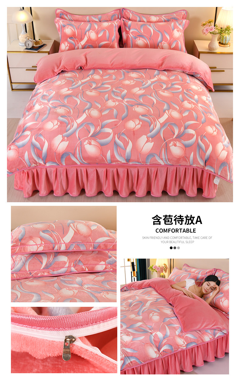 2025新款加厚牛奶絨被套四件套冬季雙面絨珊瑚絨保暖法蘭絨床裙款