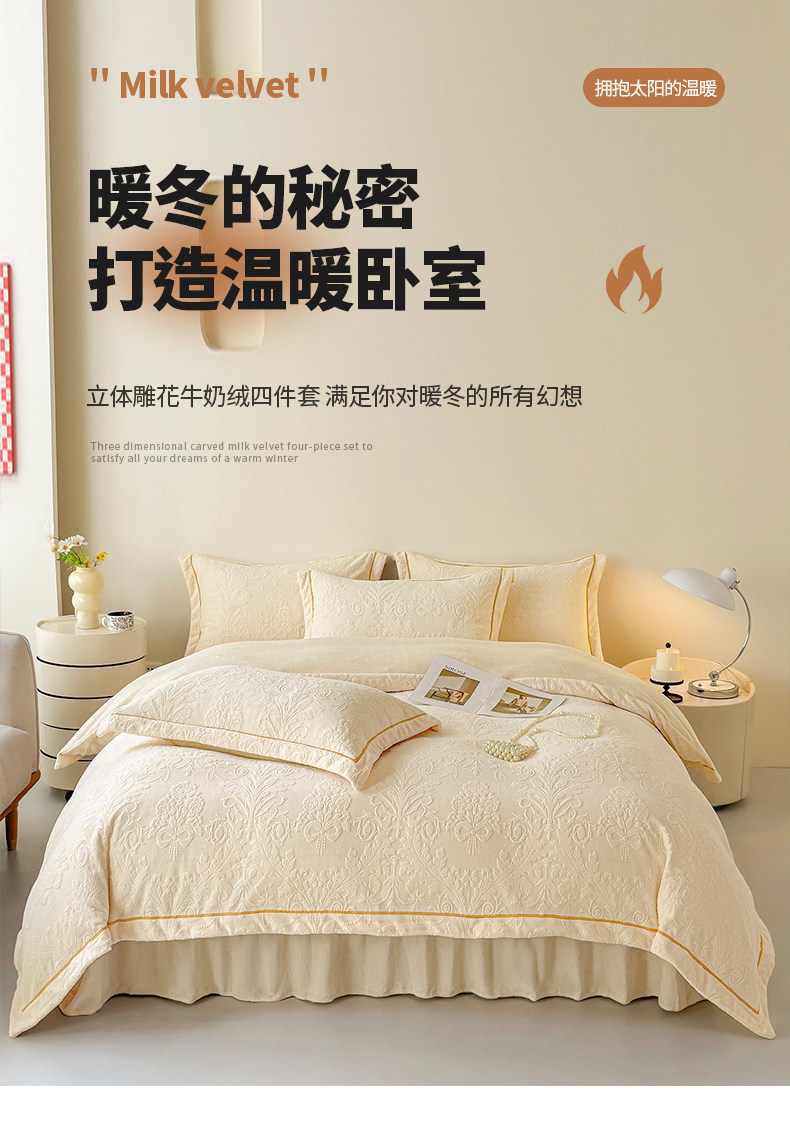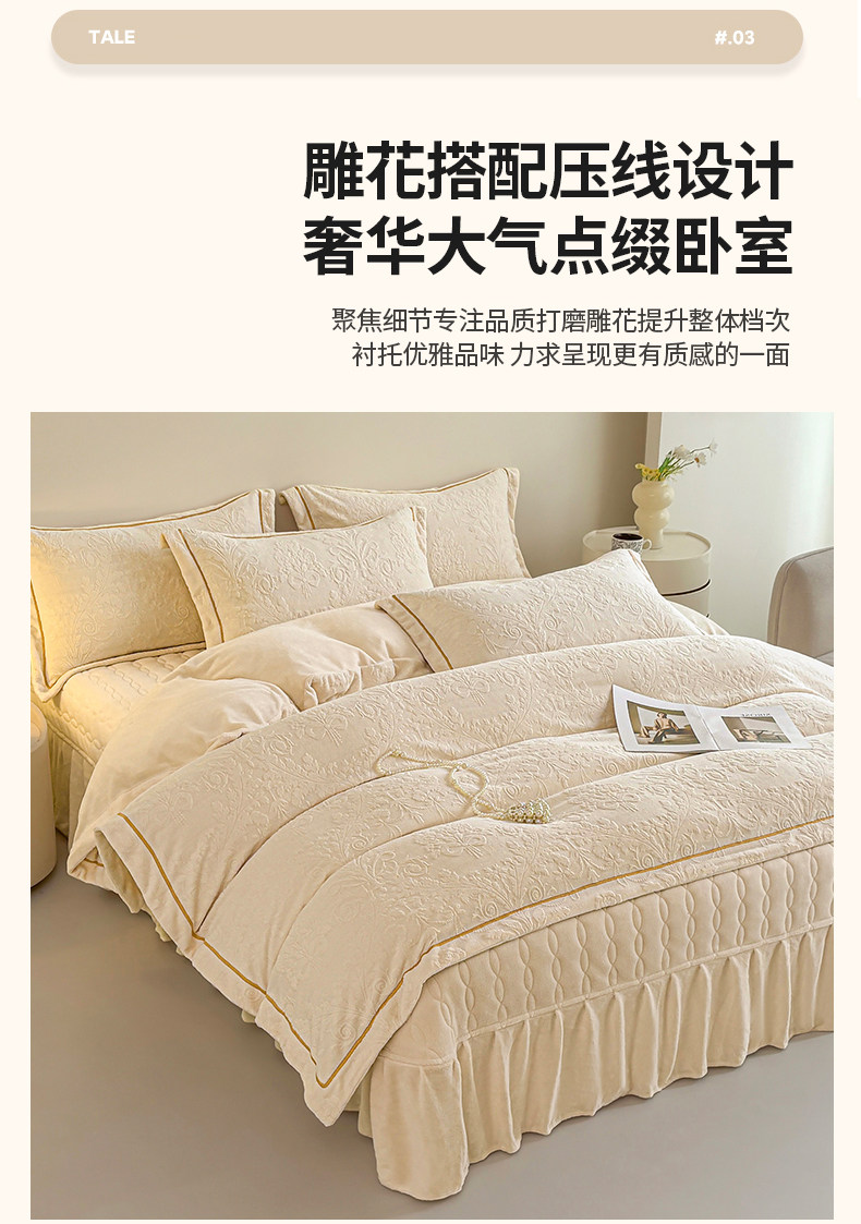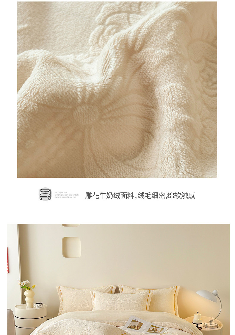 雕花牛奶絨四件套床蓋款冬季加厚珊瑚絨紫色被套夾棉床單2026新款