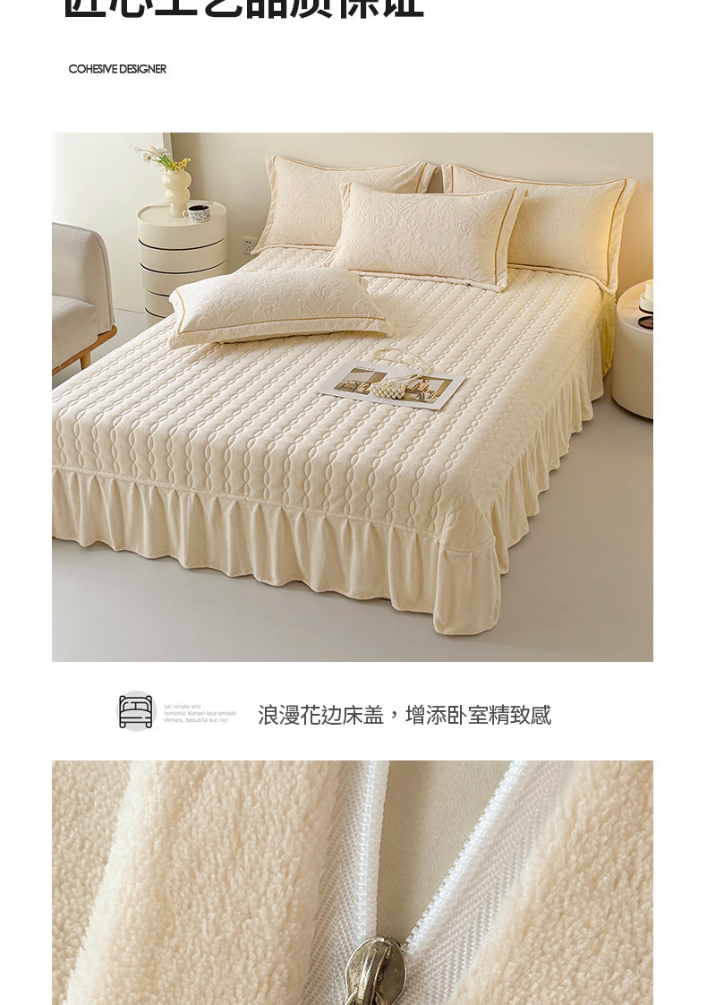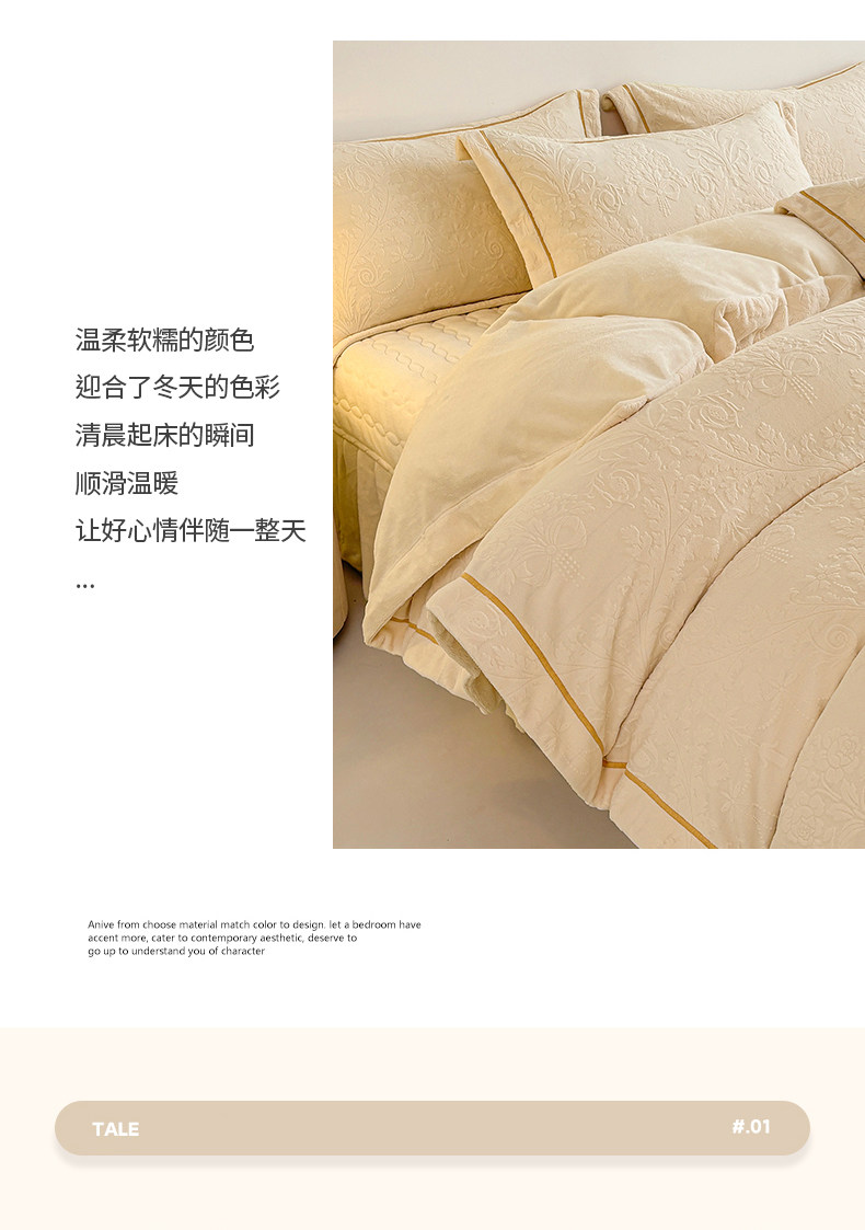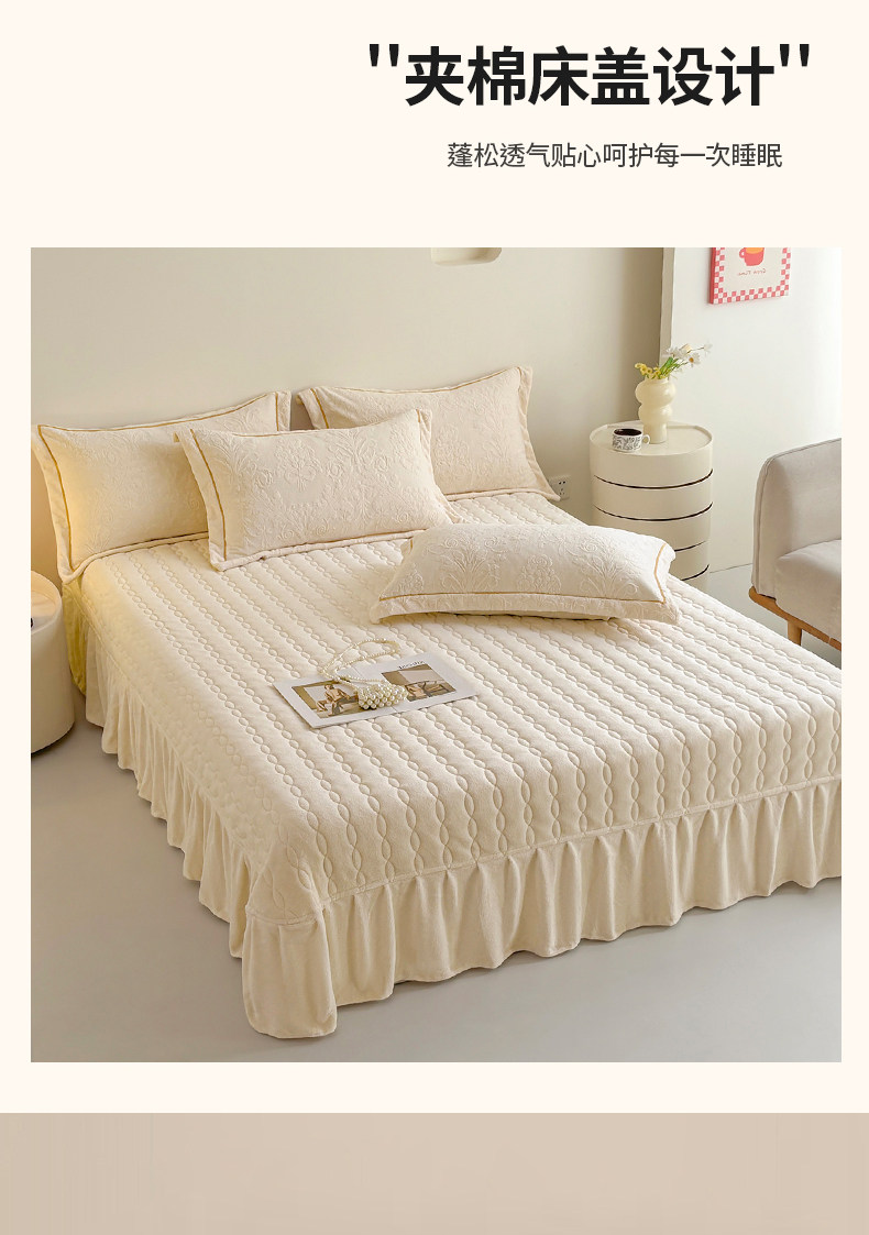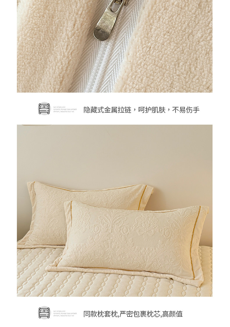 雕花牛奶絨四件套床蓋款冬季加厚珊瑚絨紫色被套夾棉床單2026新款