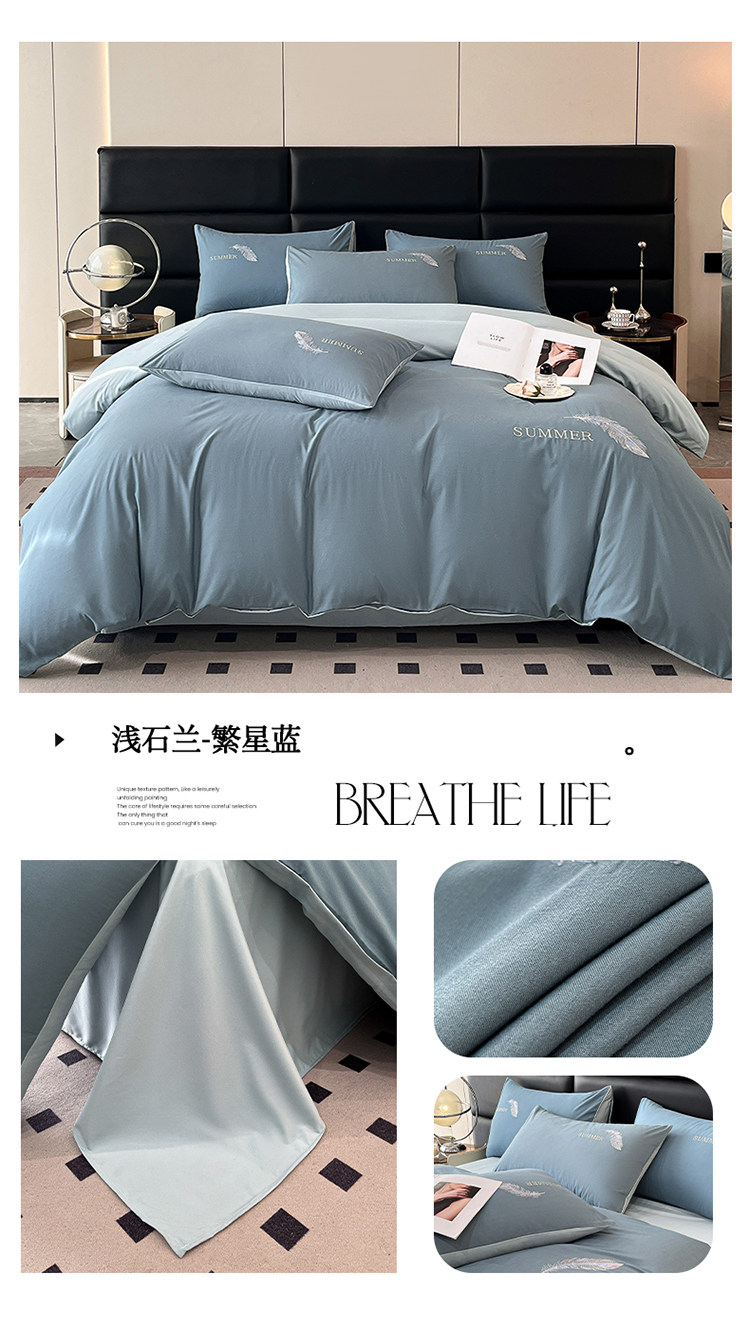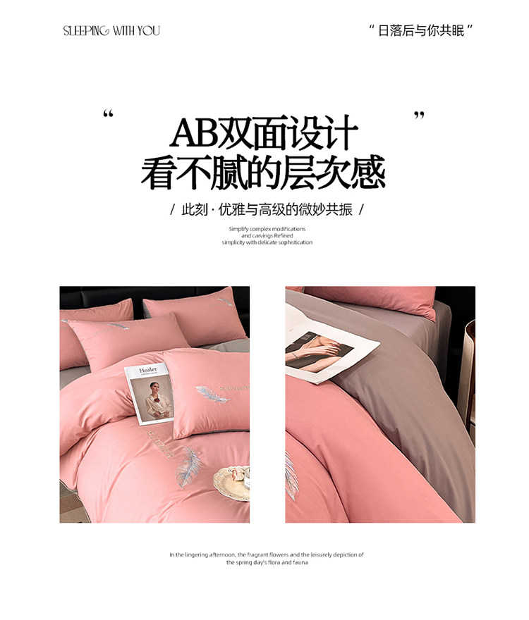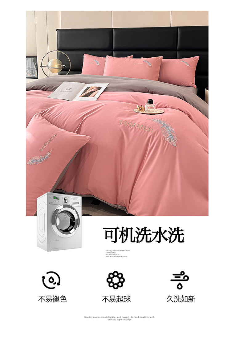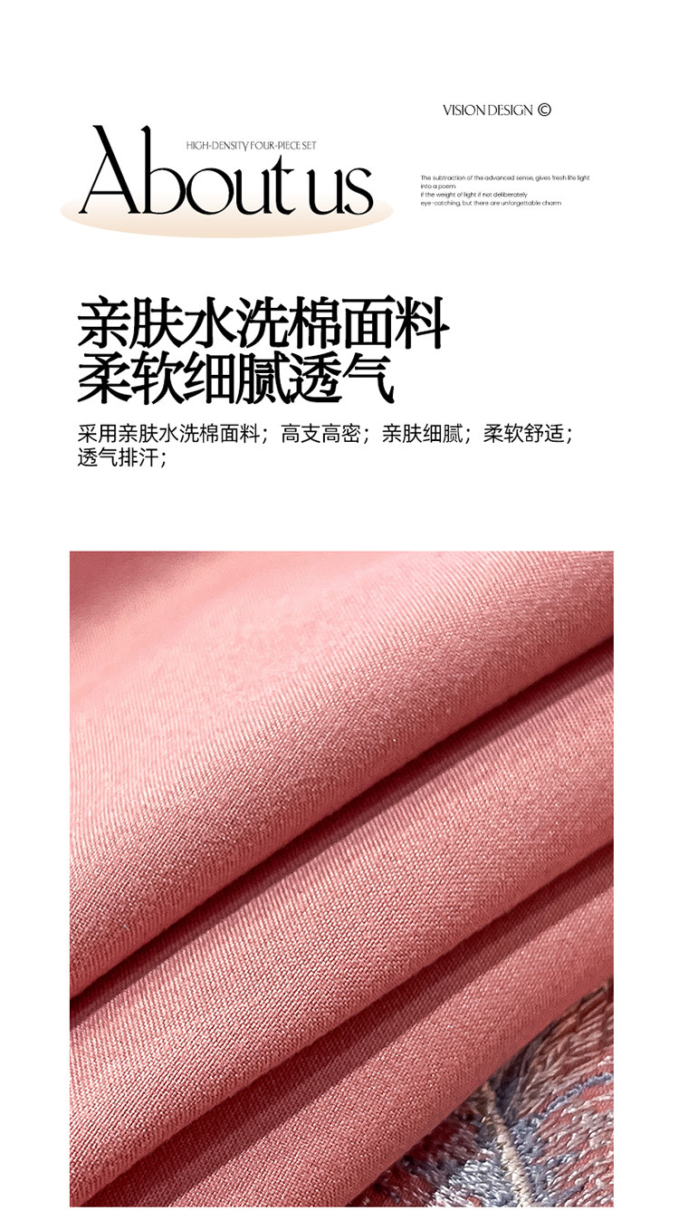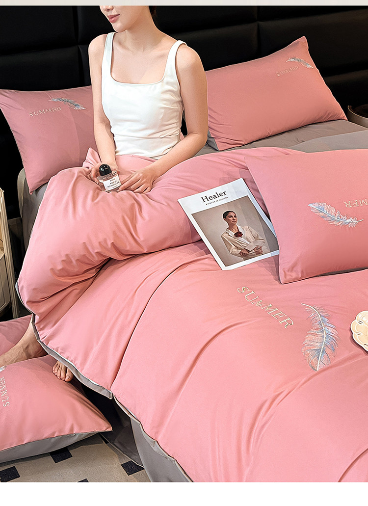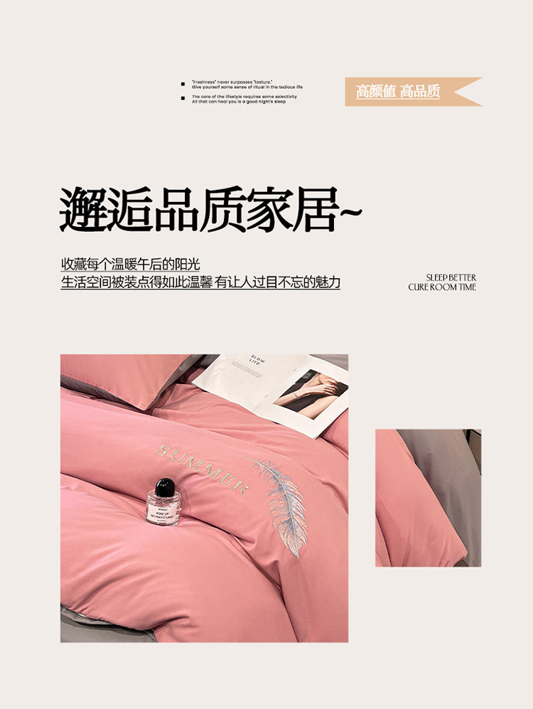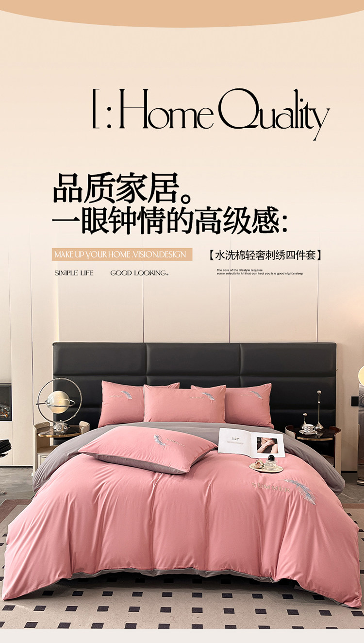 簡約輕奢純棉刺綉被套水洗棉四件套全棉高級感裸睡單被罩床單床包