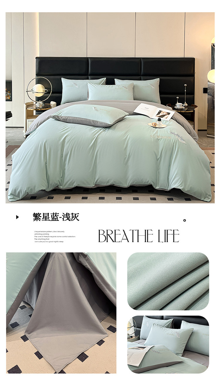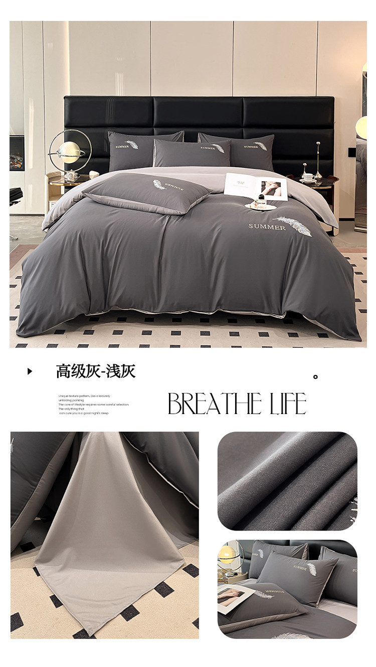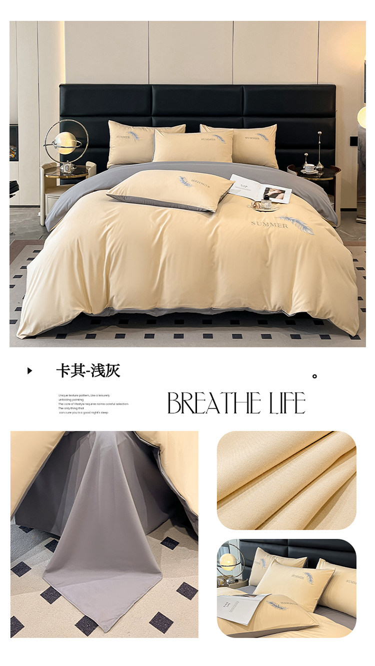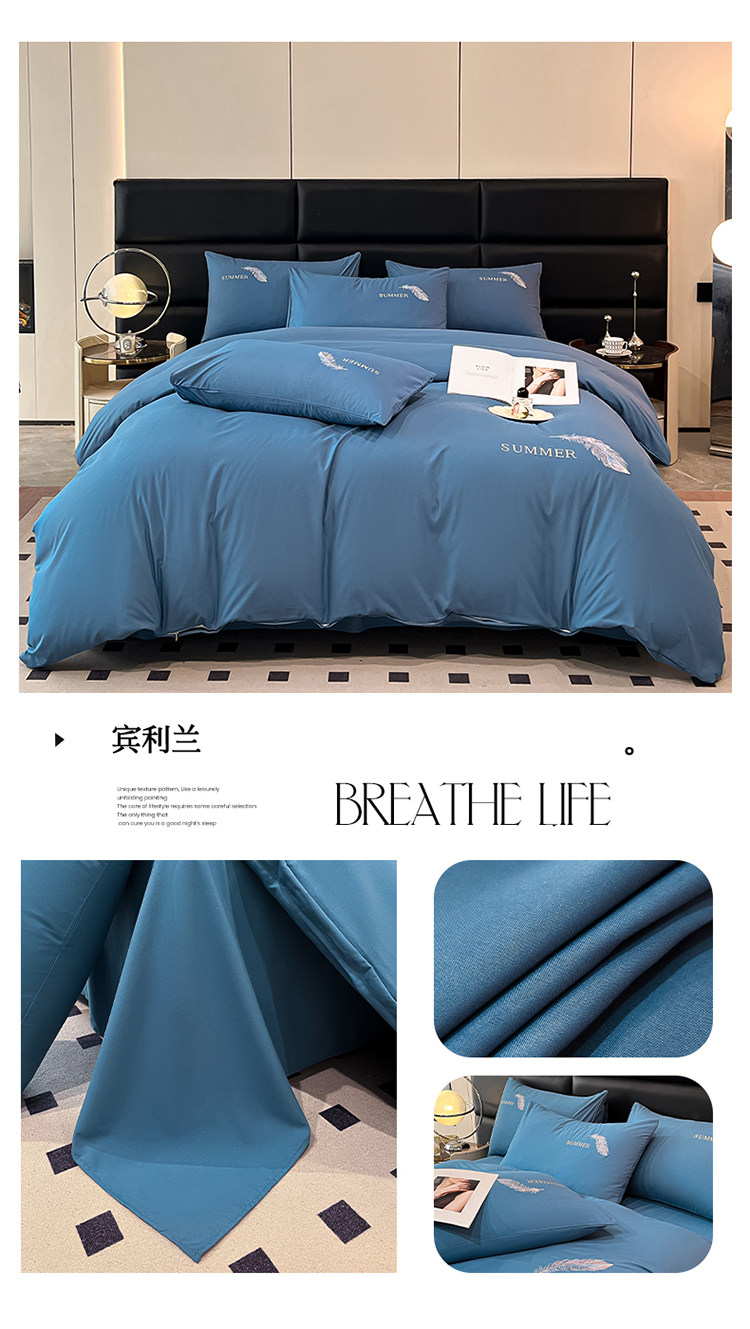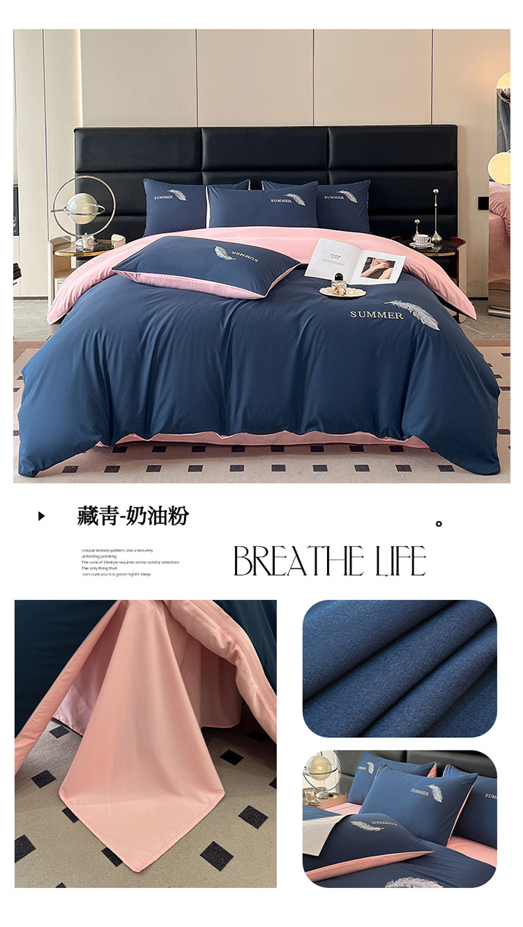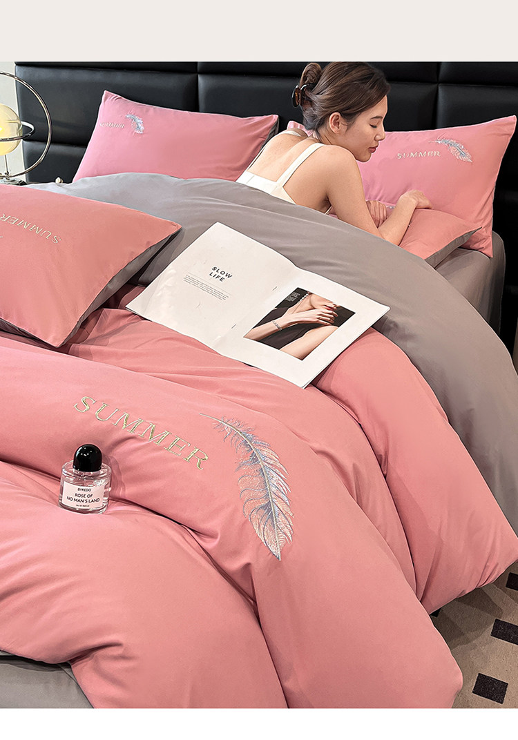 簡約輕奢純棉刺綉被套水洗棉四件套全棉高級感裸睡單被罩床單床包