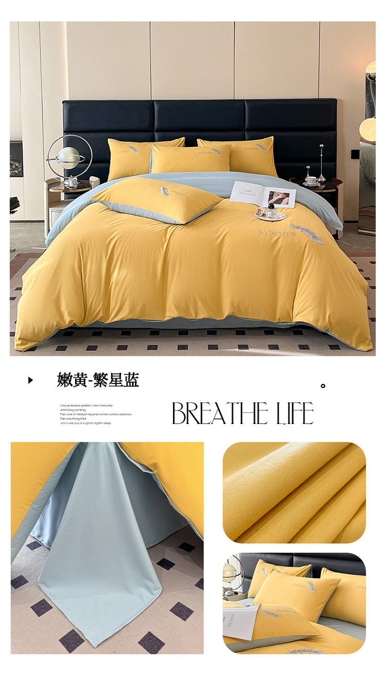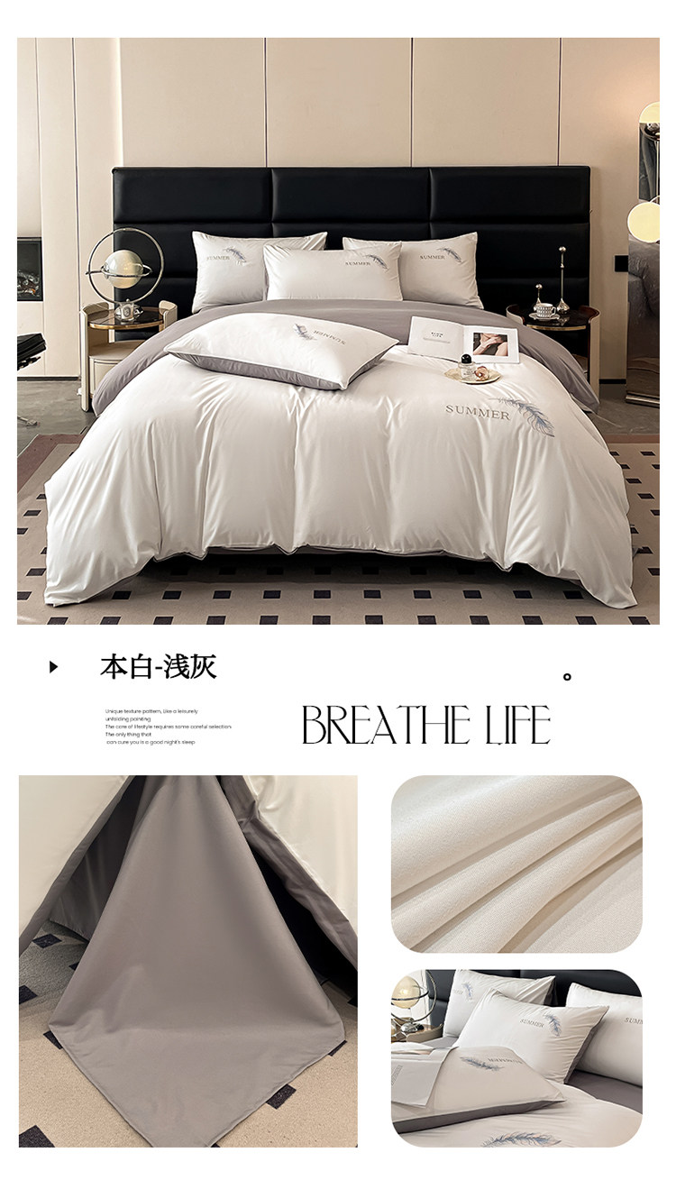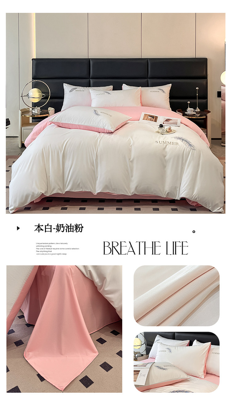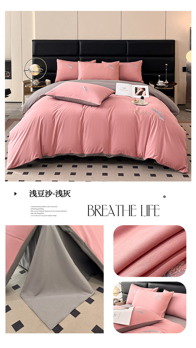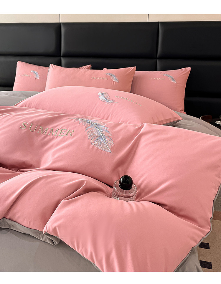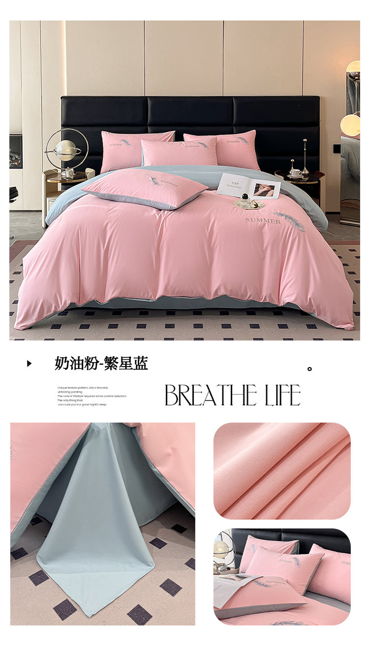 簡約輕奢純棉刺綉被套水洗棉四件套全棉高級感裸睡單被罩床單床包