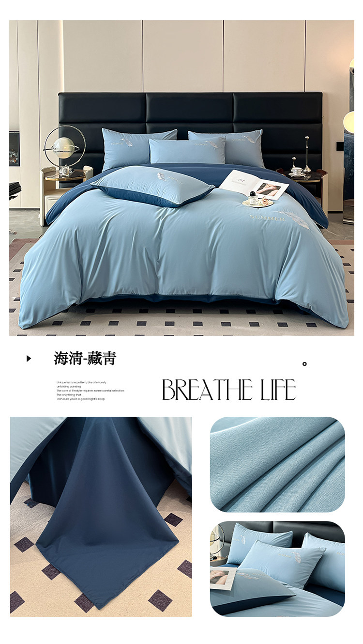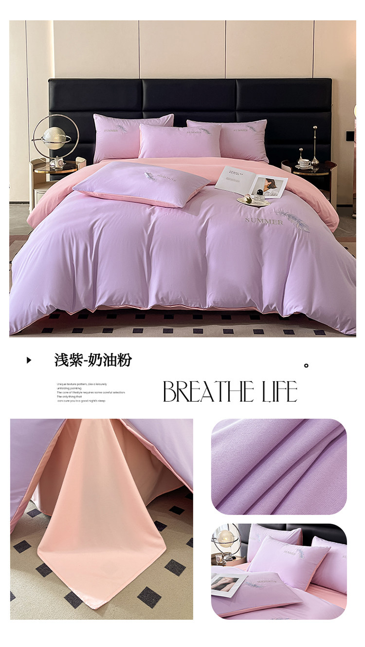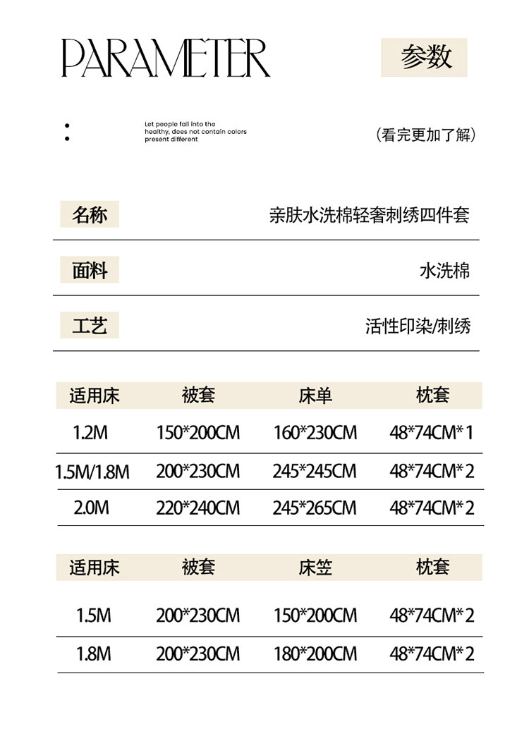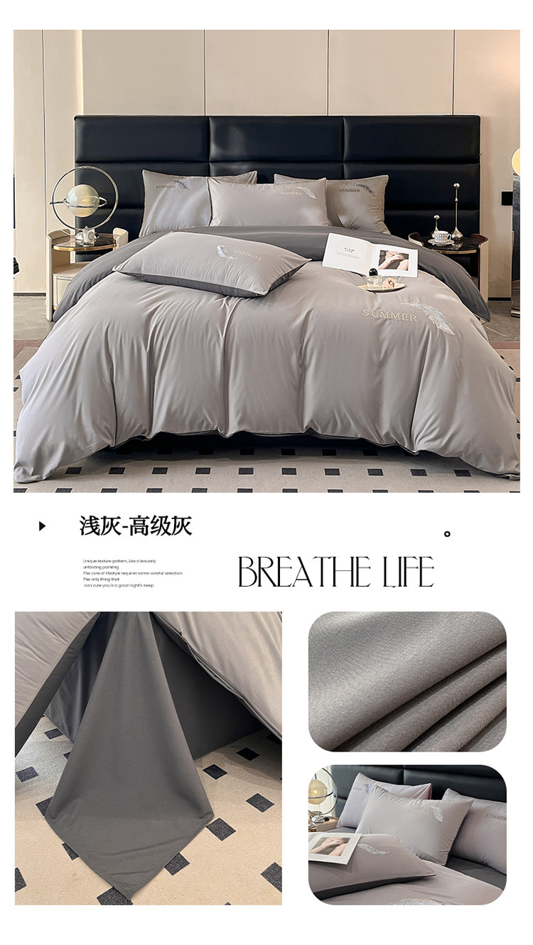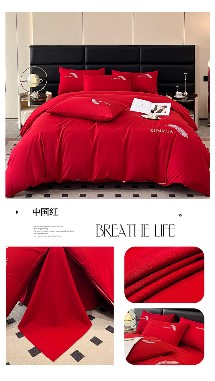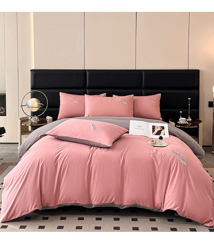 簡約輕奢純棉刺綉被套水洗棉四件套全棉高級感裸睡單被罩床單床包