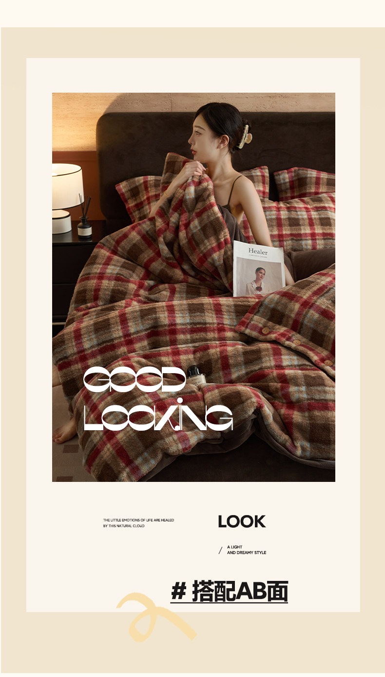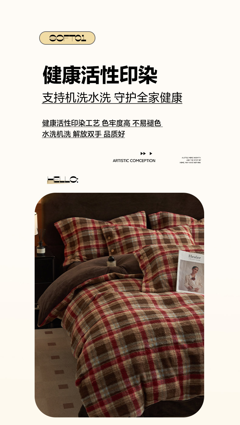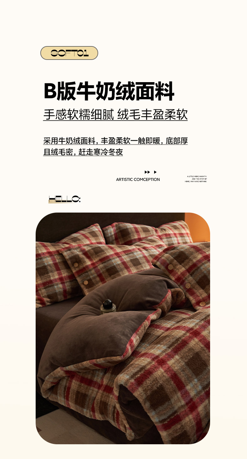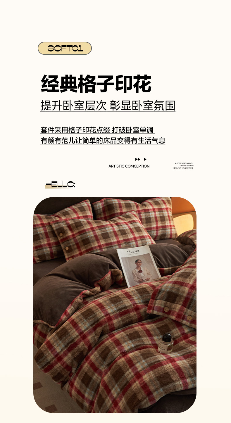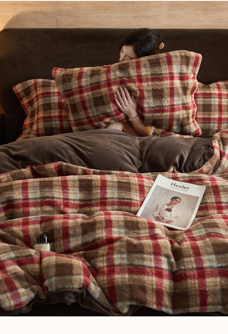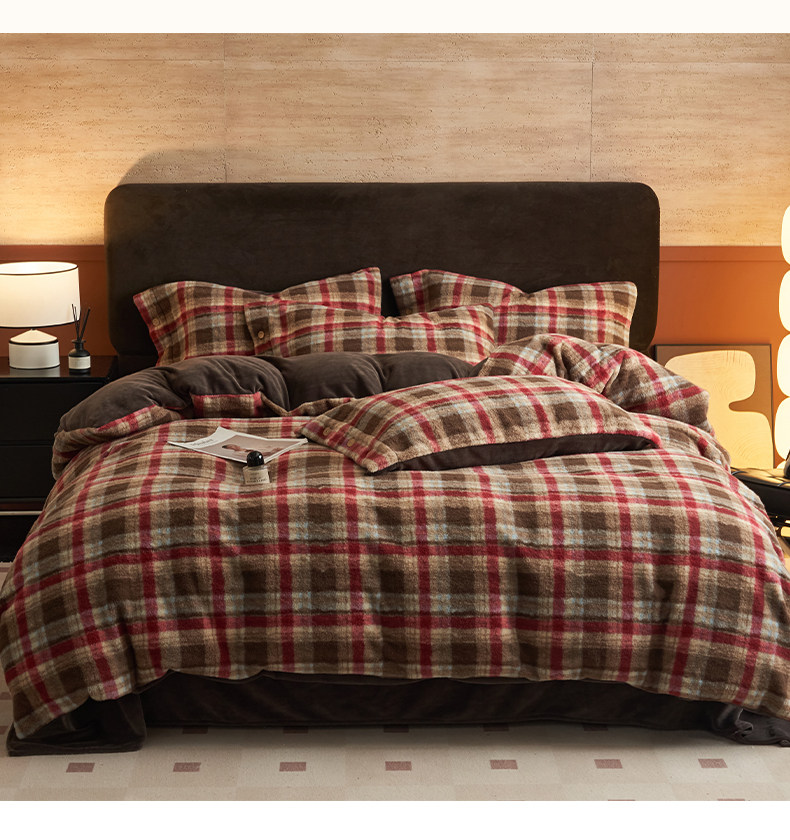 經典格子加厚牛奶絨四件套法蘭絨被套床品冬季雙面絨床單三件套1