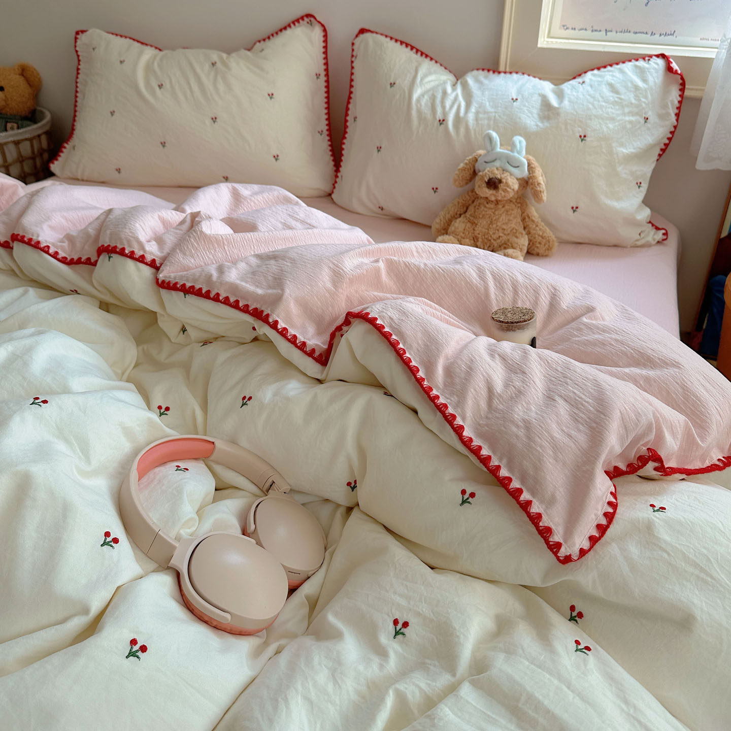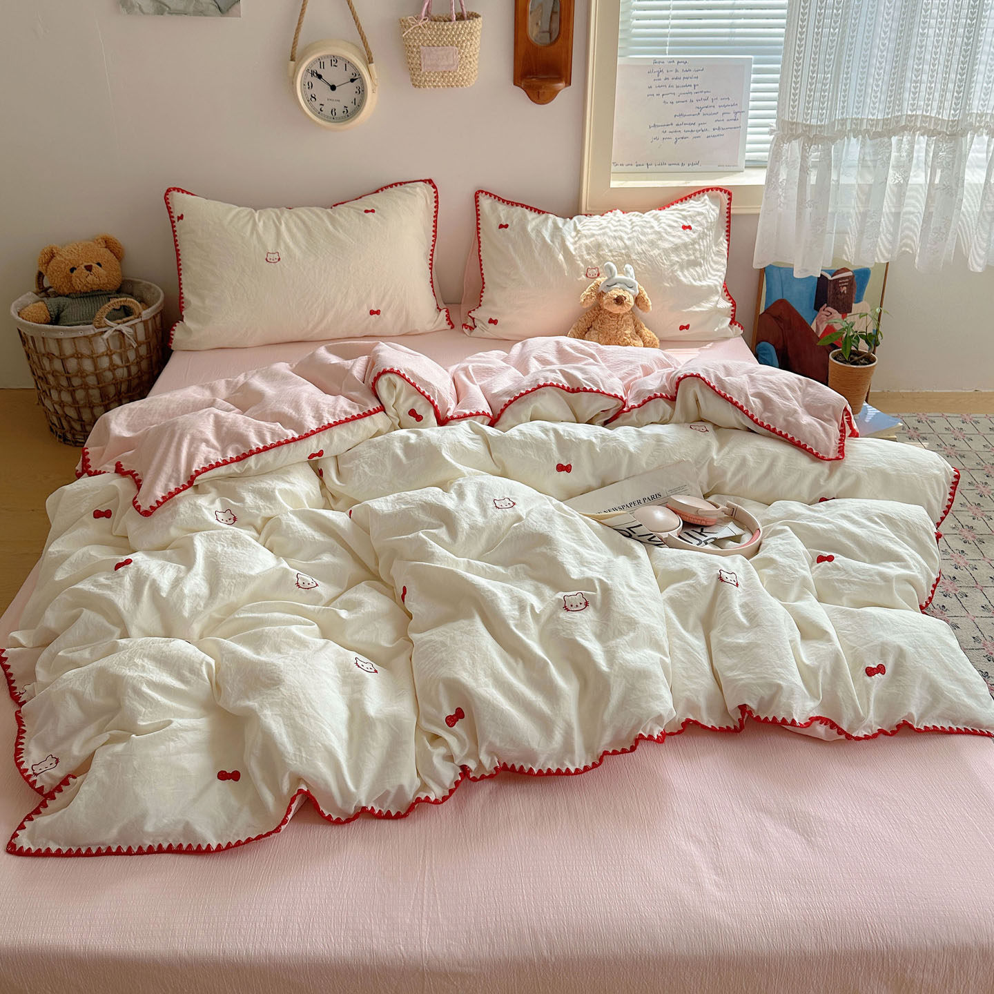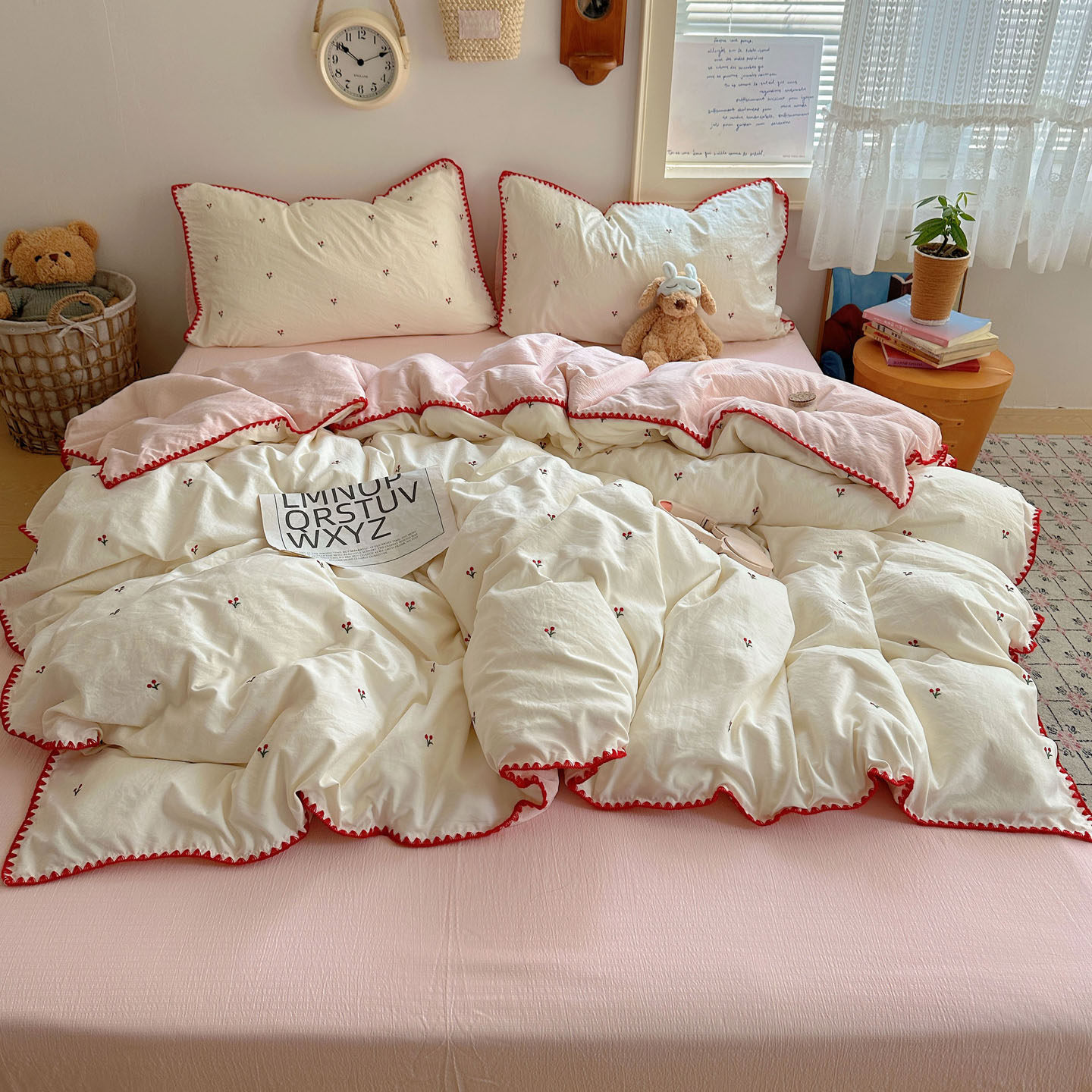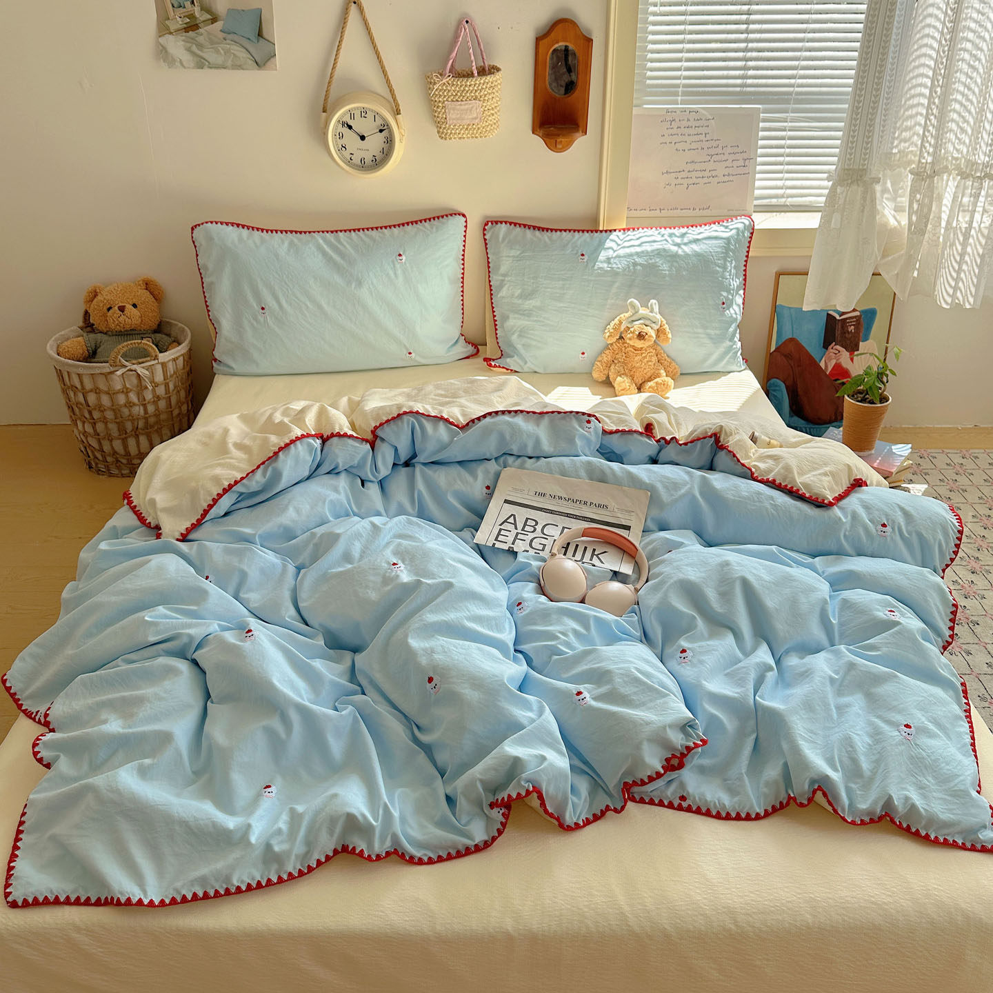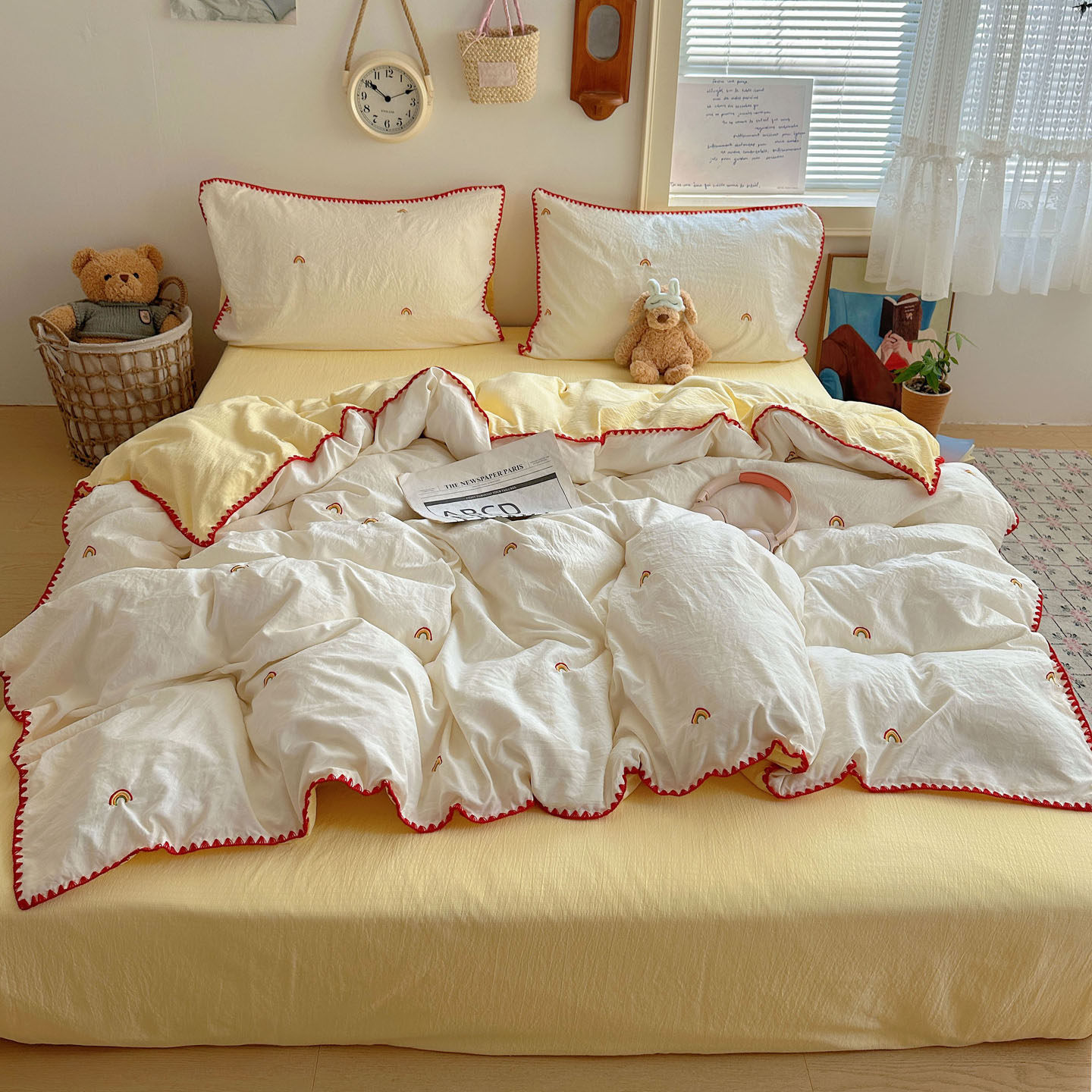 ins韓版被套床單四件套少女心學生宿捨非純棉全棉床上三件套被罩