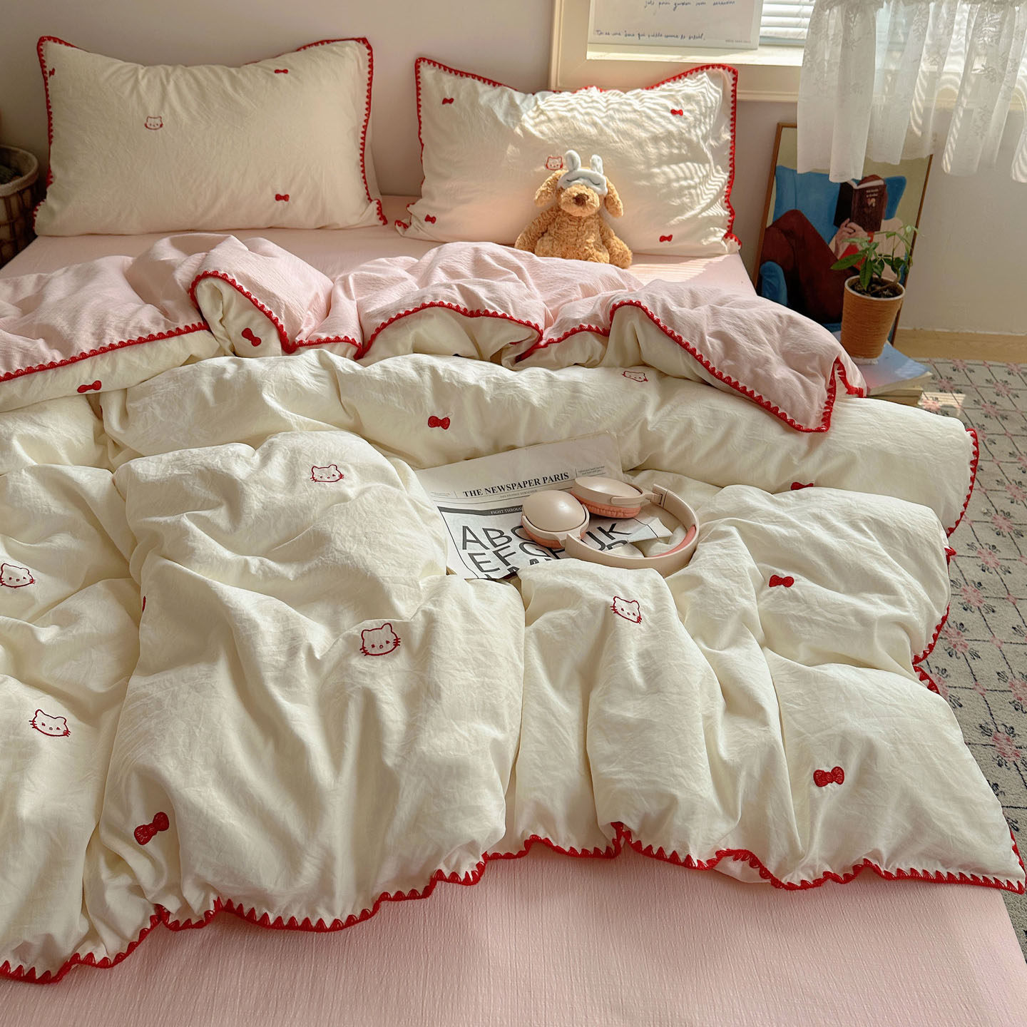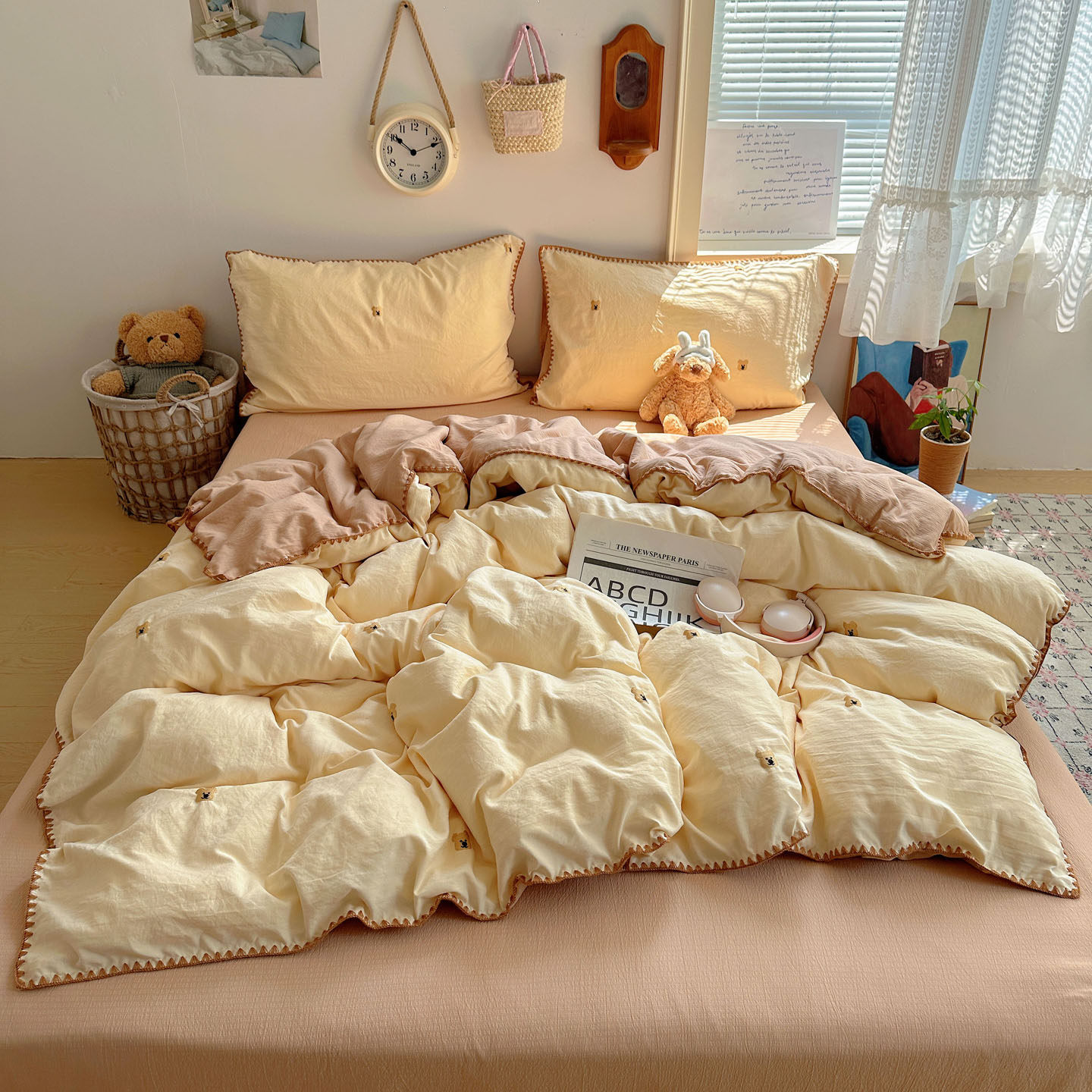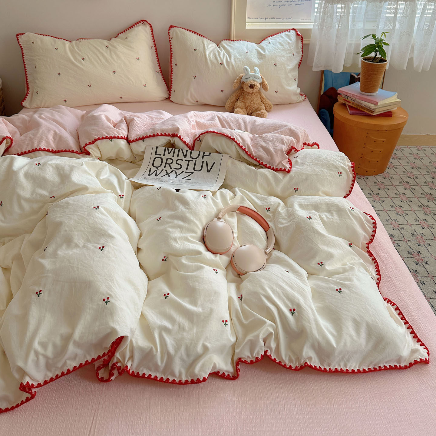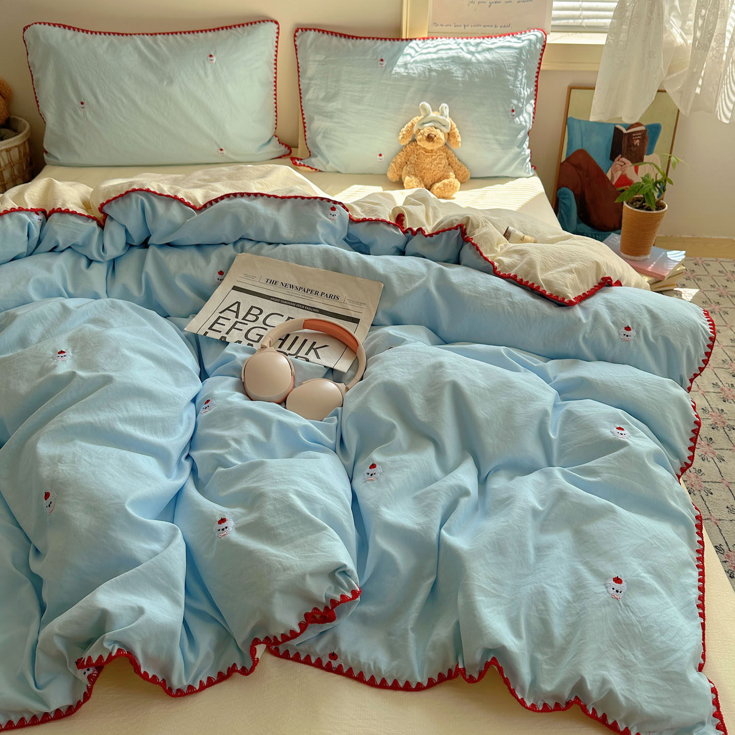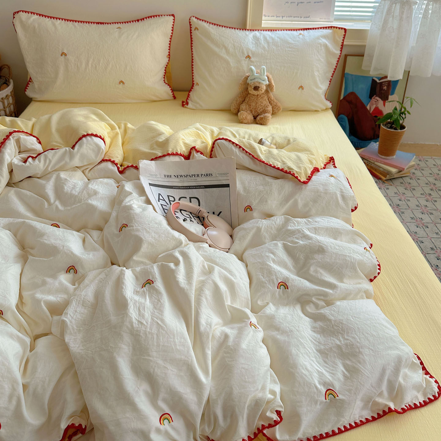 ins韓版被套床單四件套少女心學生宿捨非純棉全棉床上三件套被罩