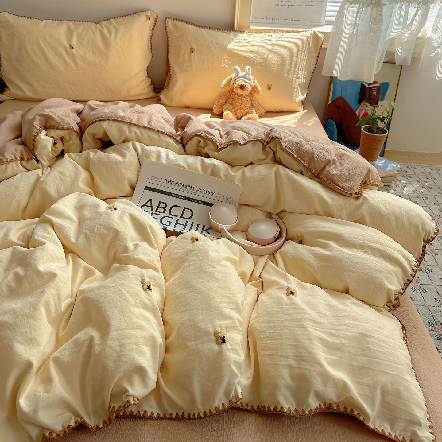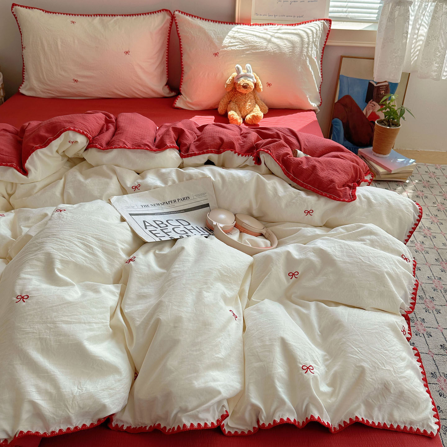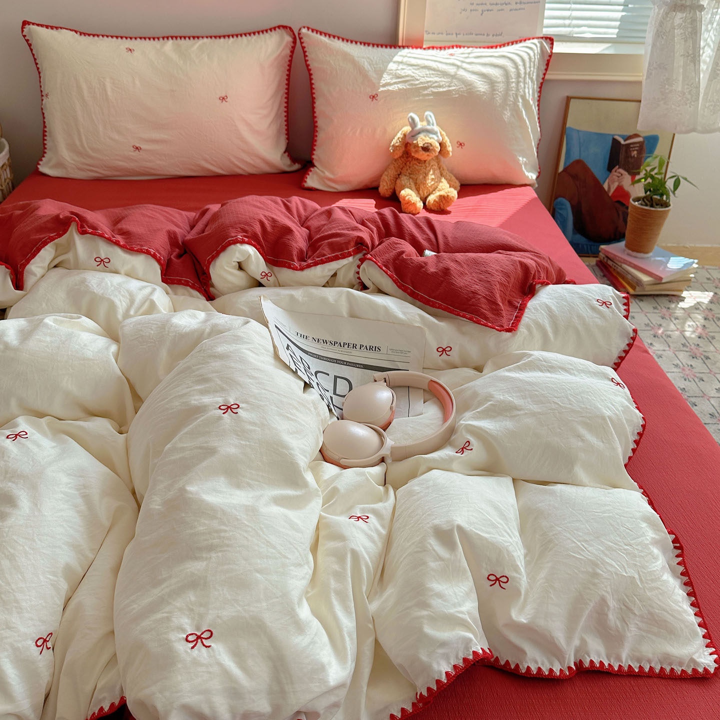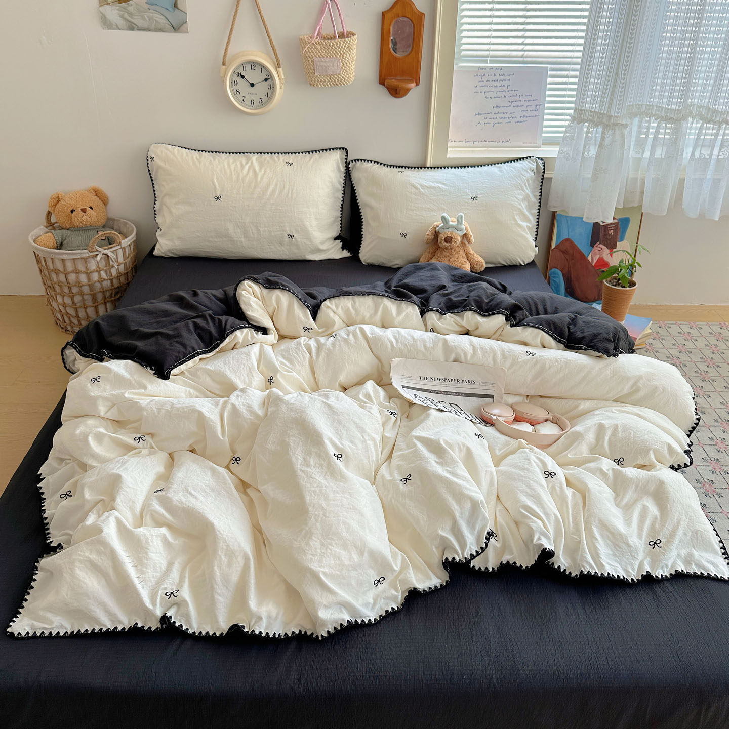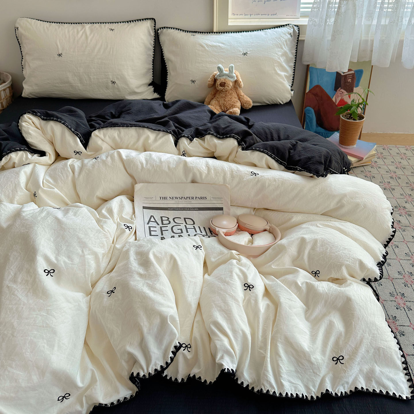 ins韓版被套床單四件套少女心學生宿捨非純棉全棉床上三件套被罩