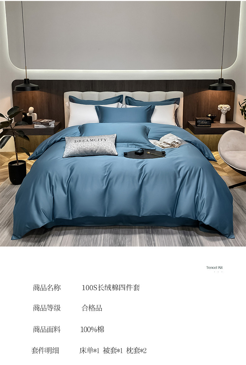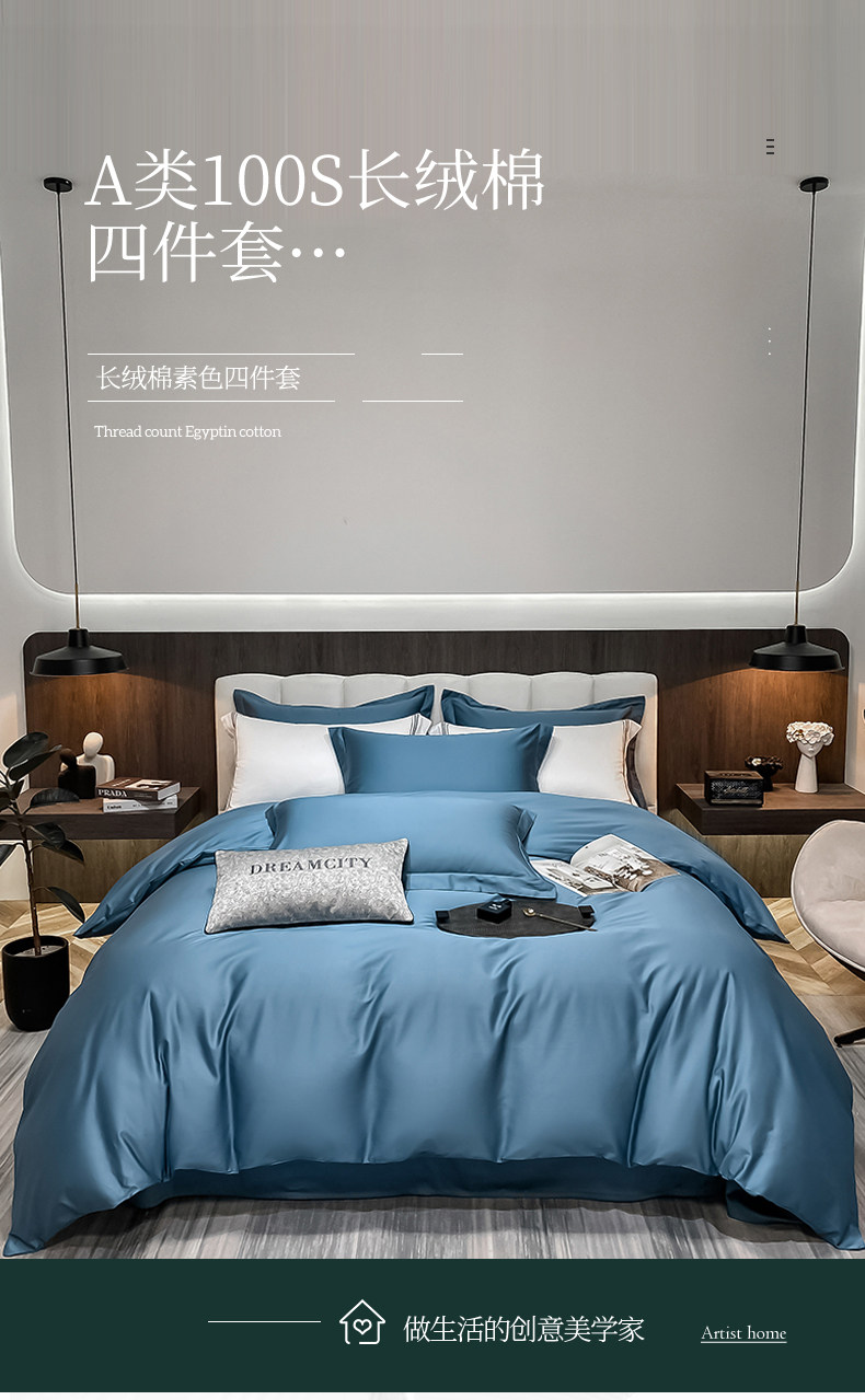 A類100支床上四件套全棉純棉2025新款純色床單被套加厚床品套件4