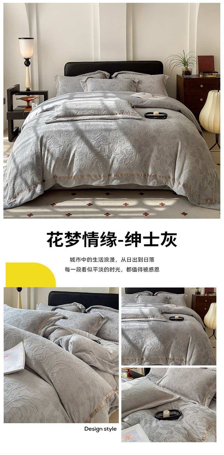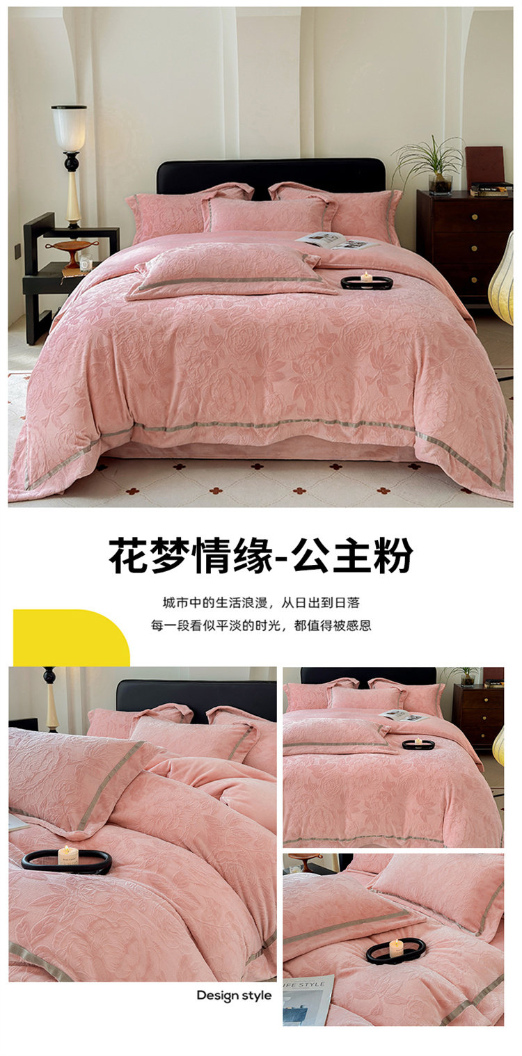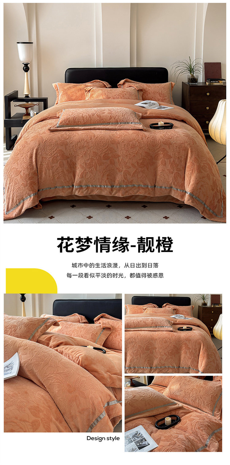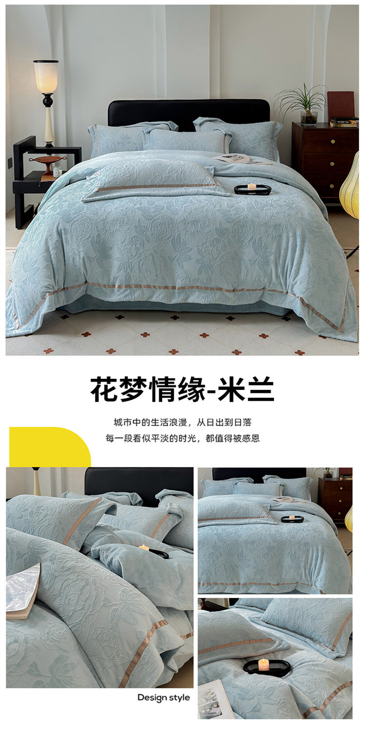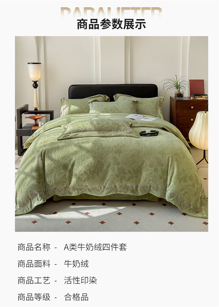 復古綠色雕花牛奶絨高級四件套大氣輕奢被套珊瑚毛絨床單冬季床品