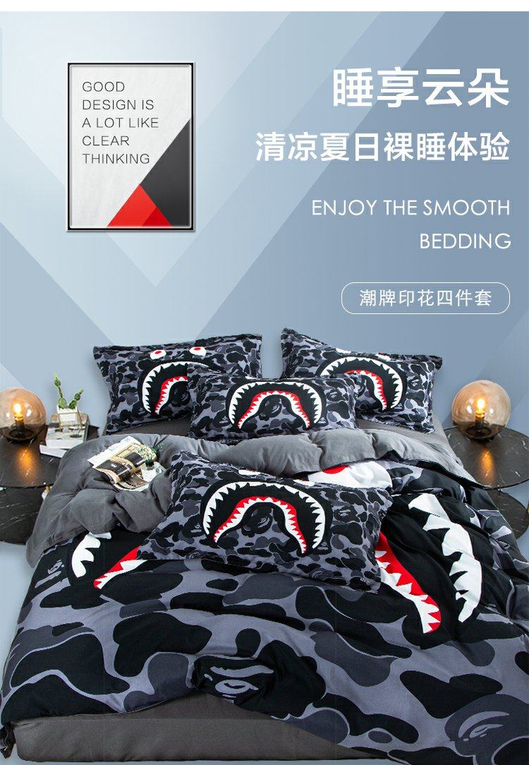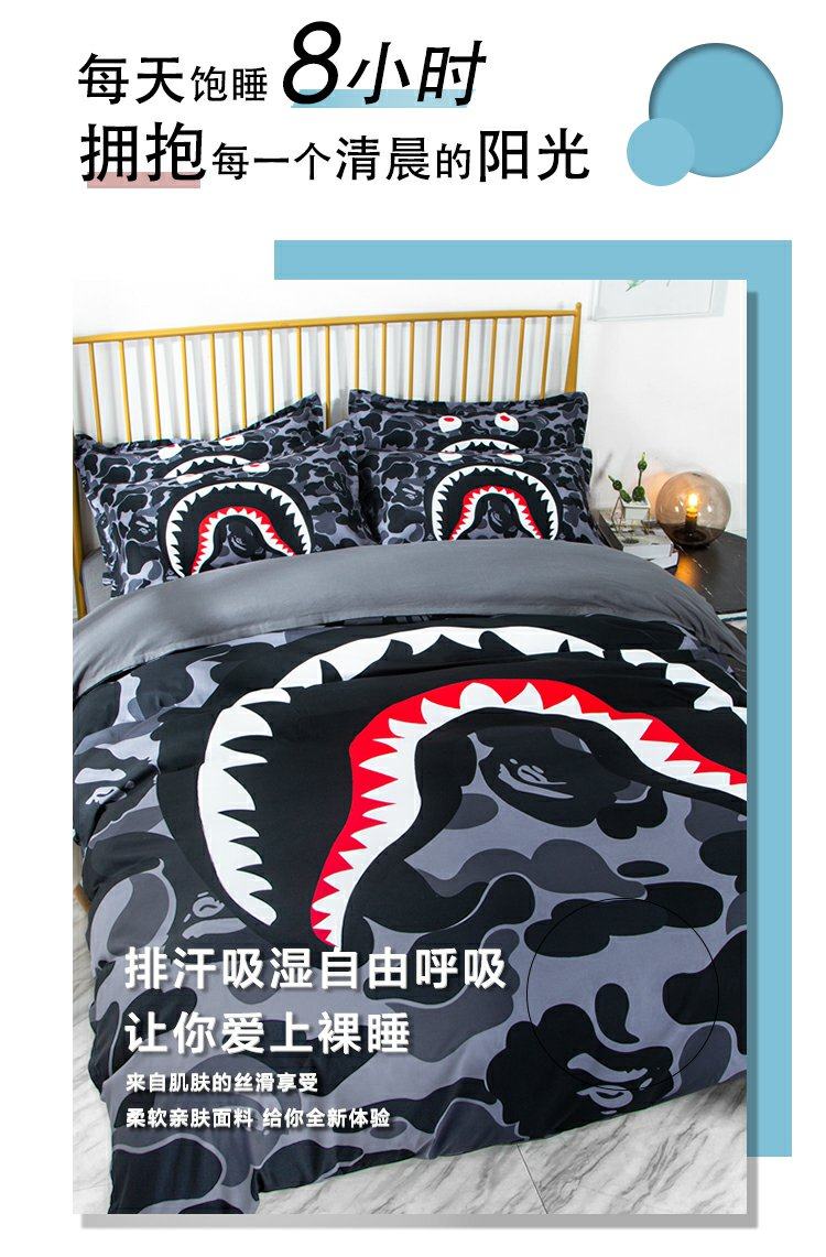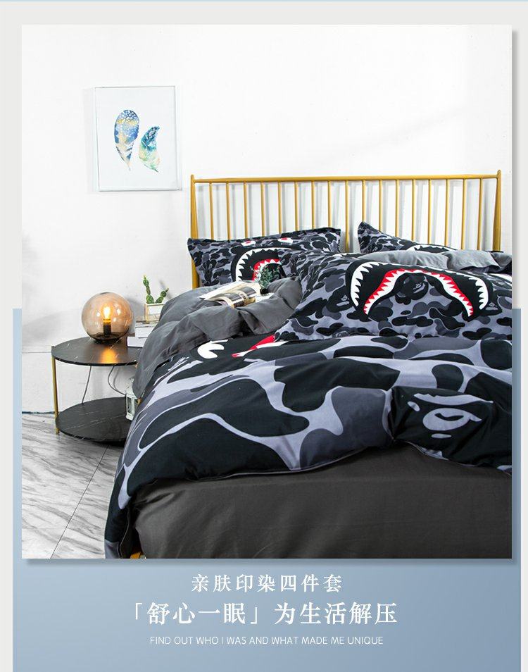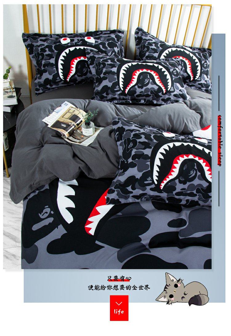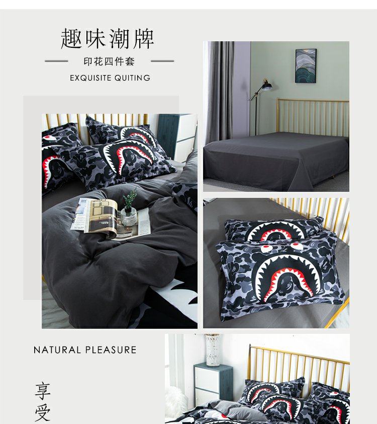 開學季潮牌鯊魚四件套個性網紅款1.5m學生男女宿捨床單被罩三件套