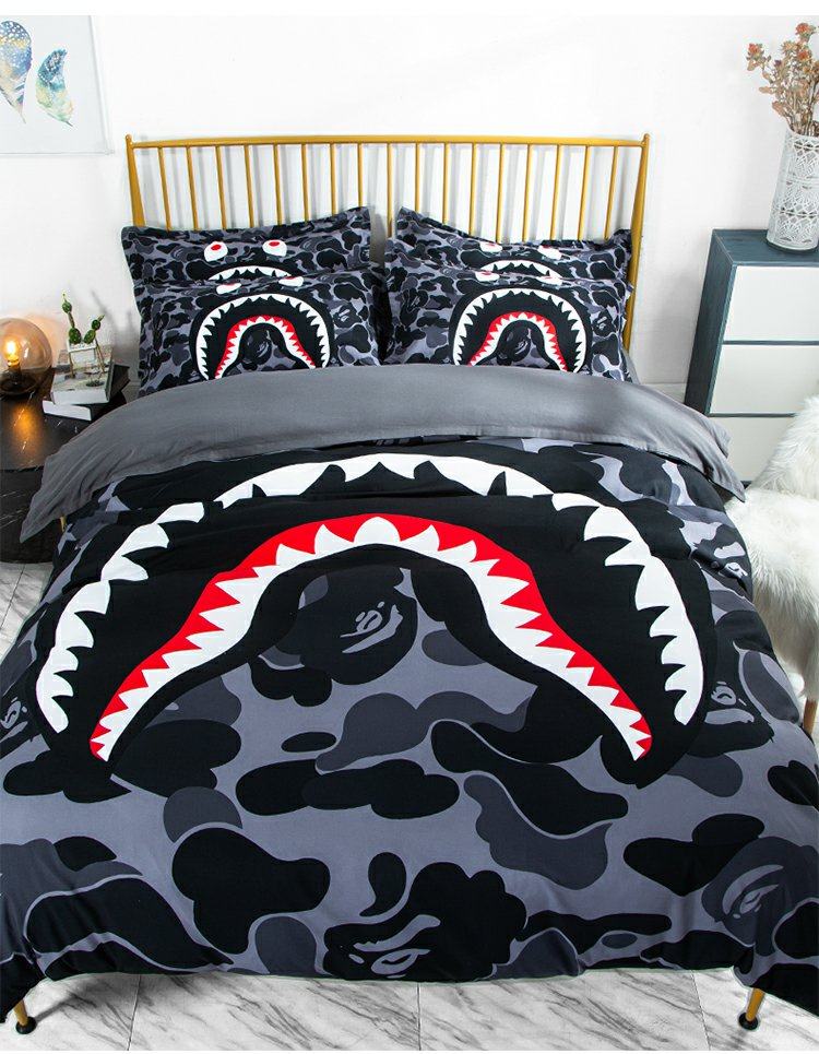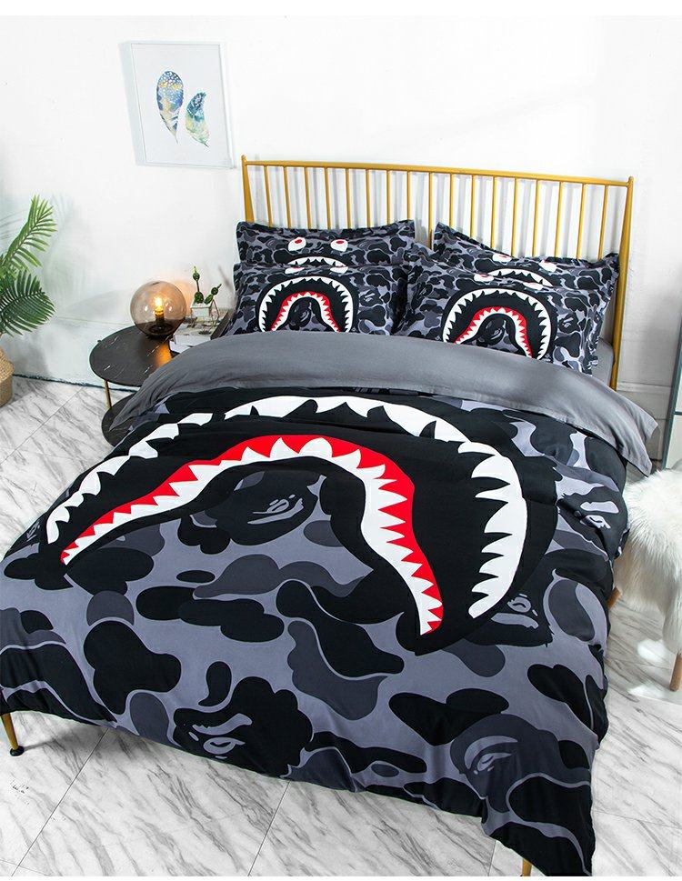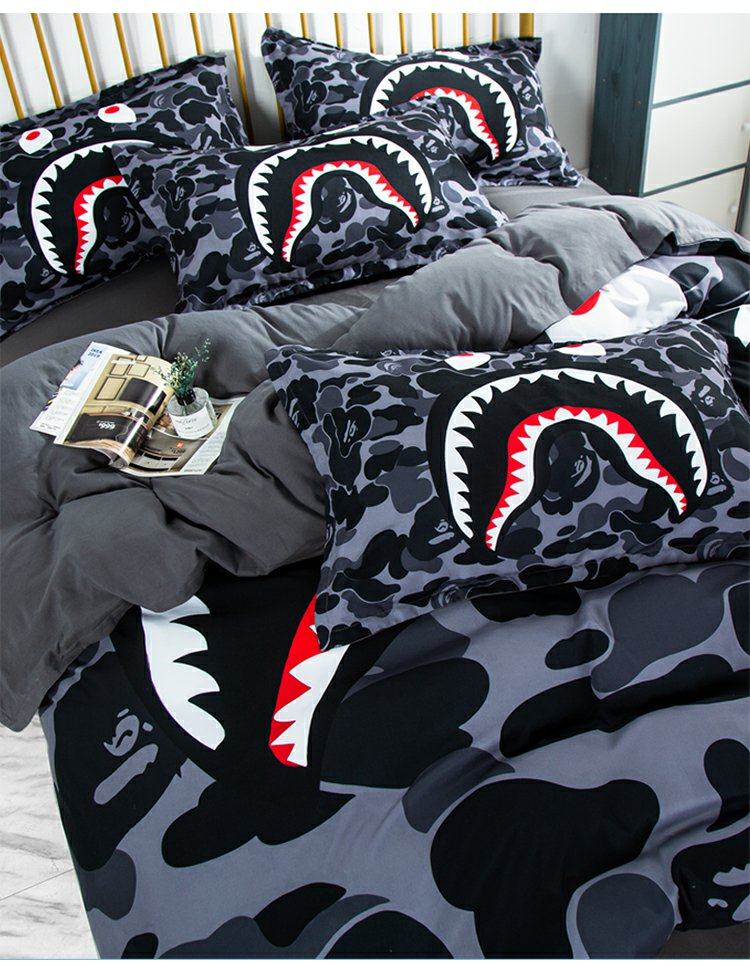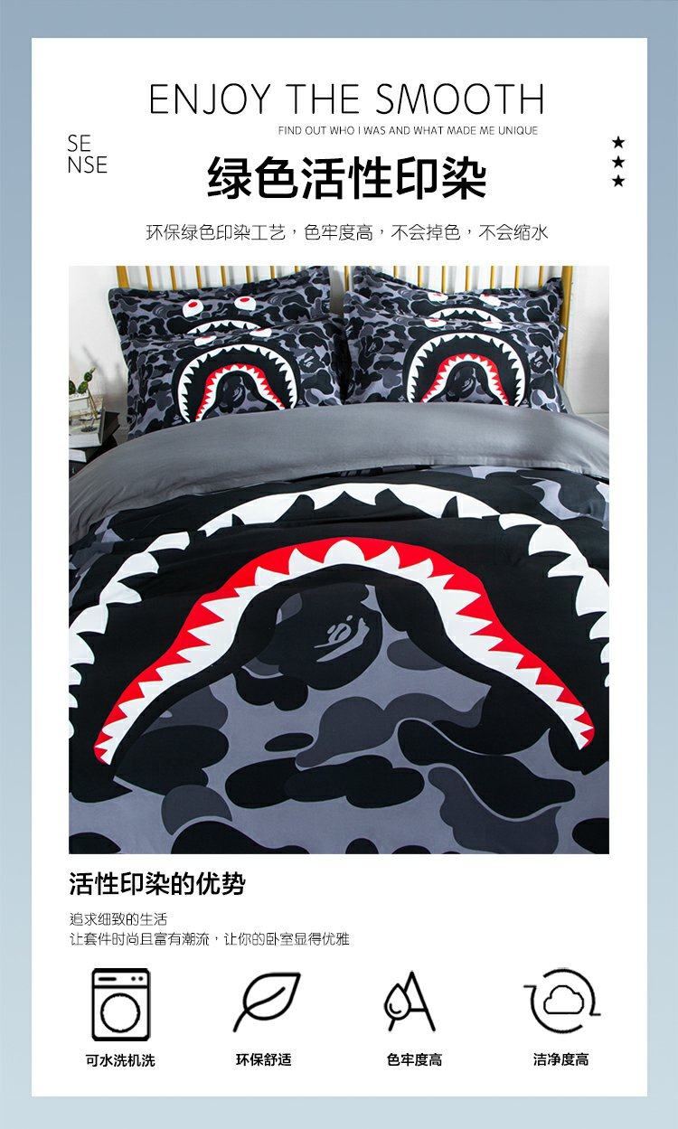 開學季潮牌鯊魚四件套個性網紅款1.5m學生男女宿捨床單被罩三件套