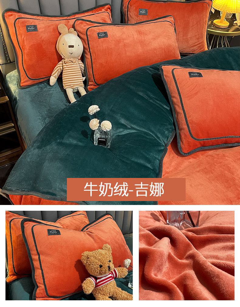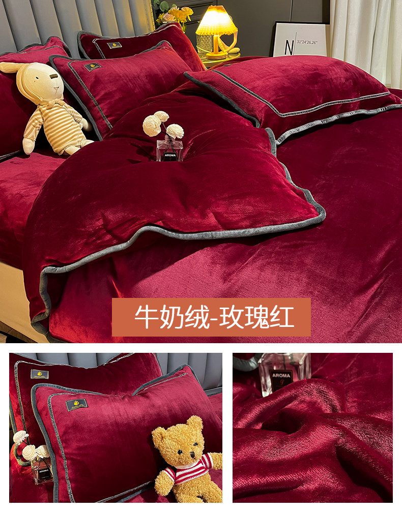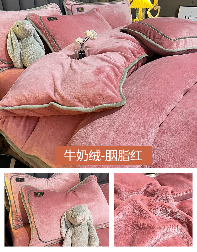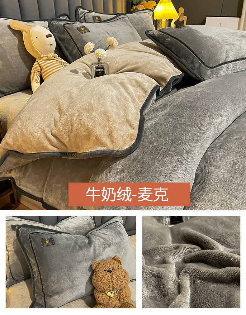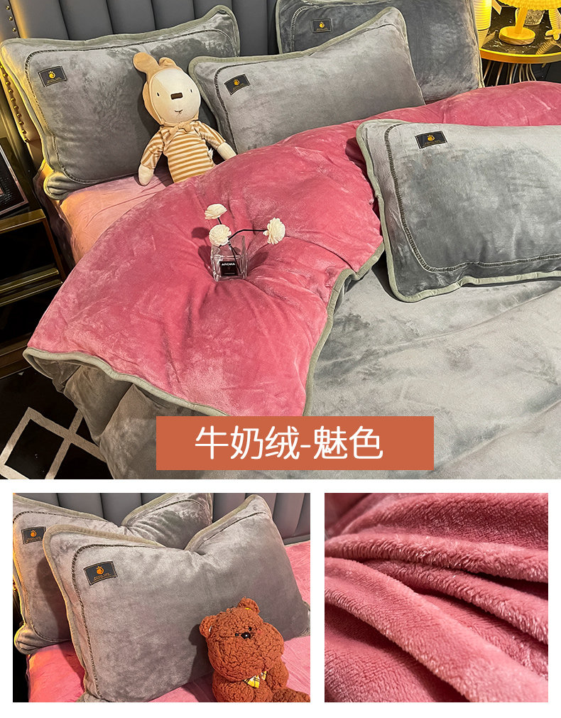 冬季牛奶天鵞絨床上四件套雙面珊瑚寶寶絨被套床單床包款加絨床品