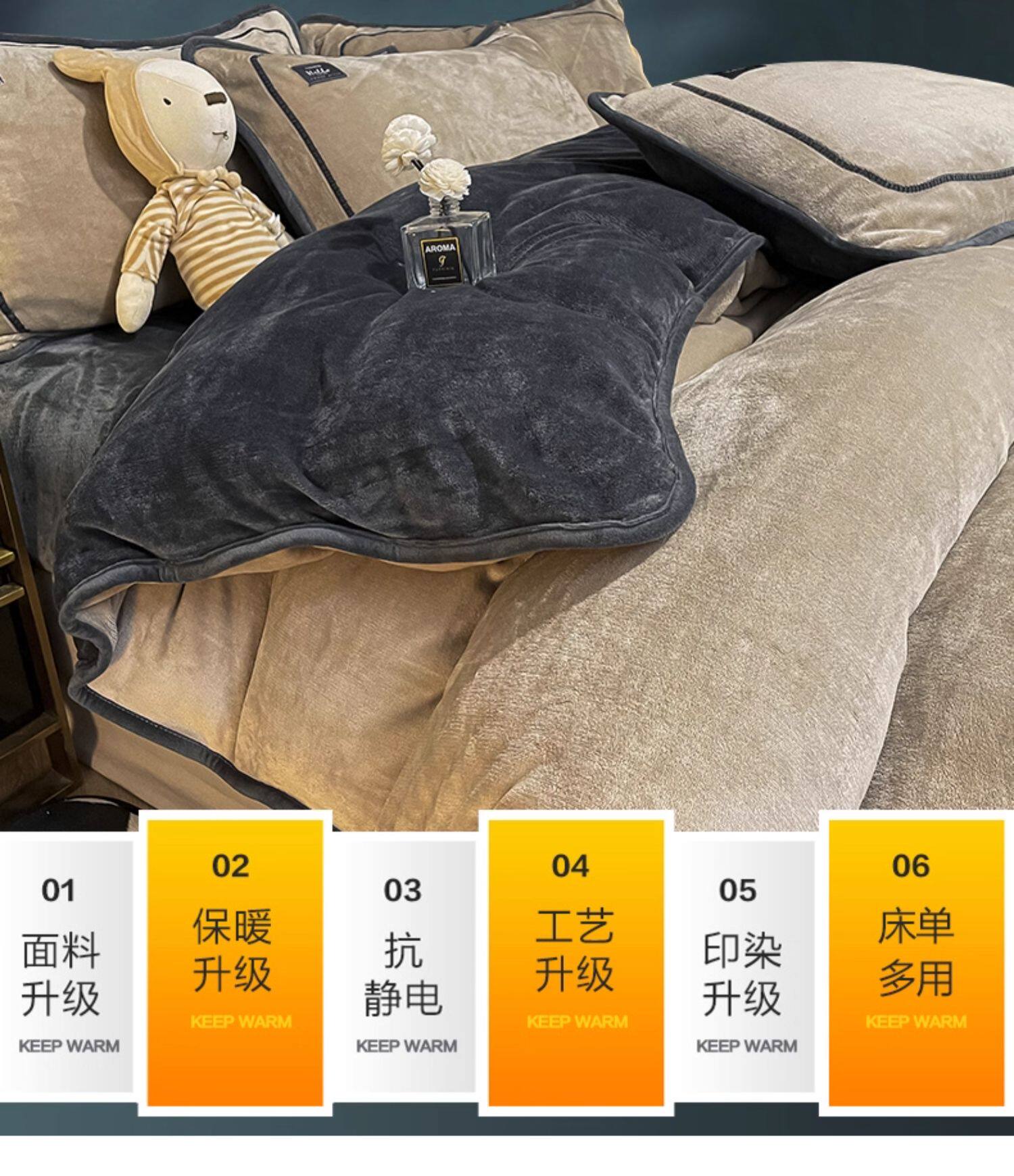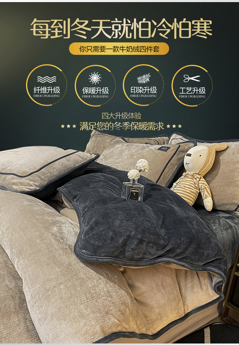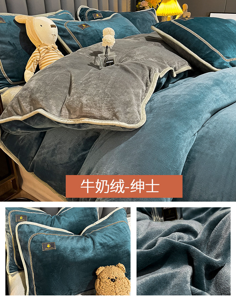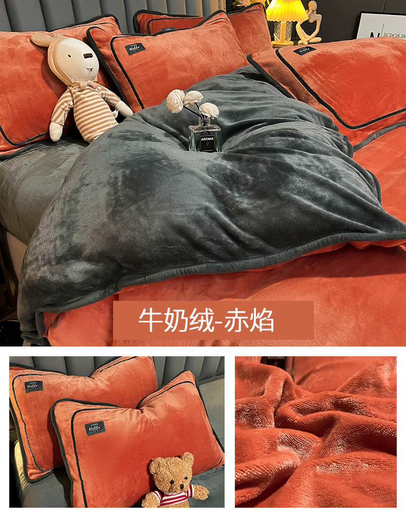 冬季牛奶天鵞絨床上四件套雙面珊瑚寶寶絨被套床單床包款加絨床品