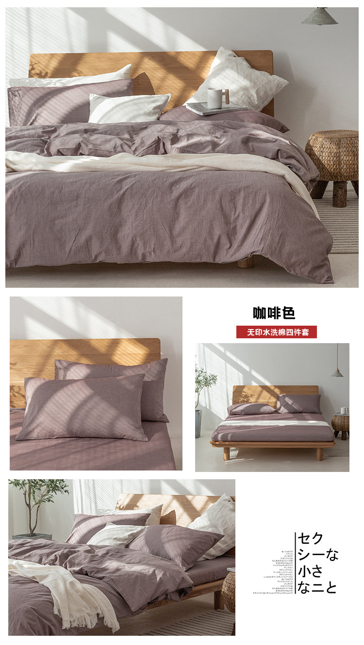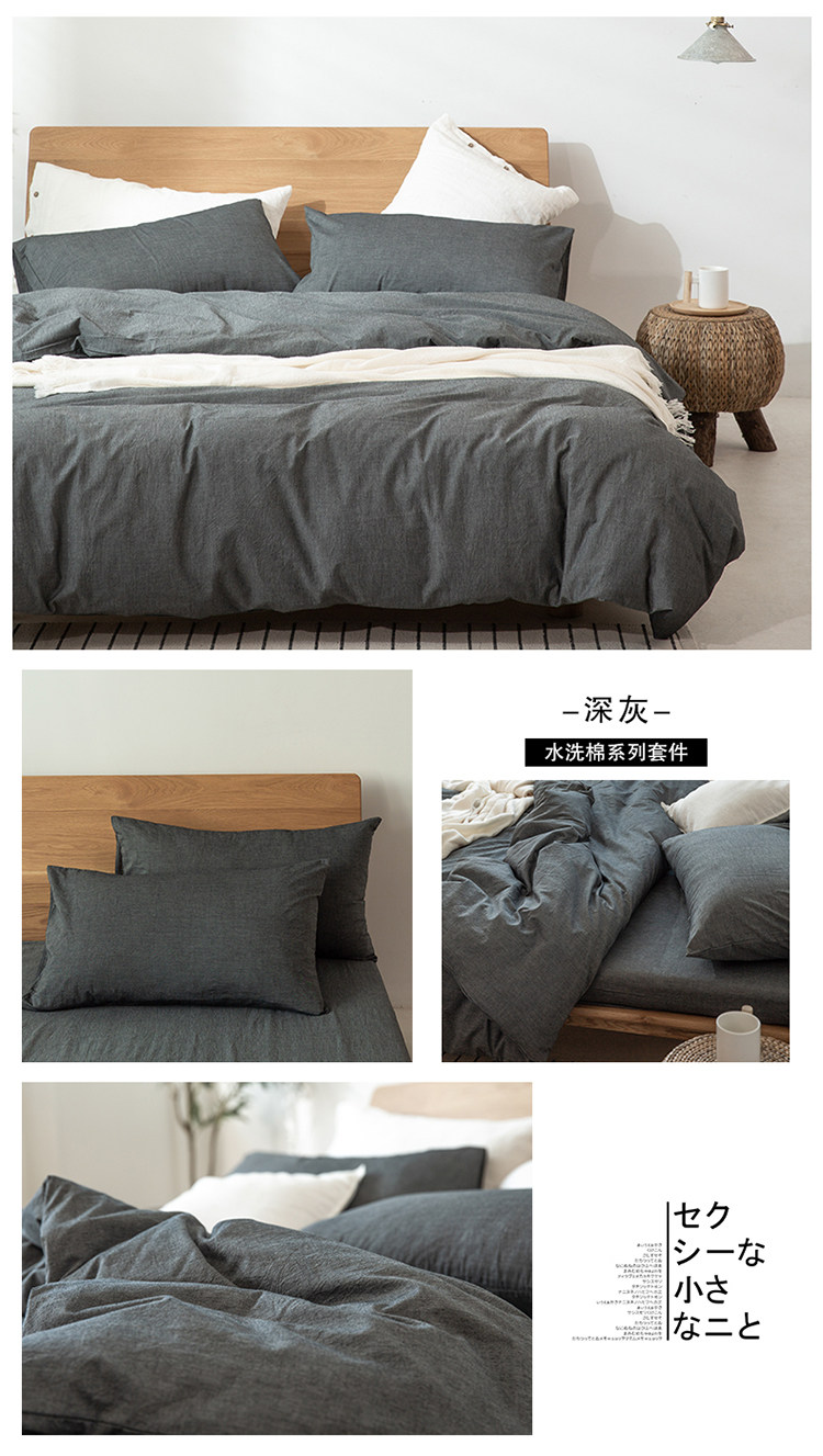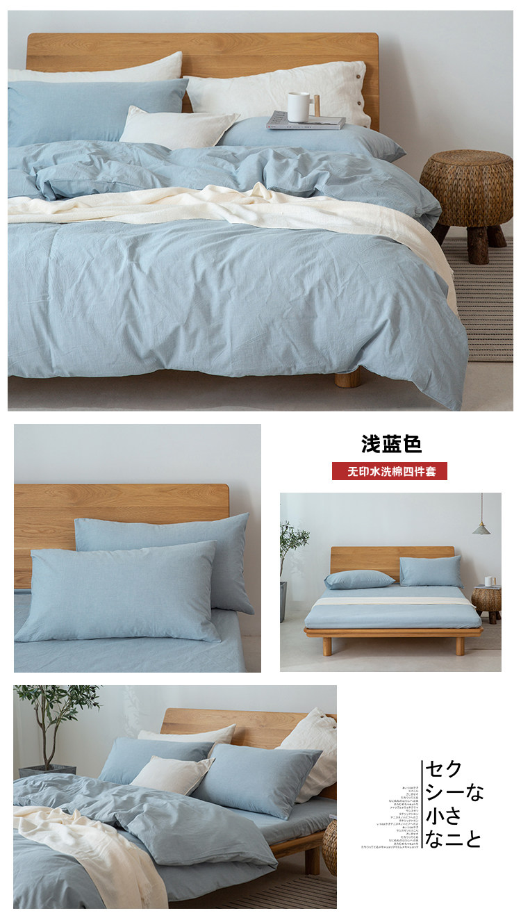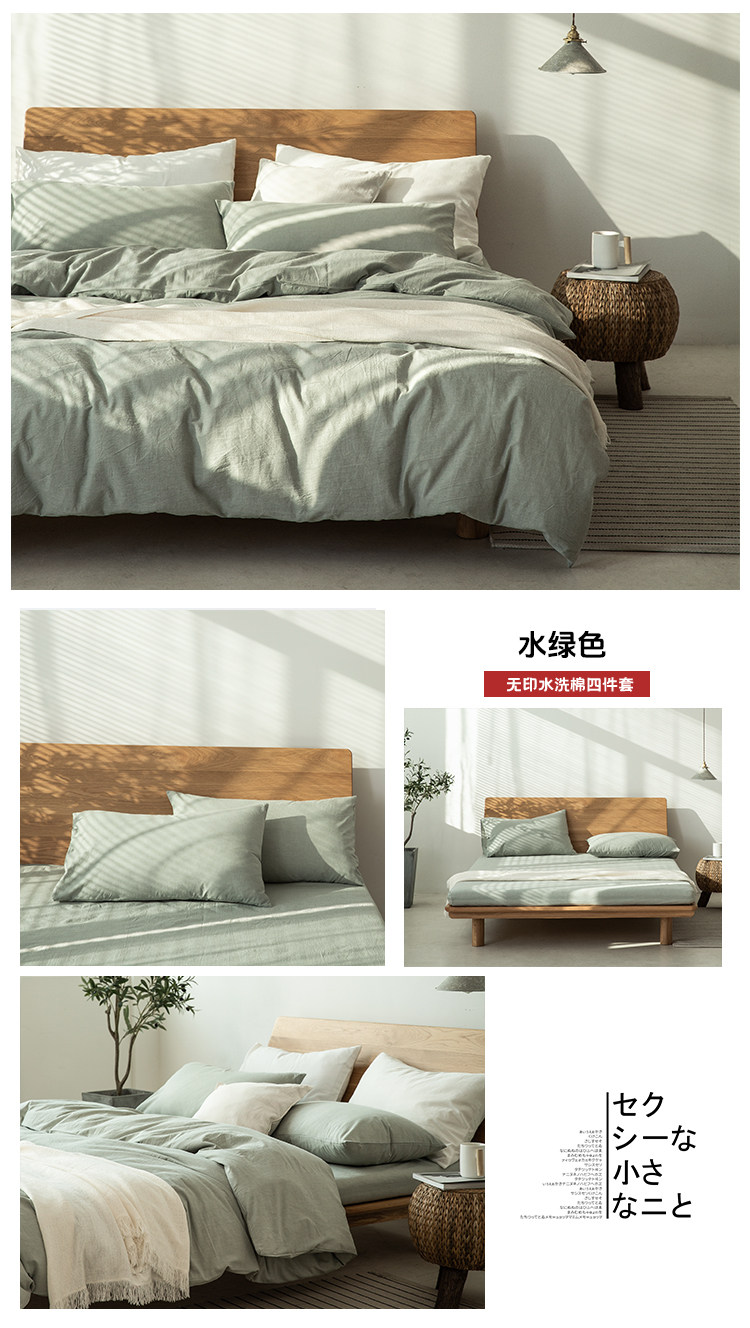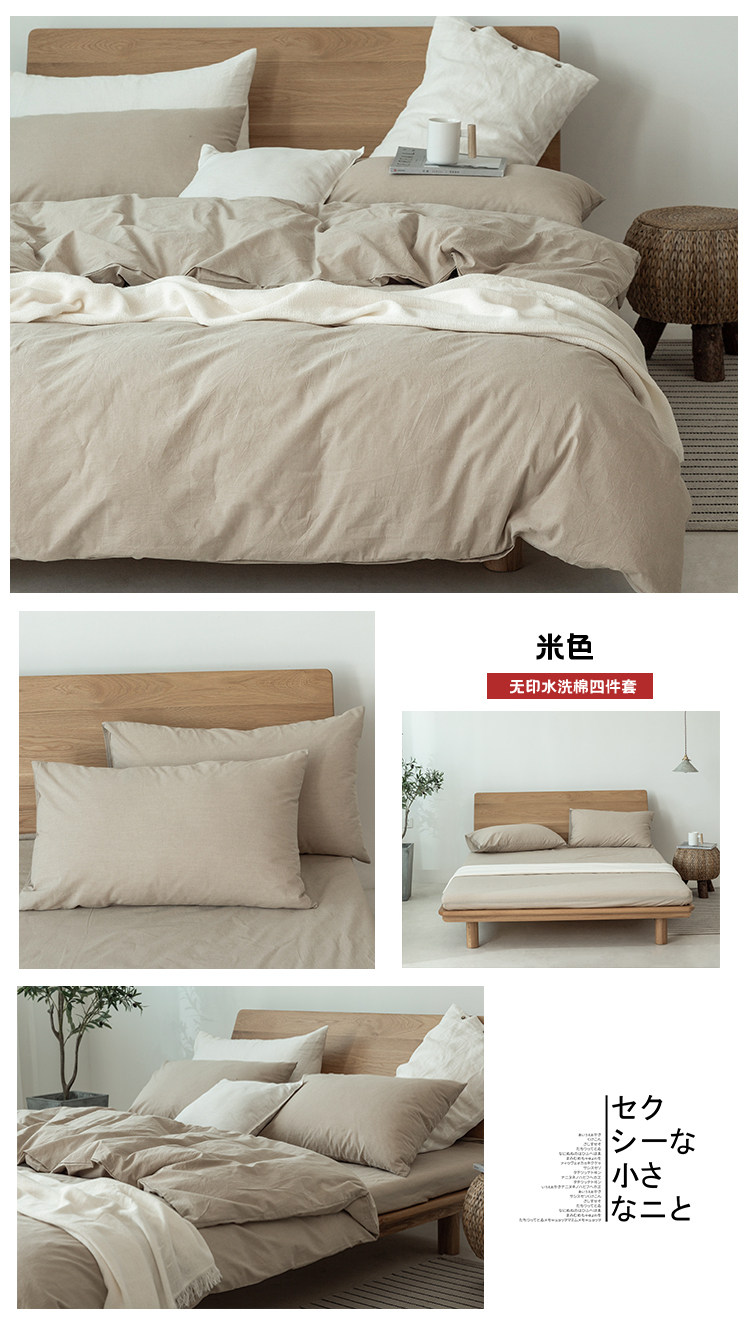 MIJU覔居純棉床上四件套全棉純色水洗床品床單被套床包宿捨三件套