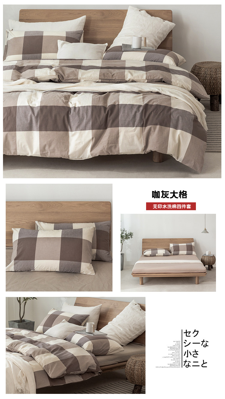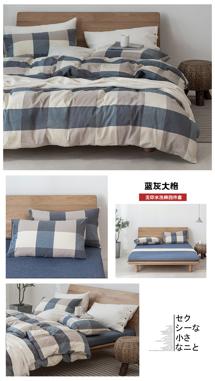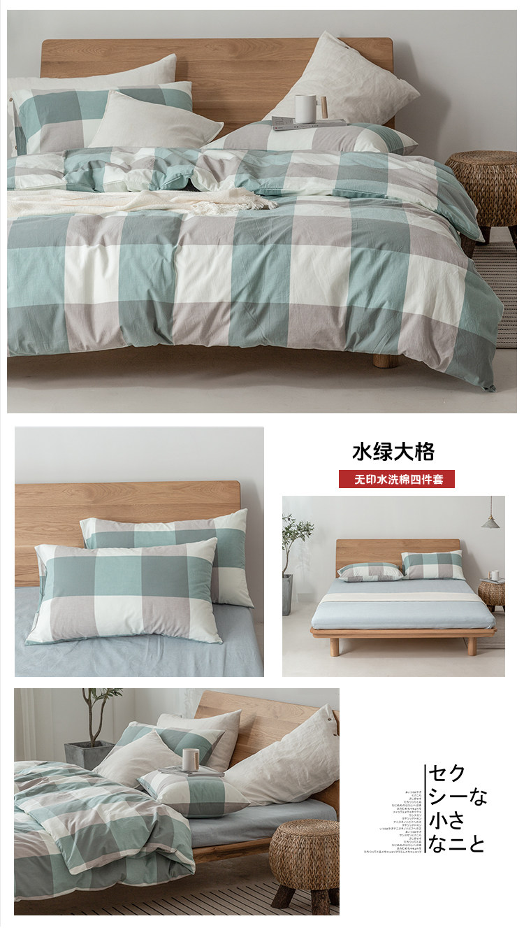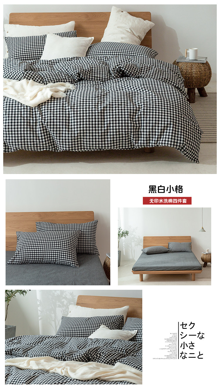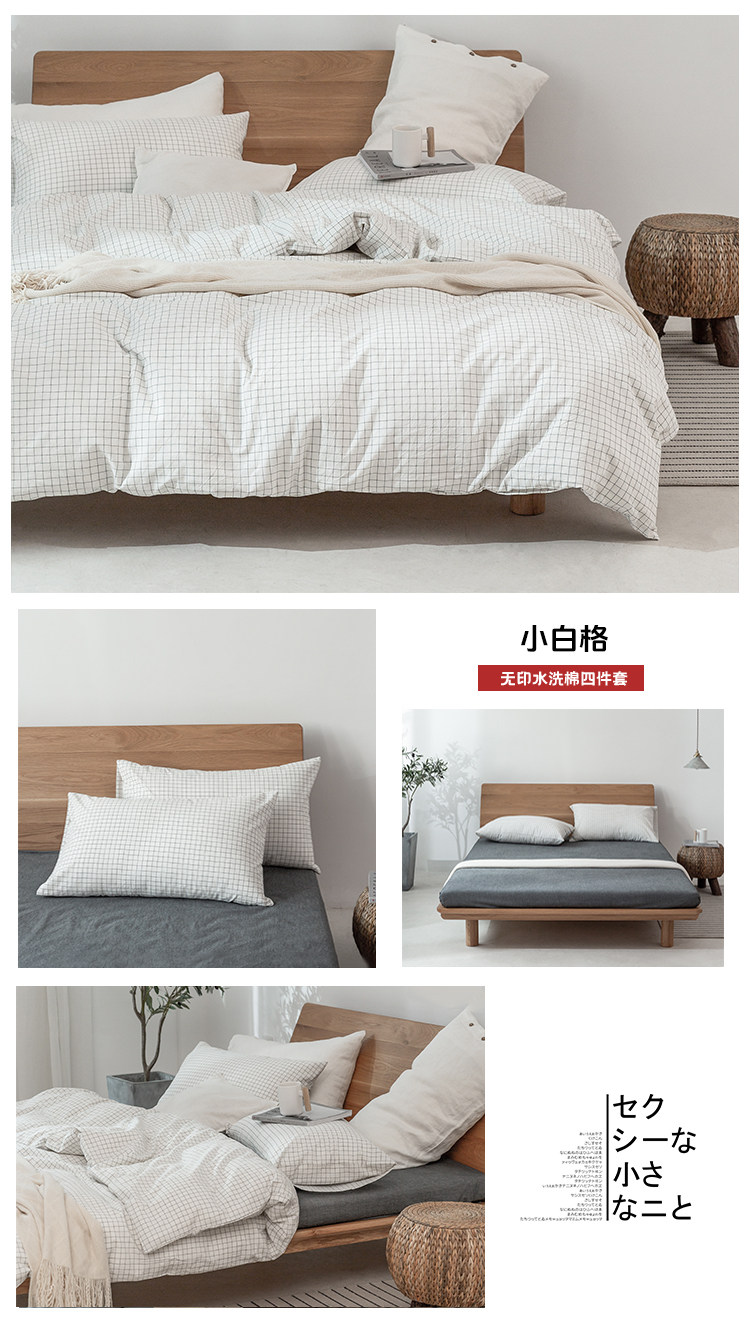 MIJU覔居純棉床上四件套全棉純色水洗床品床單被套床包宿捨三件套