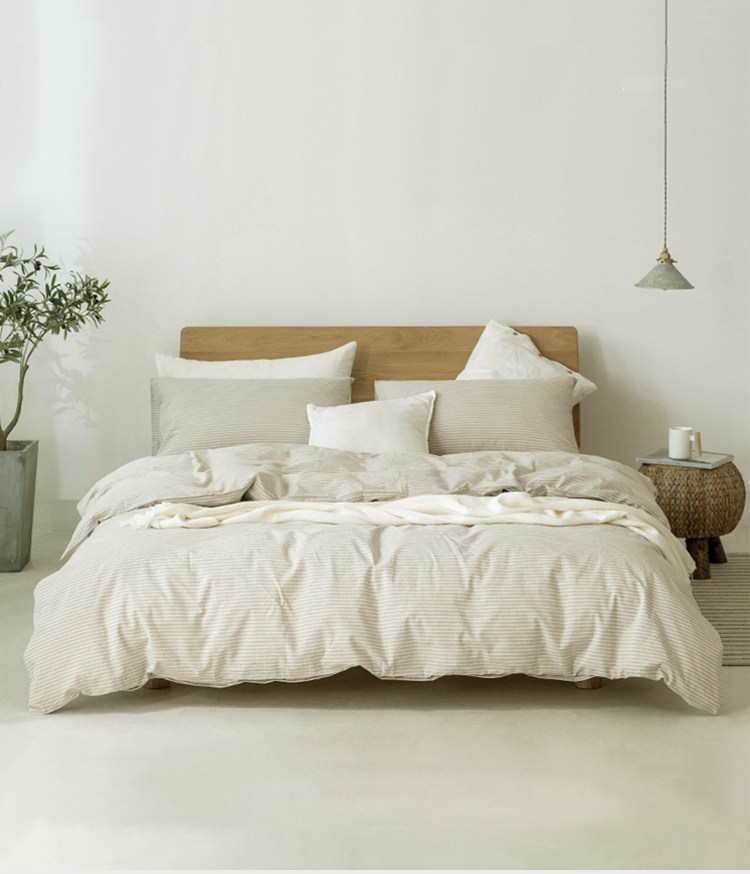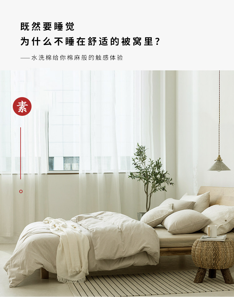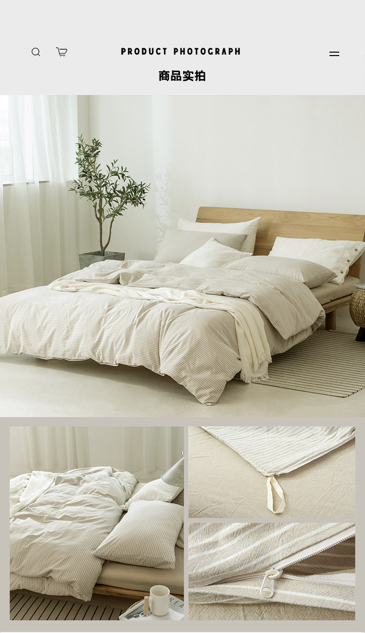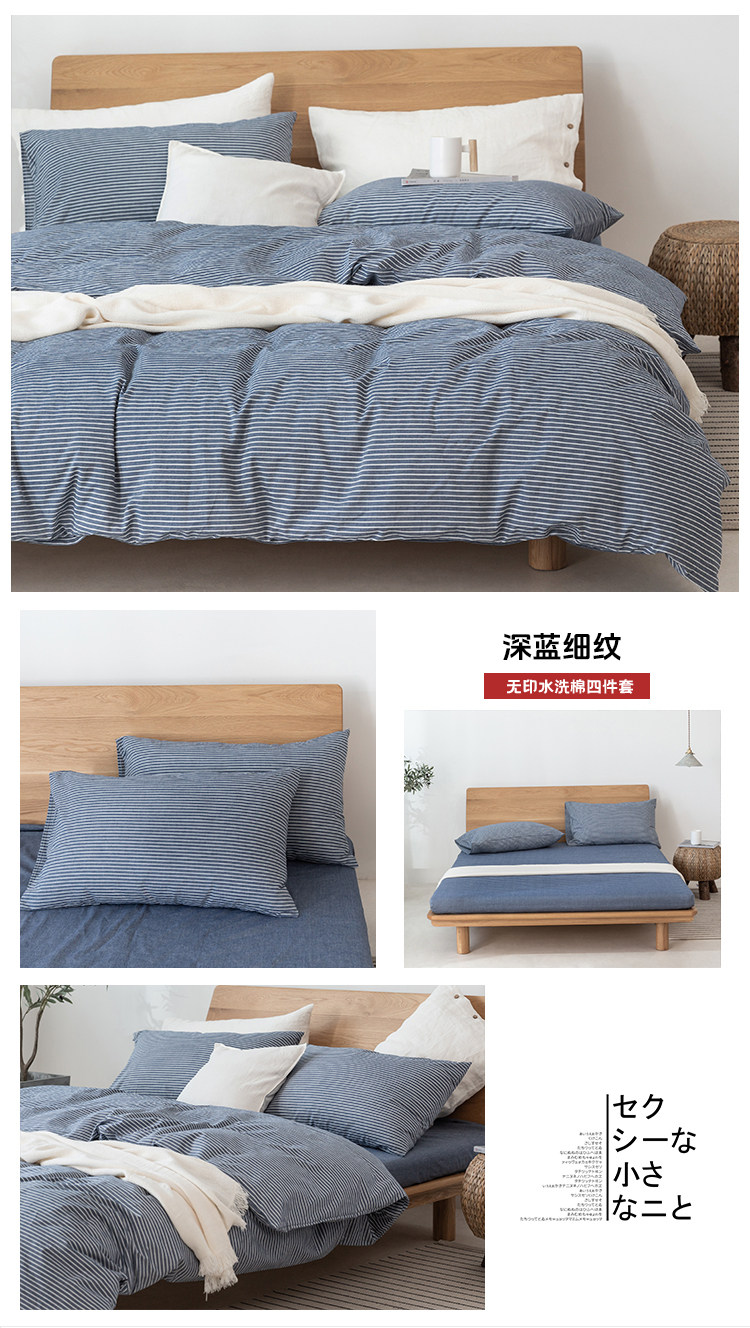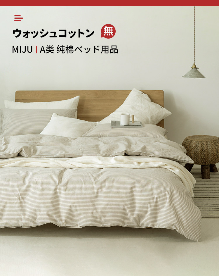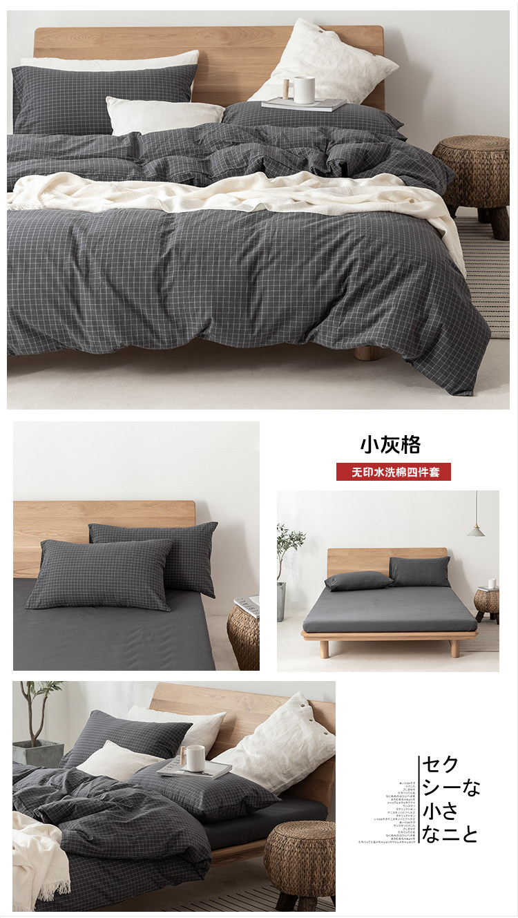 MIJU覔居純棉床上四件套全棉純色水洗床品床單被套床包宿捨三件套