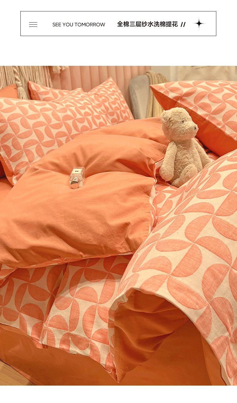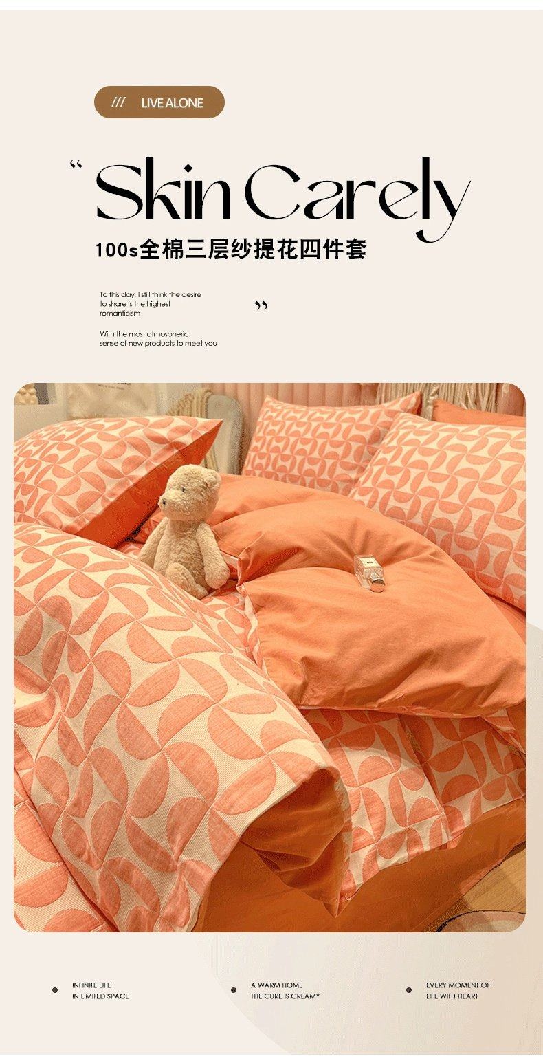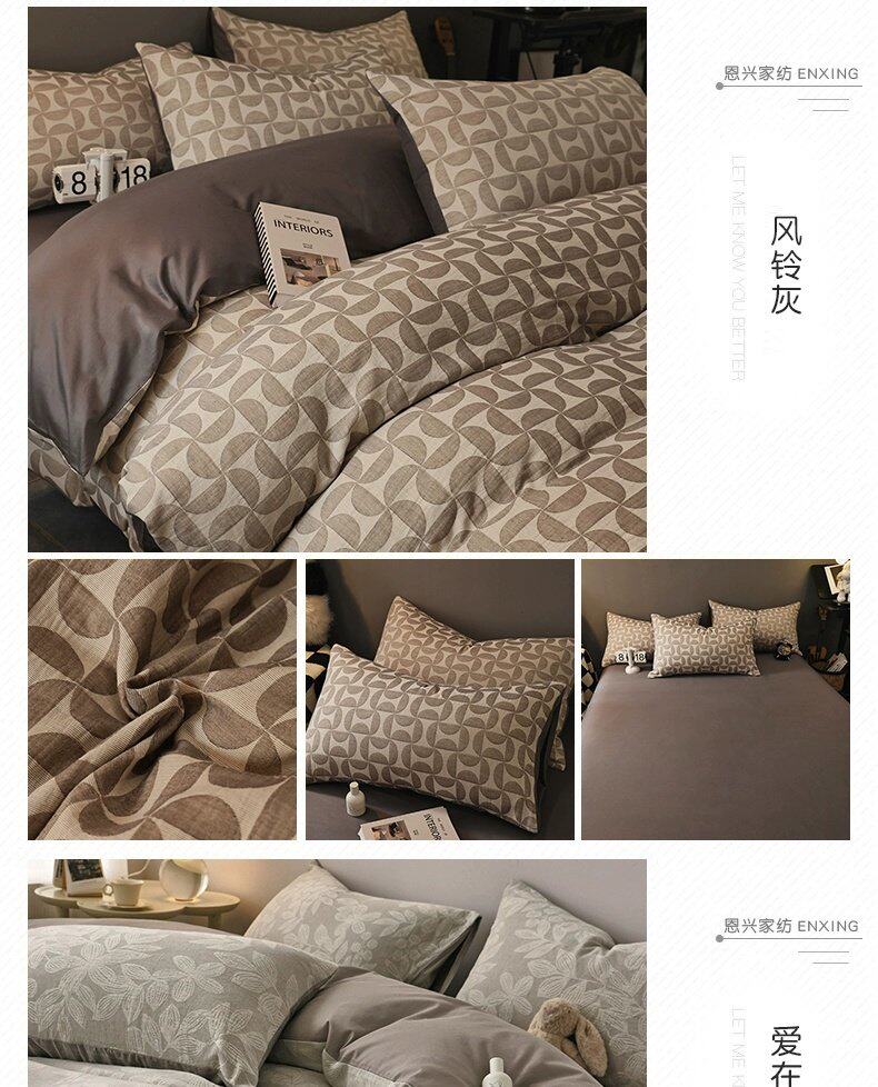 雙層紗純棉床上四件套100全棉被套輕奢高級感床品三件套床單床包4