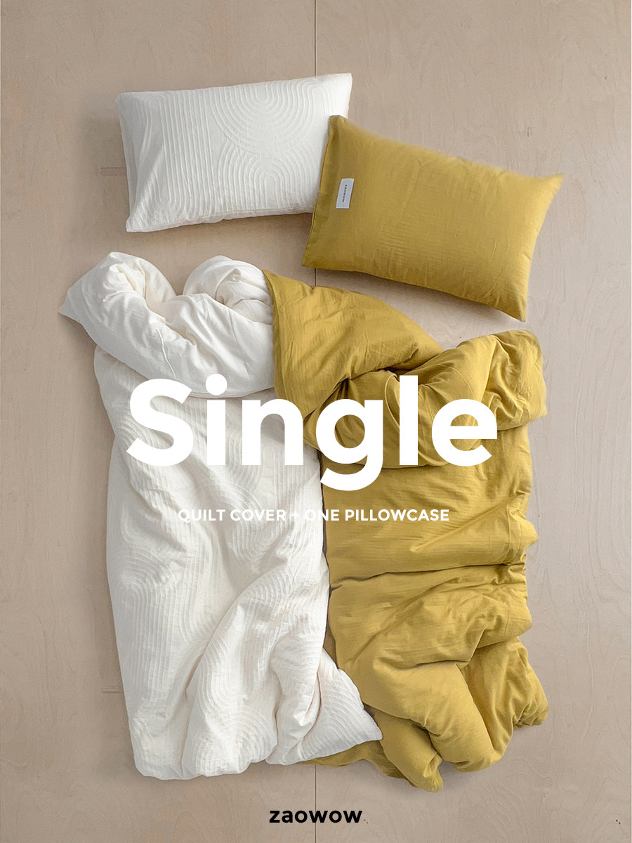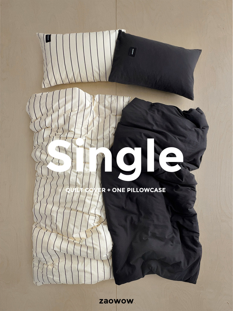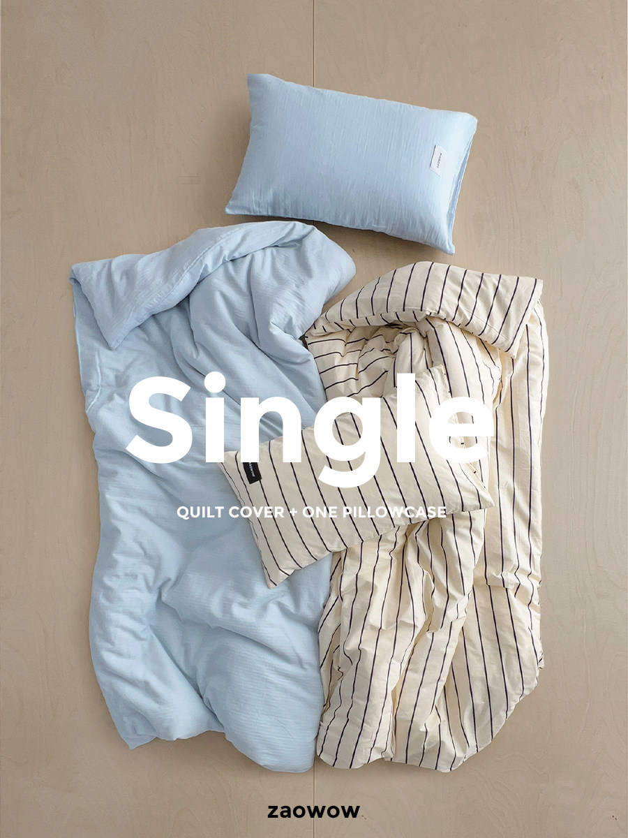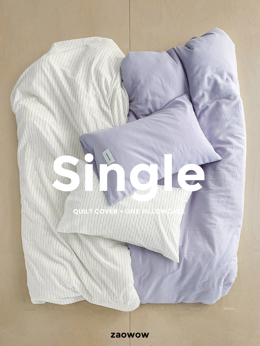 造臥zwow單人床夫妻情侶兒童單被枕套純色條紋150*200純全棉床品