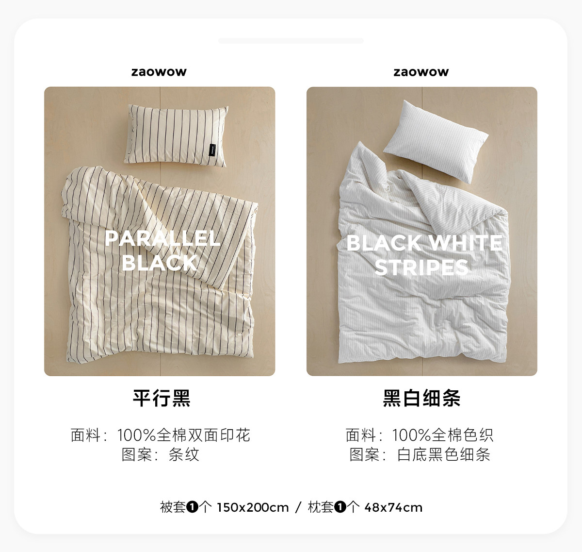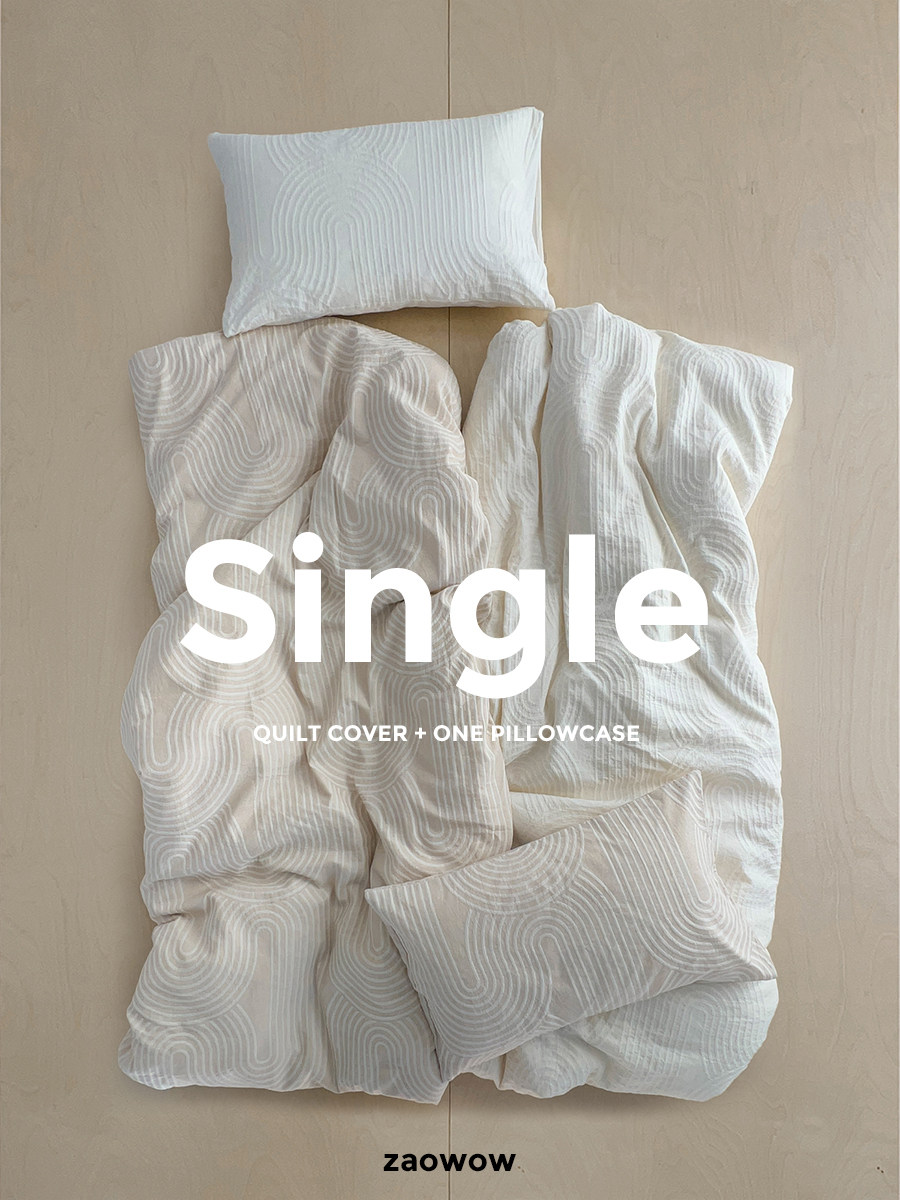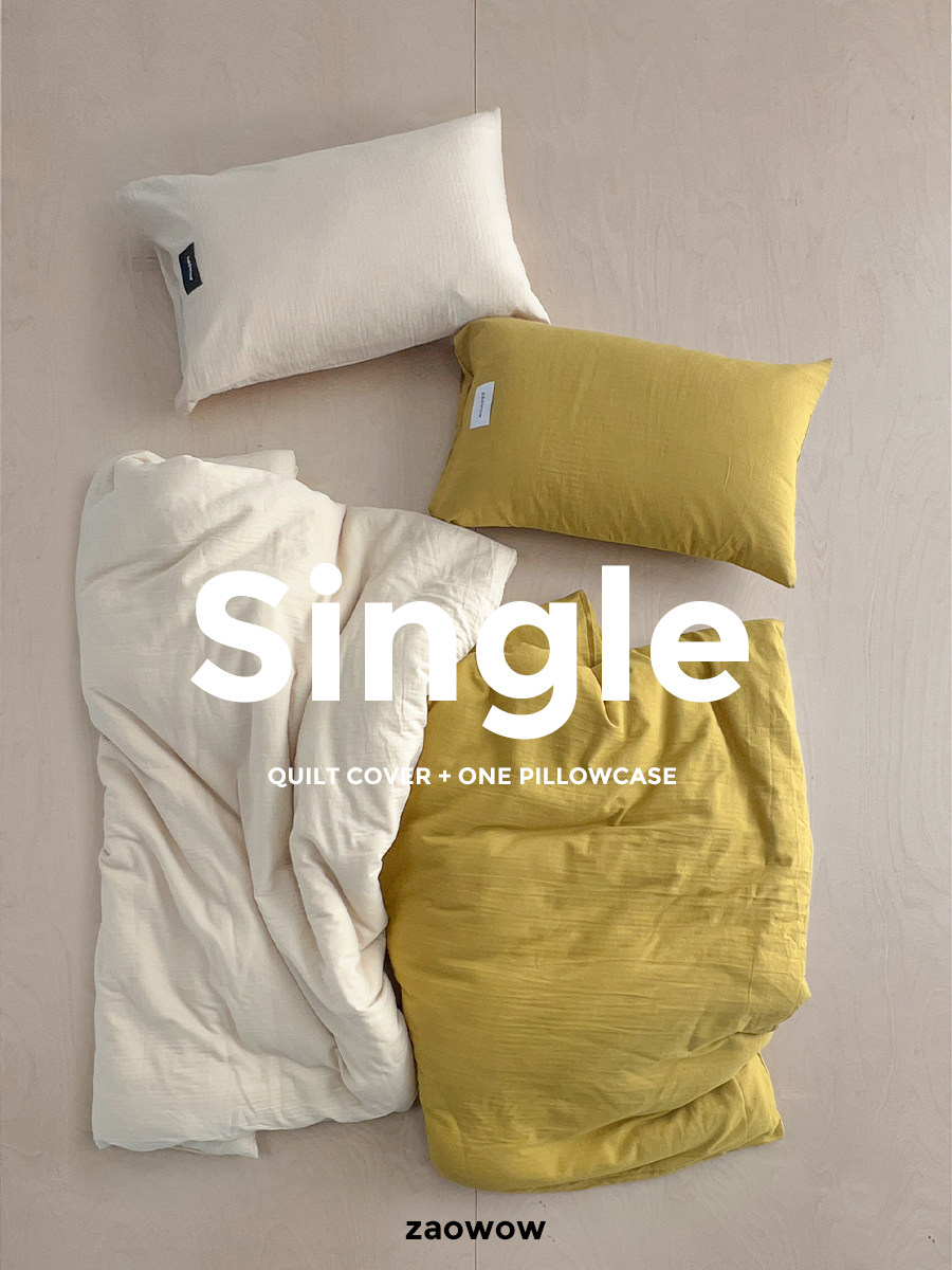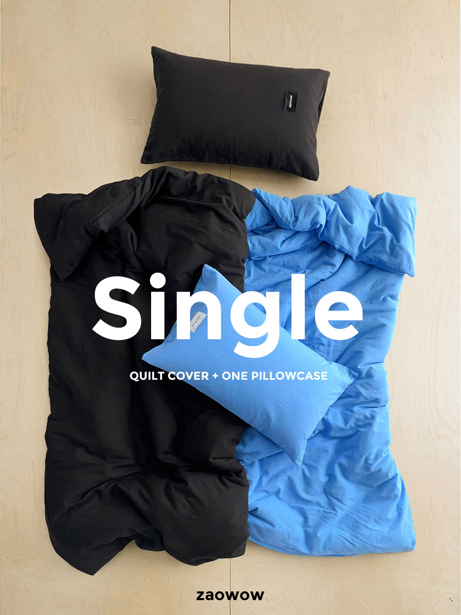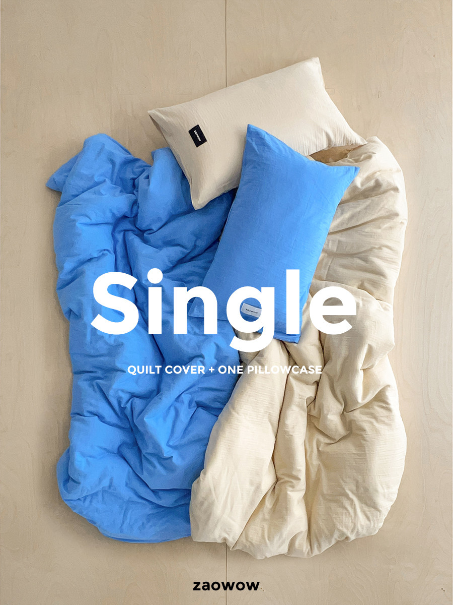 造臥zwow單人床夫妻情侶兒童單被枕套純色條紋150*200純全棉床品