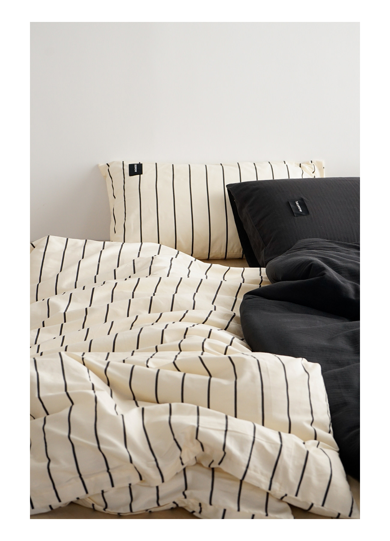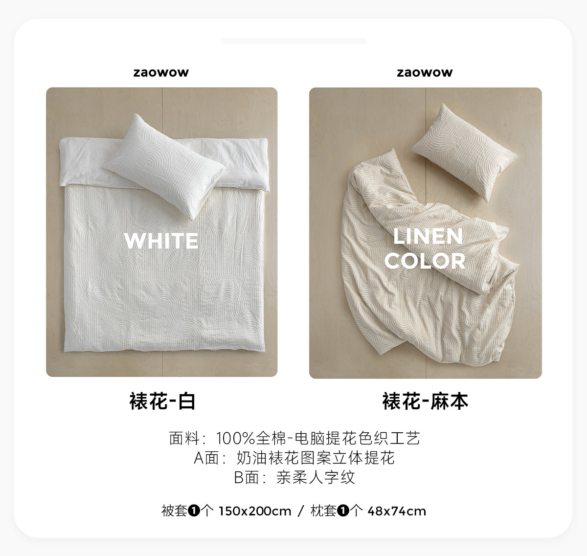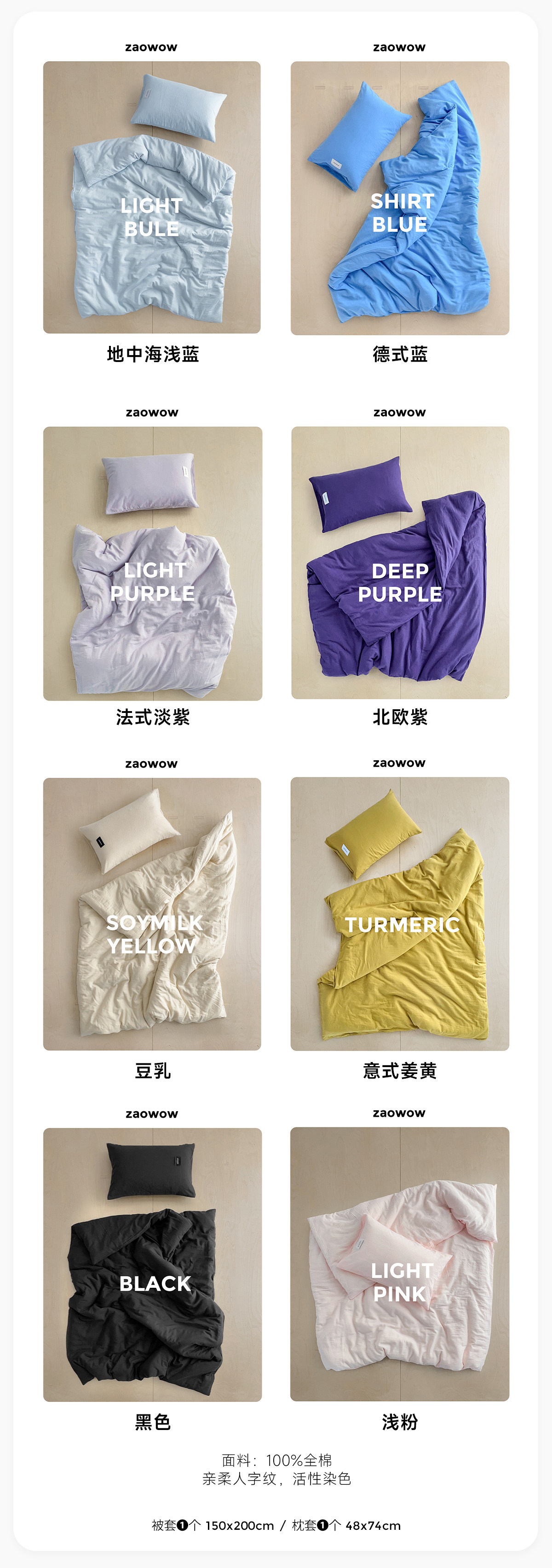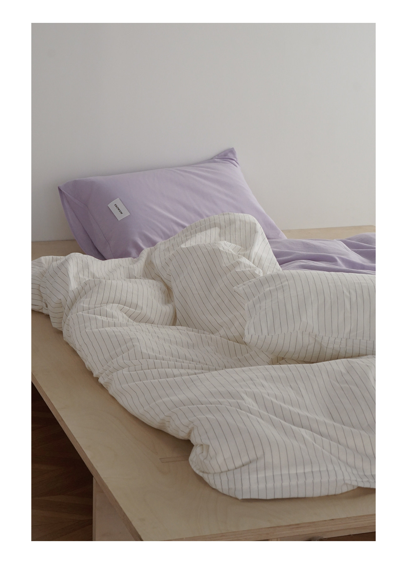 造臥zwow單人床夫妻情侶兒童單被枕套純色條紋150*200純全棉床品