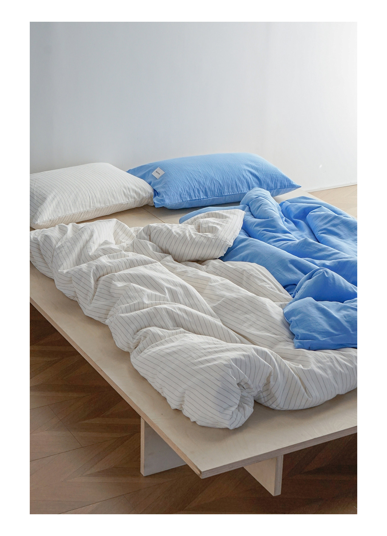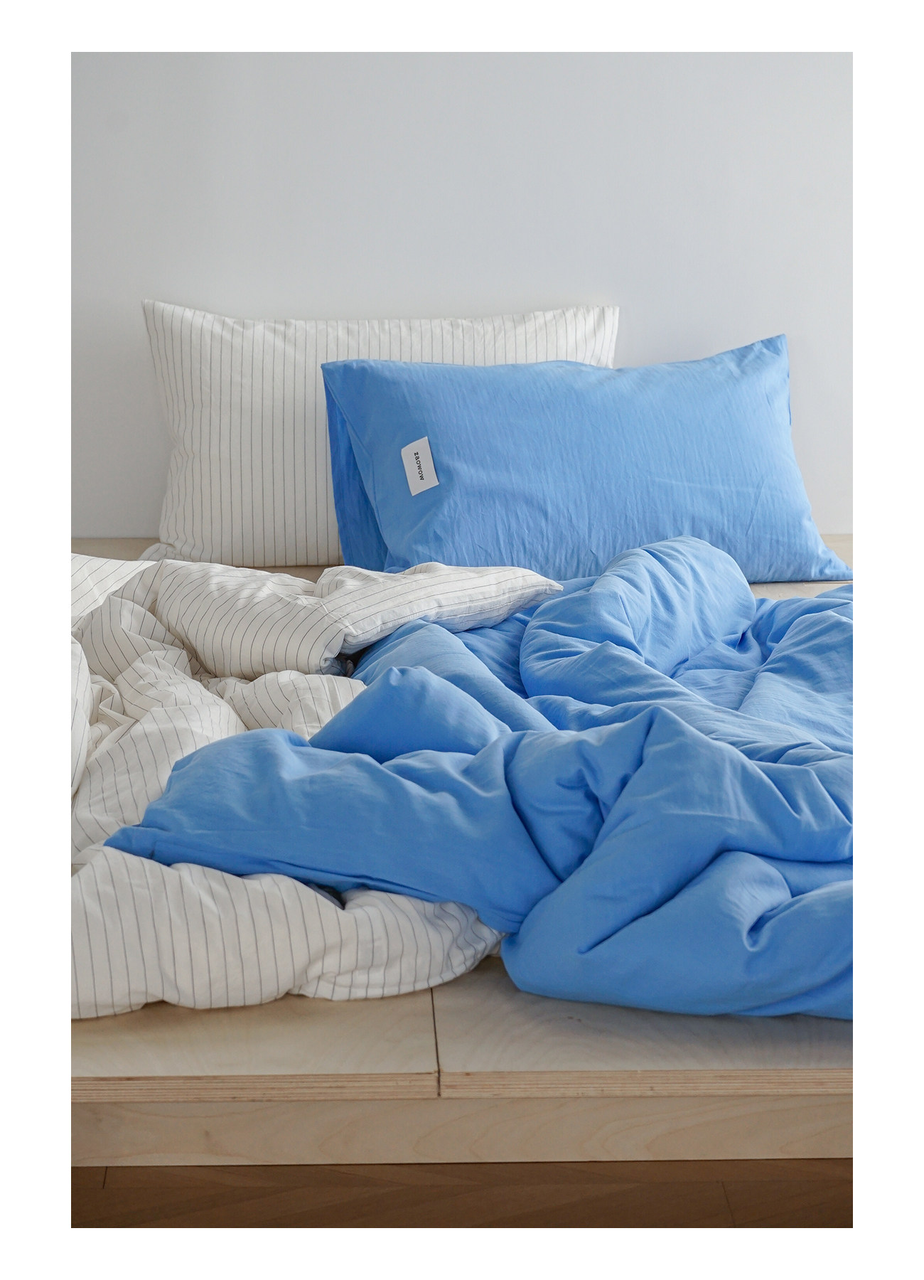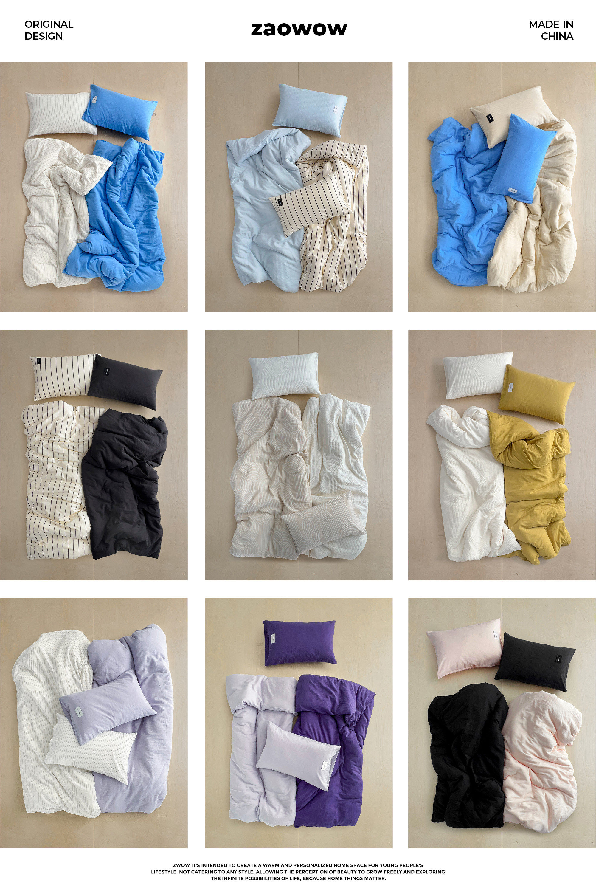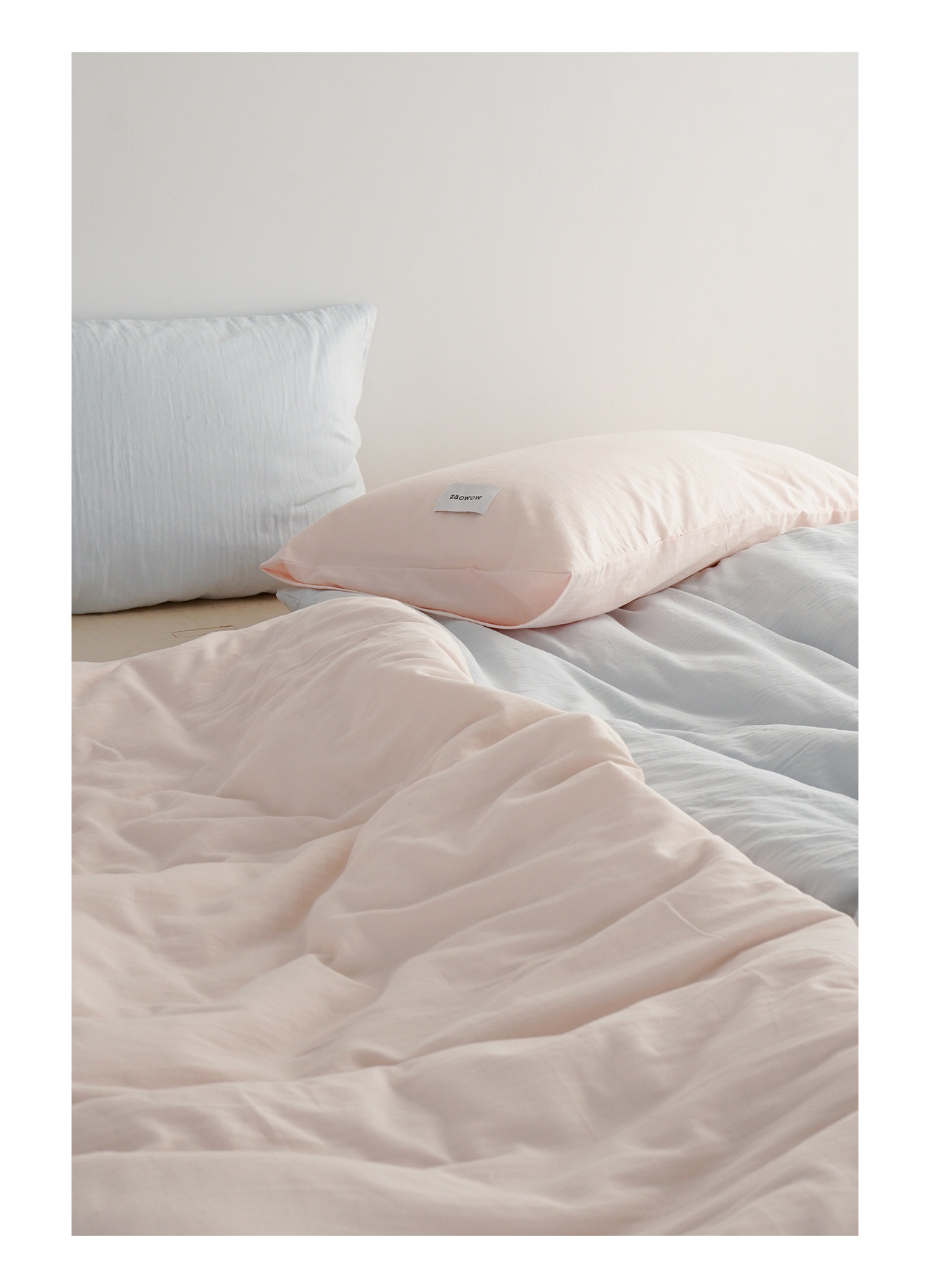 造臥zwow單人床夫妻情侶兒童單被枕套純色條紋150*200純全棉床品