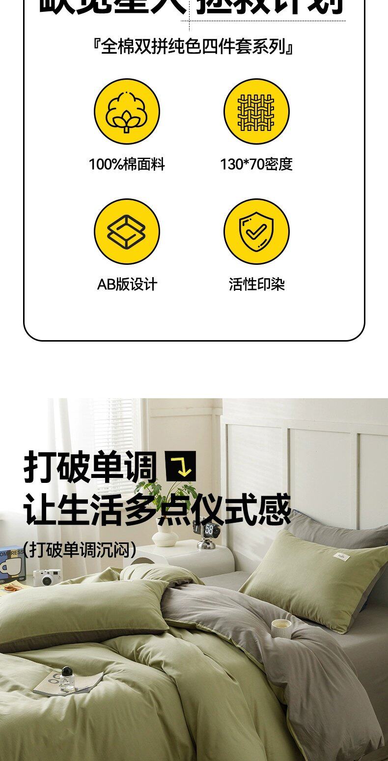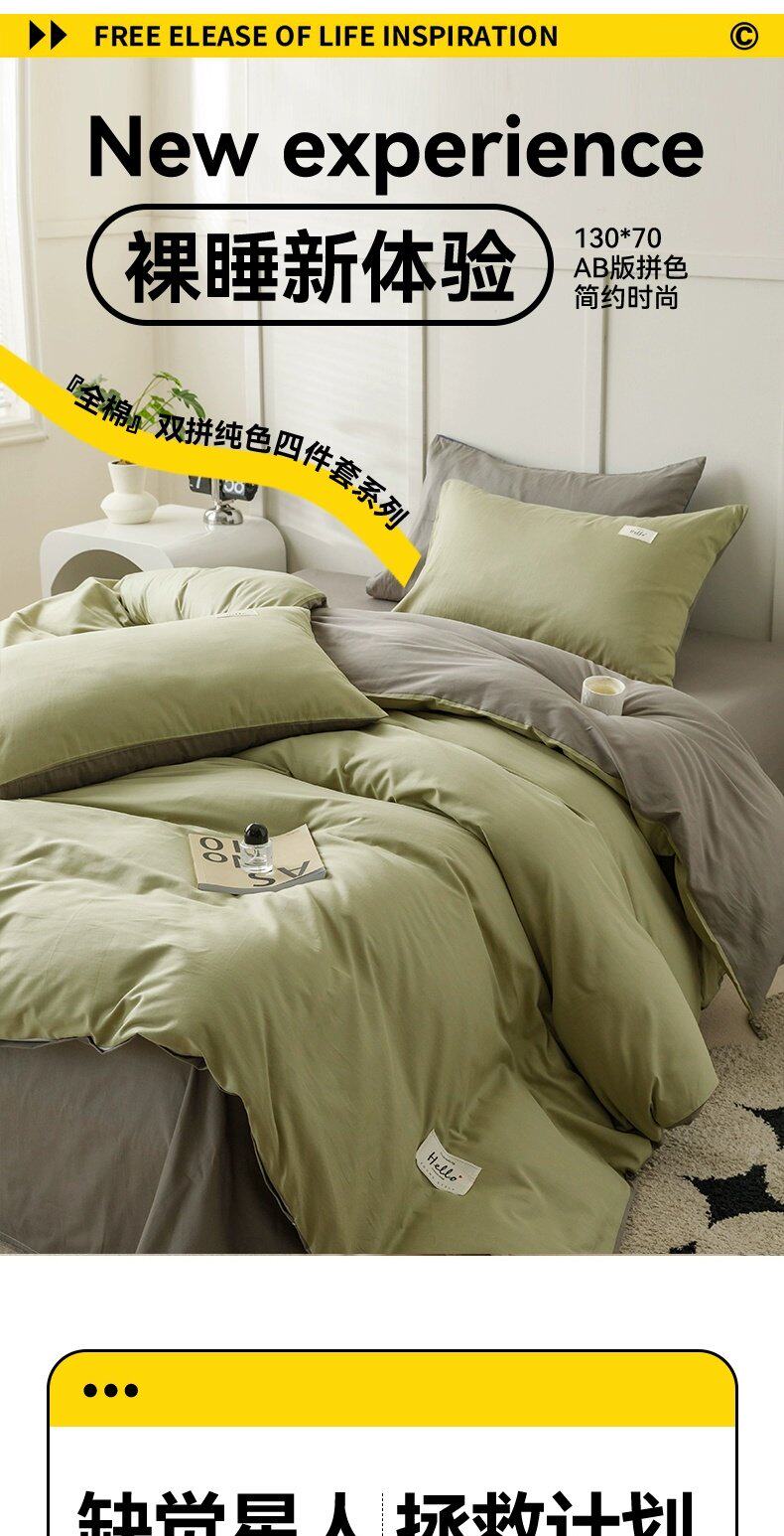 2026新款純棉床上四件套100全棉床品綠被套宿捨床單人三件套床包