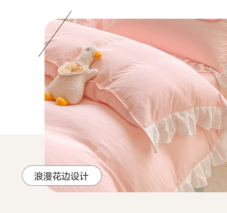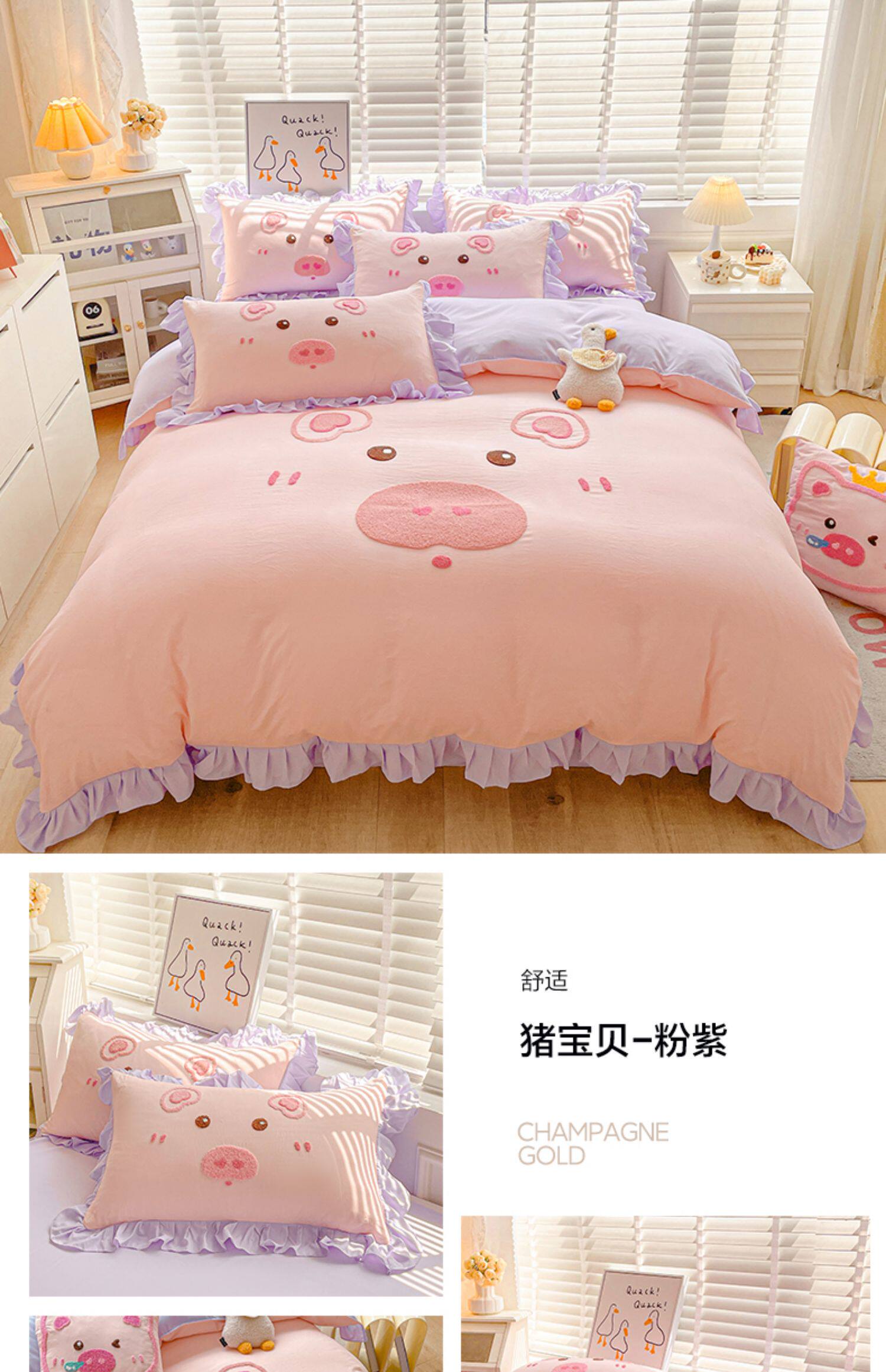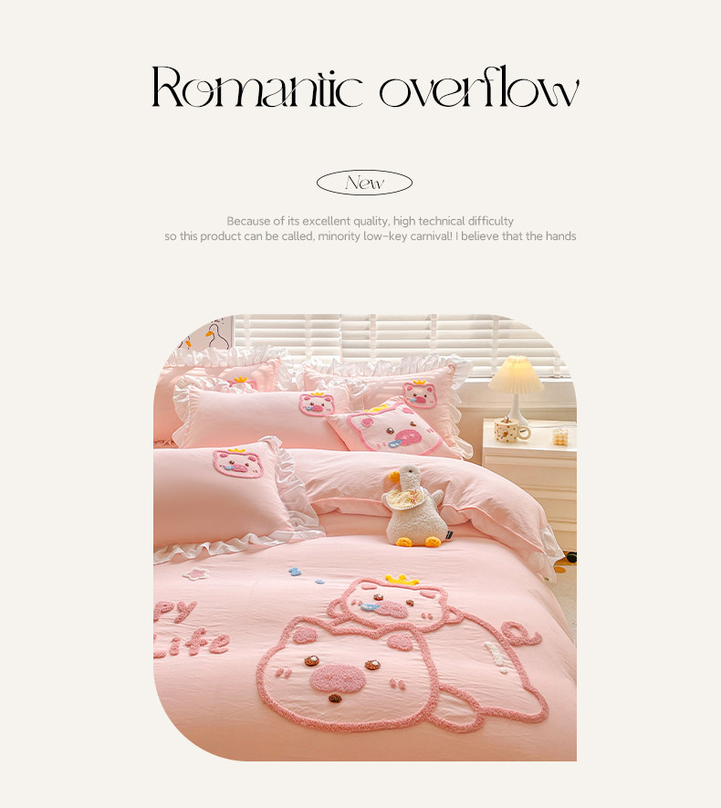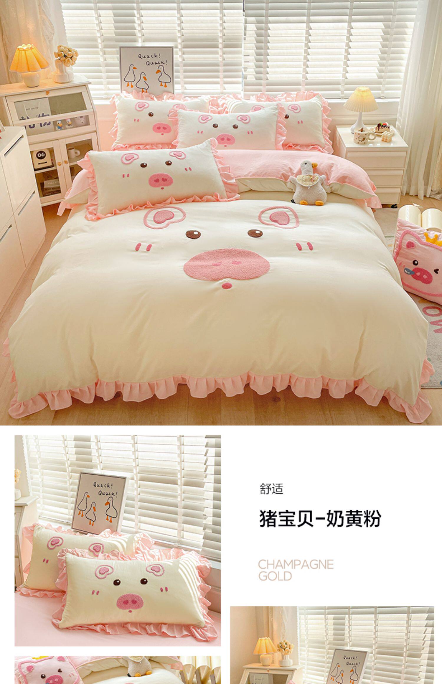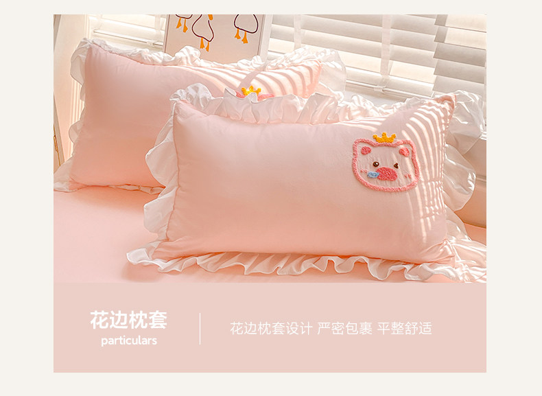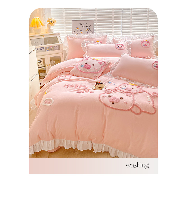 可愛花邊四件套萌豬毛巾綉非全棉純棉被罩裸睡少女床罩床包三件套