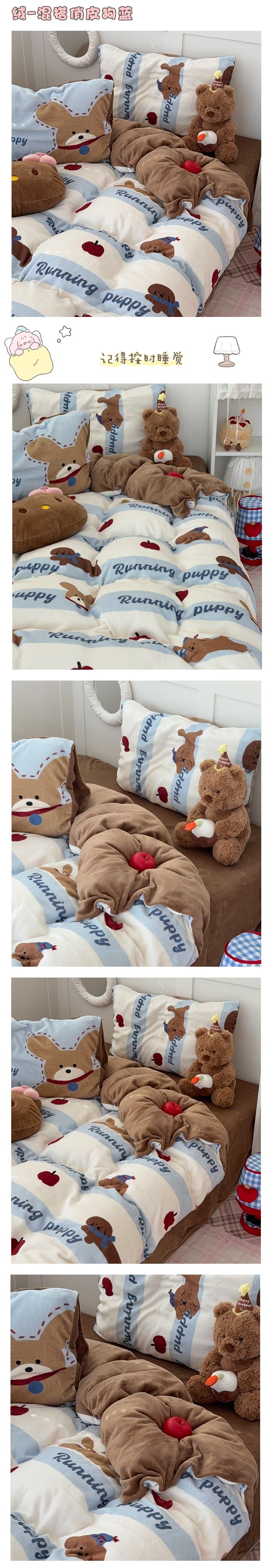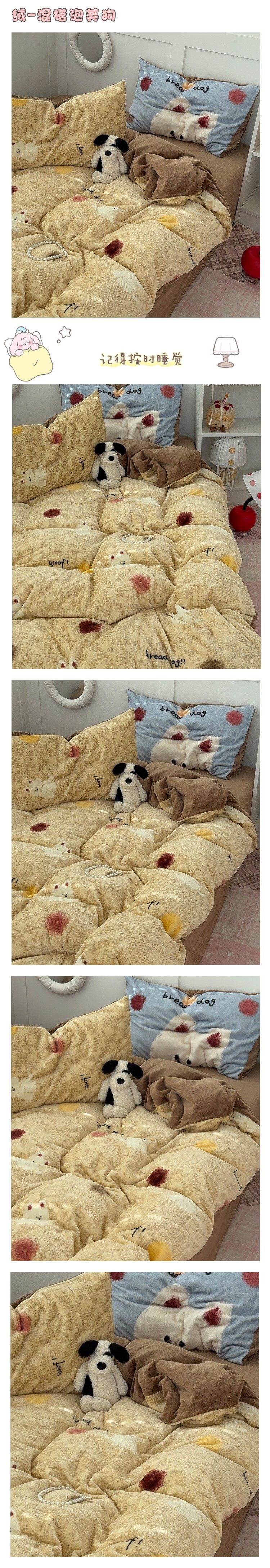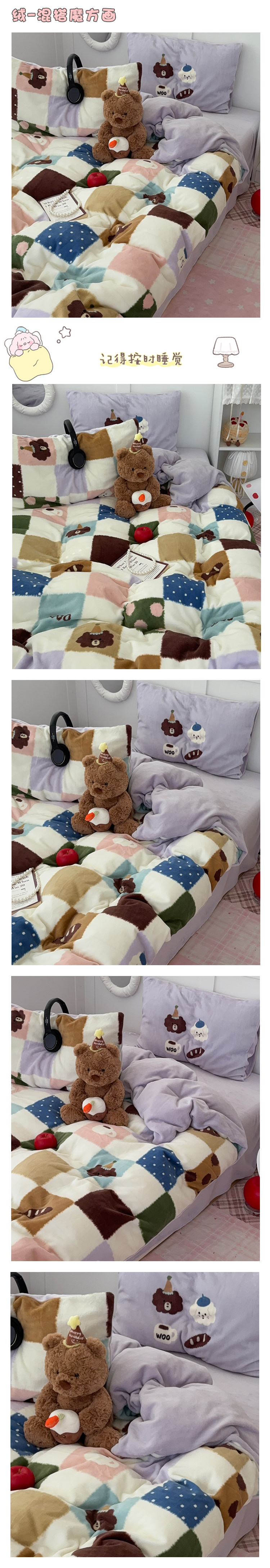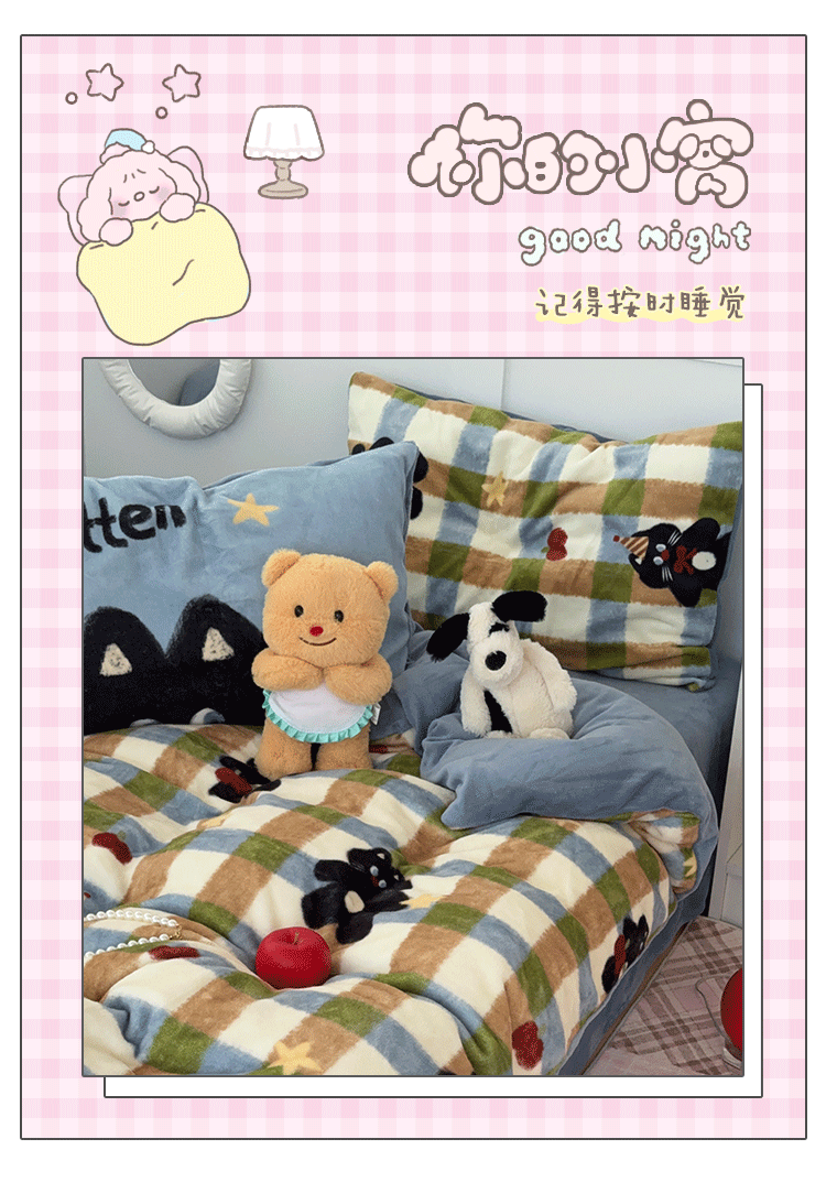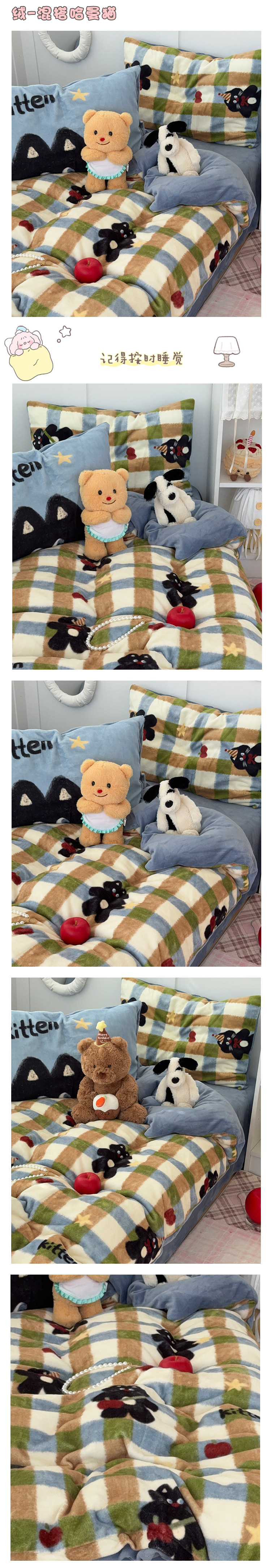 多巴胺小黑貓牛奶絨保暖四件套ins韓系加厚雙面珊瑚絨被套1.8床單