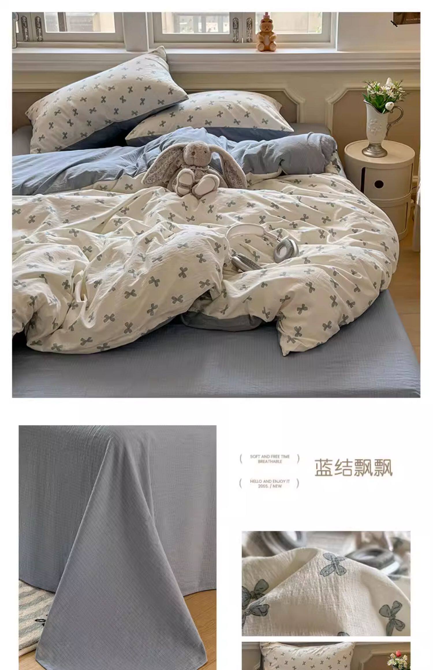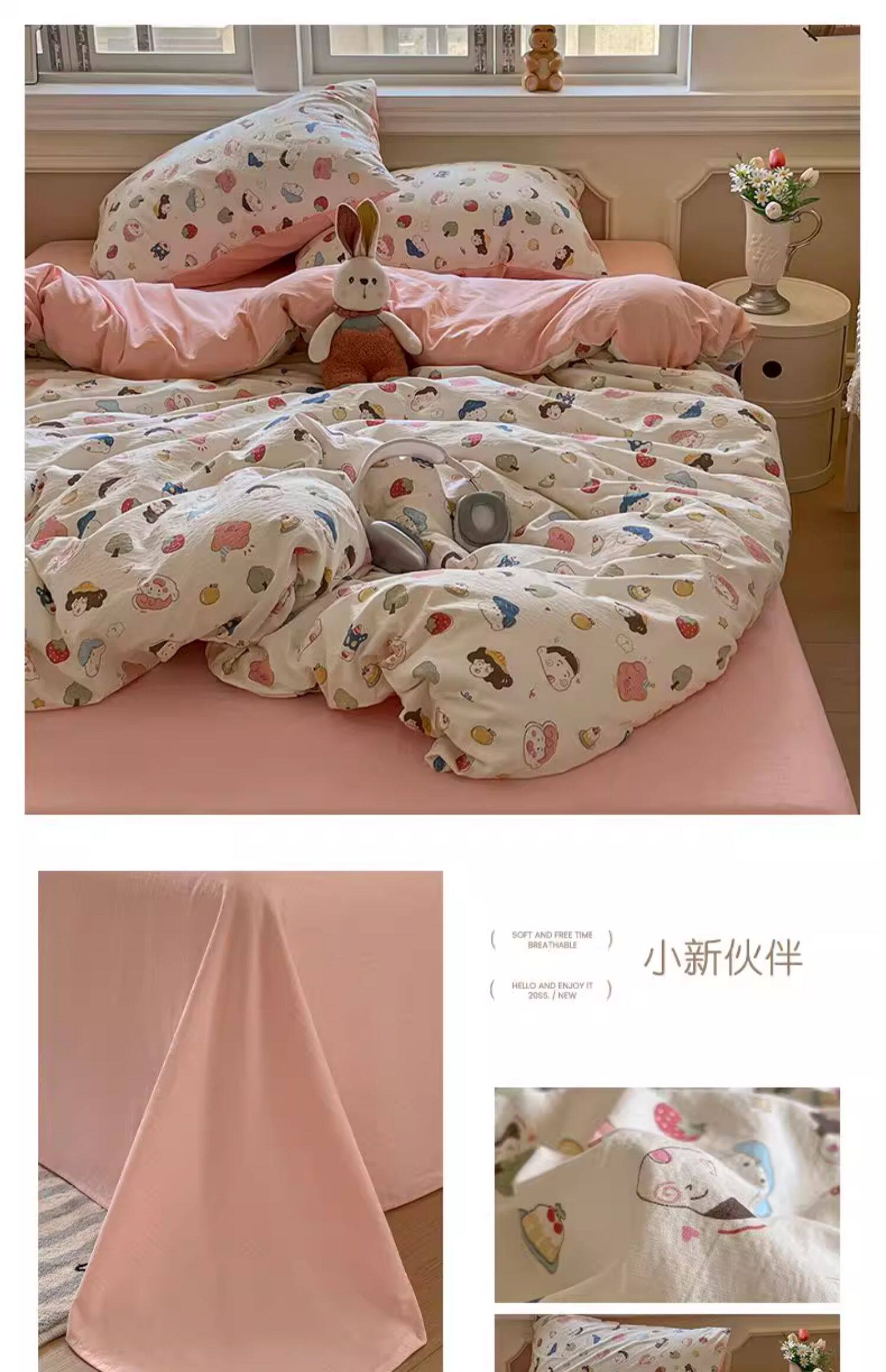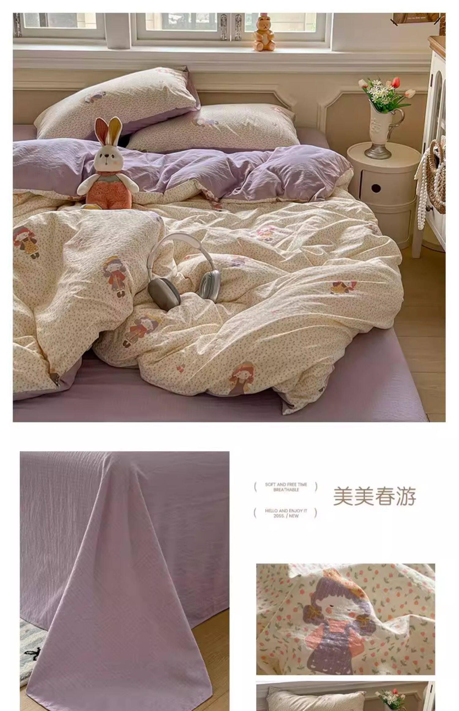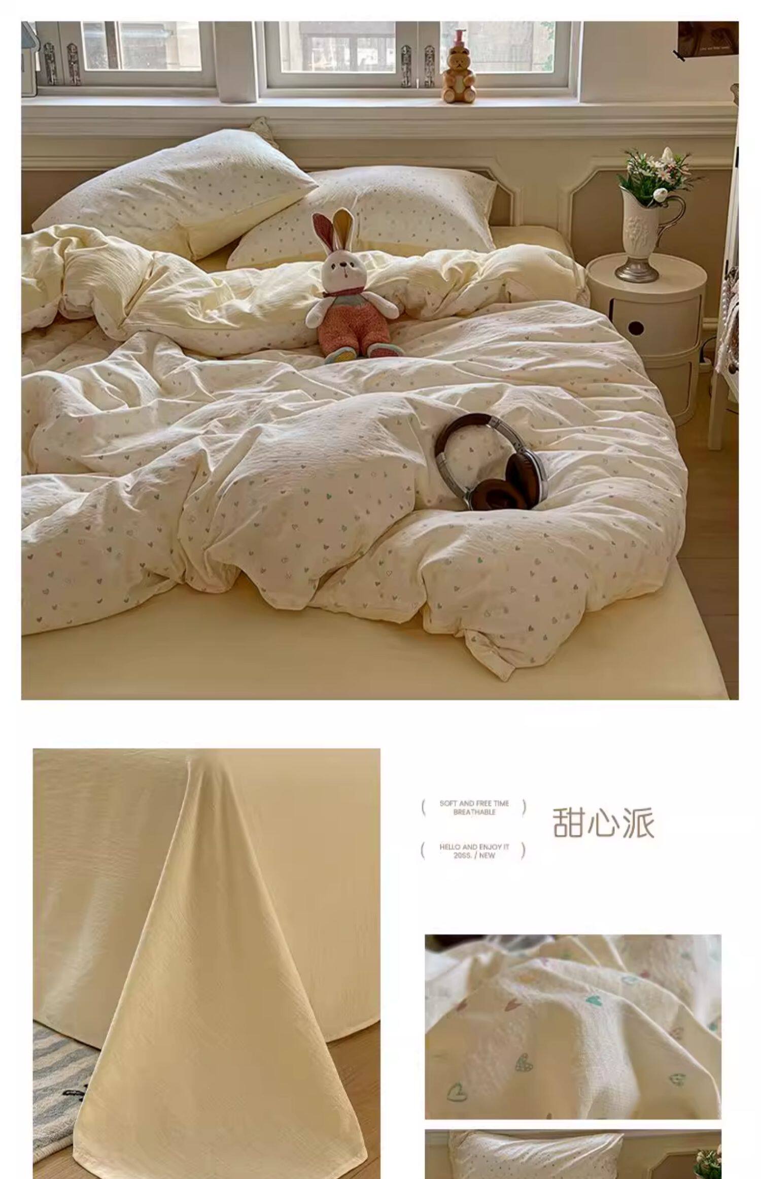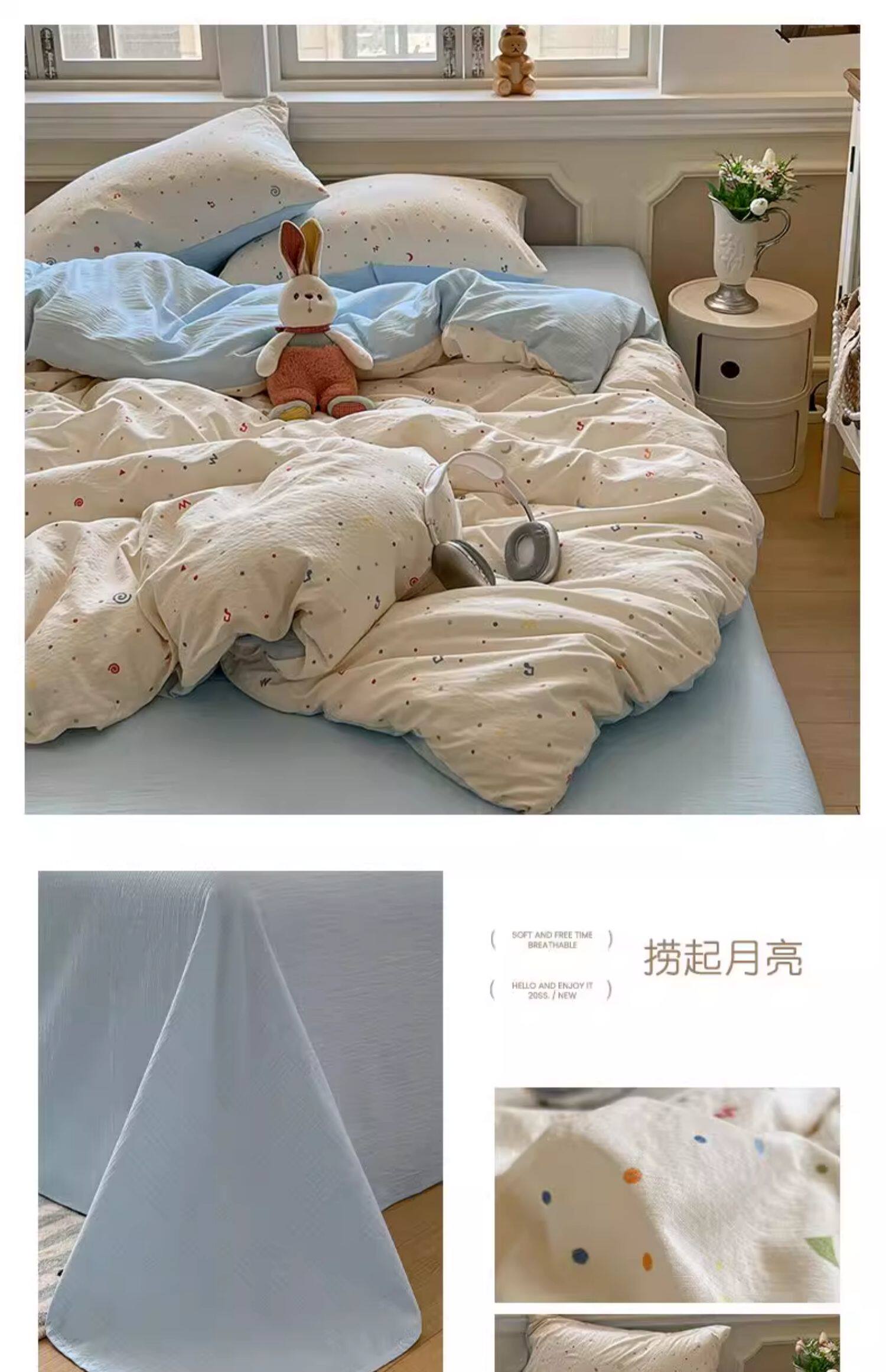 雲感褶皺風雙層紗四件套軟糯床單床包款小清新卡通學生宿捨三件套