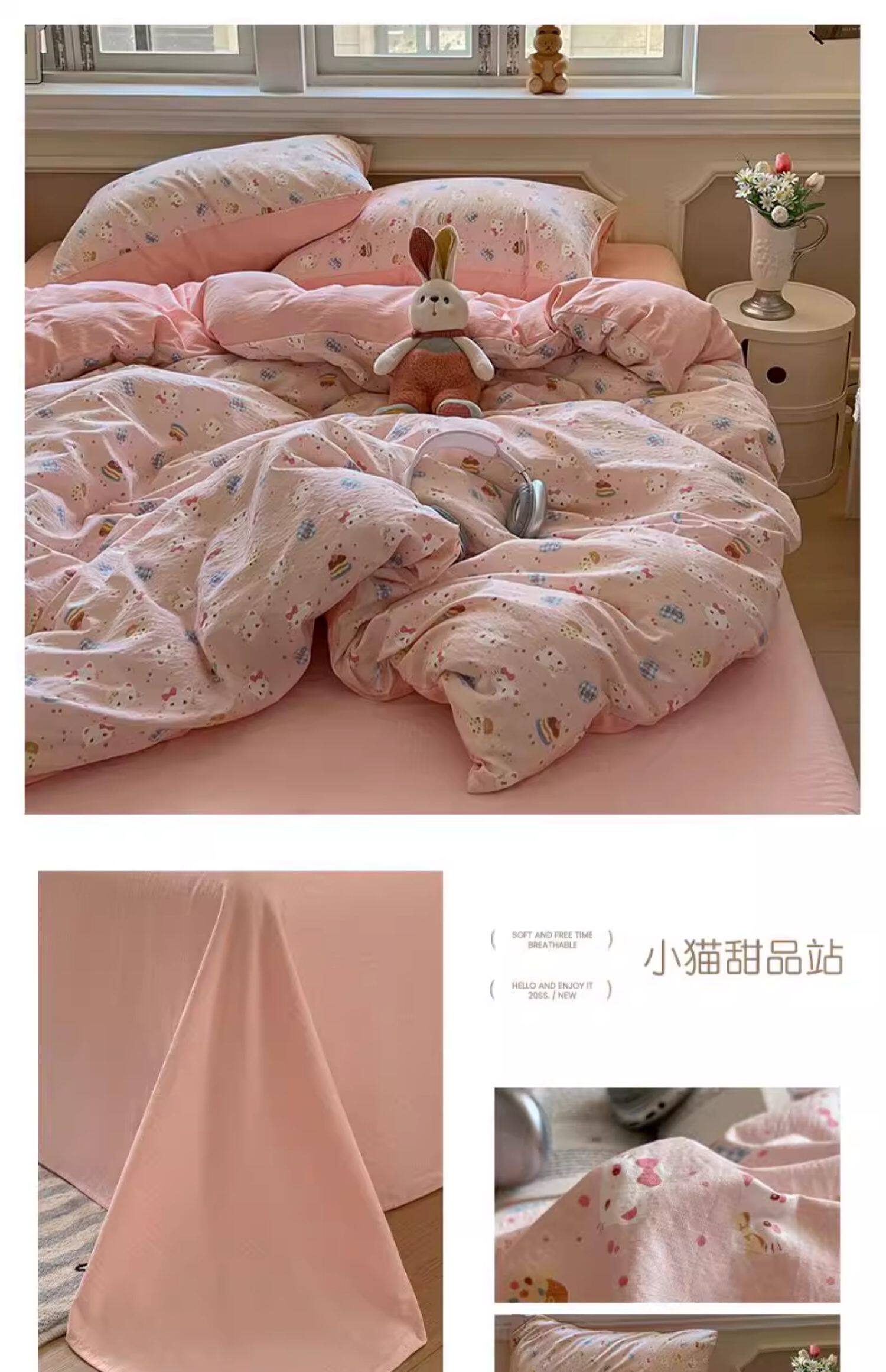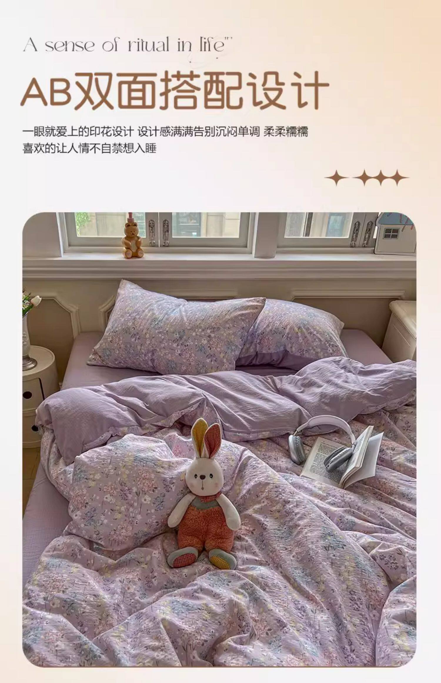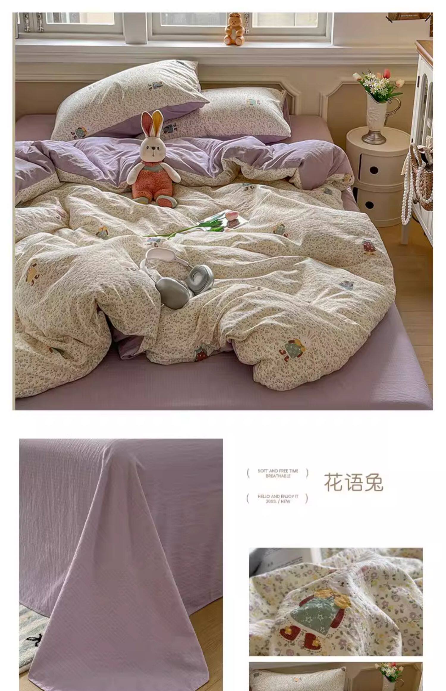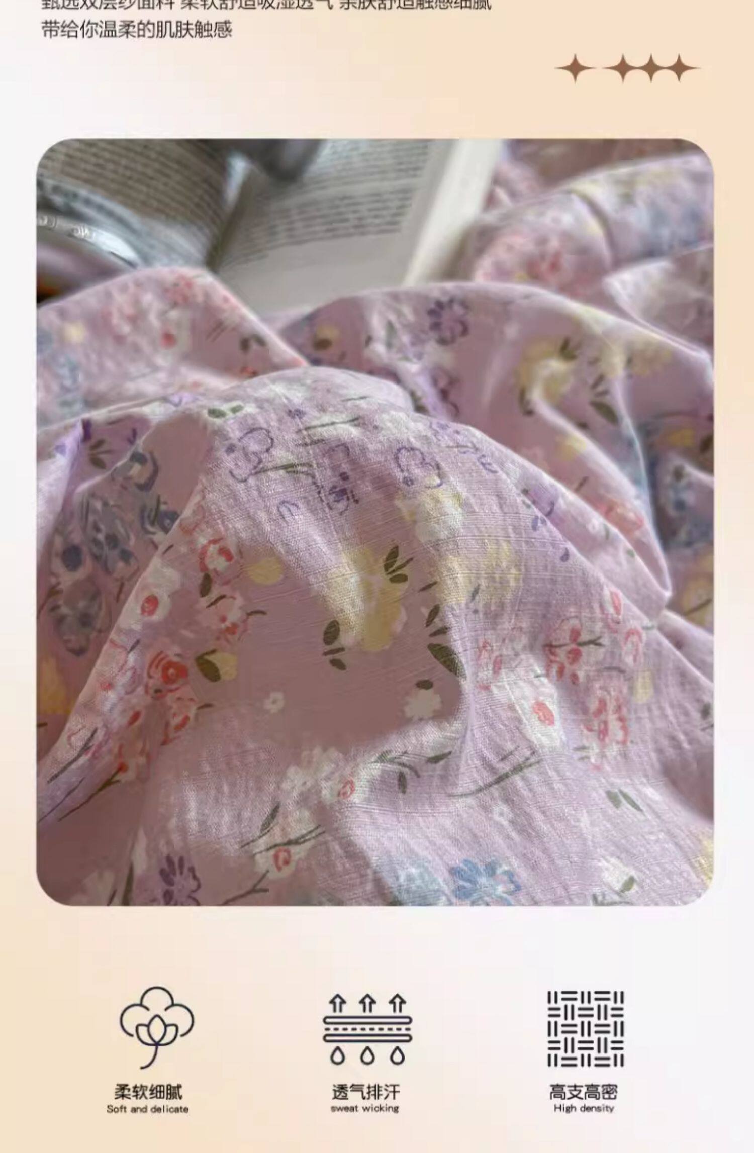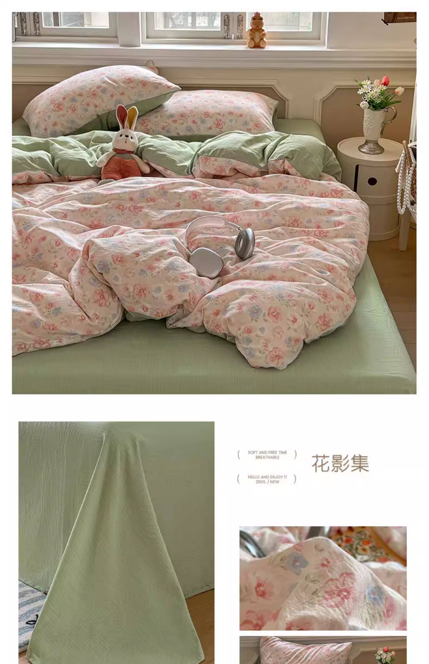 雲感褶皺風雙層紗四件套軟糯床單床包款小清新卡通學生宿捨三件套