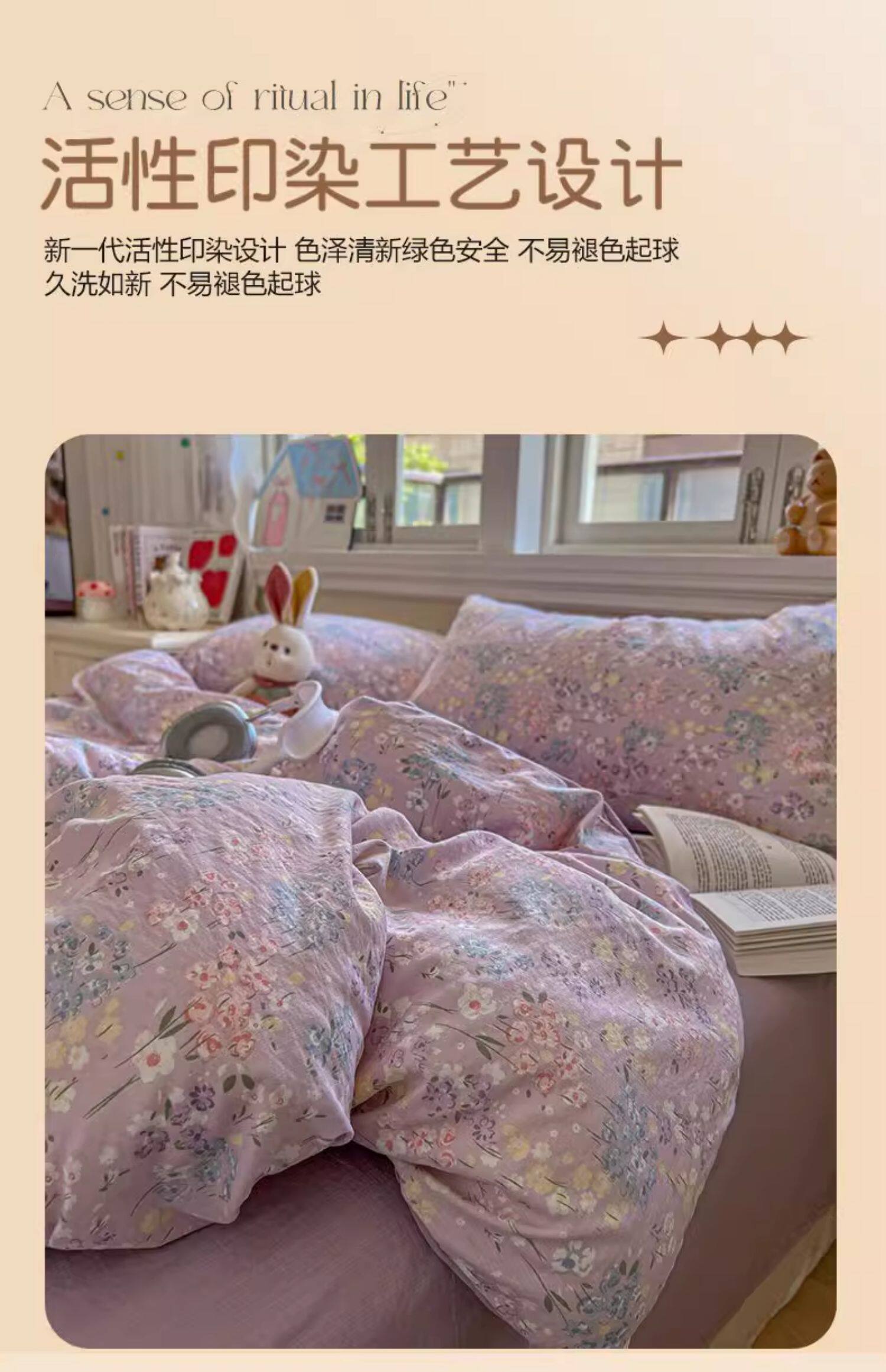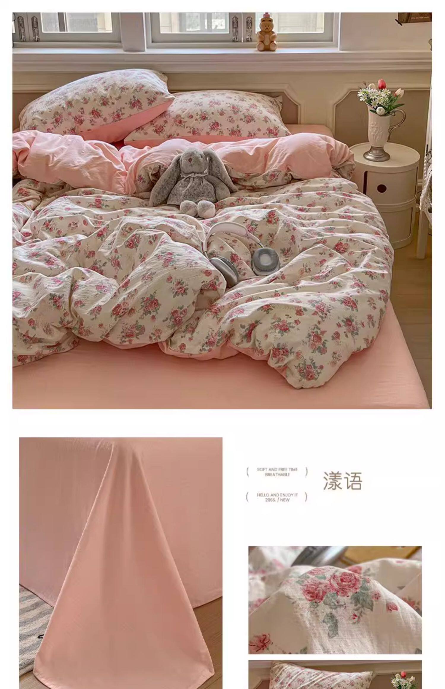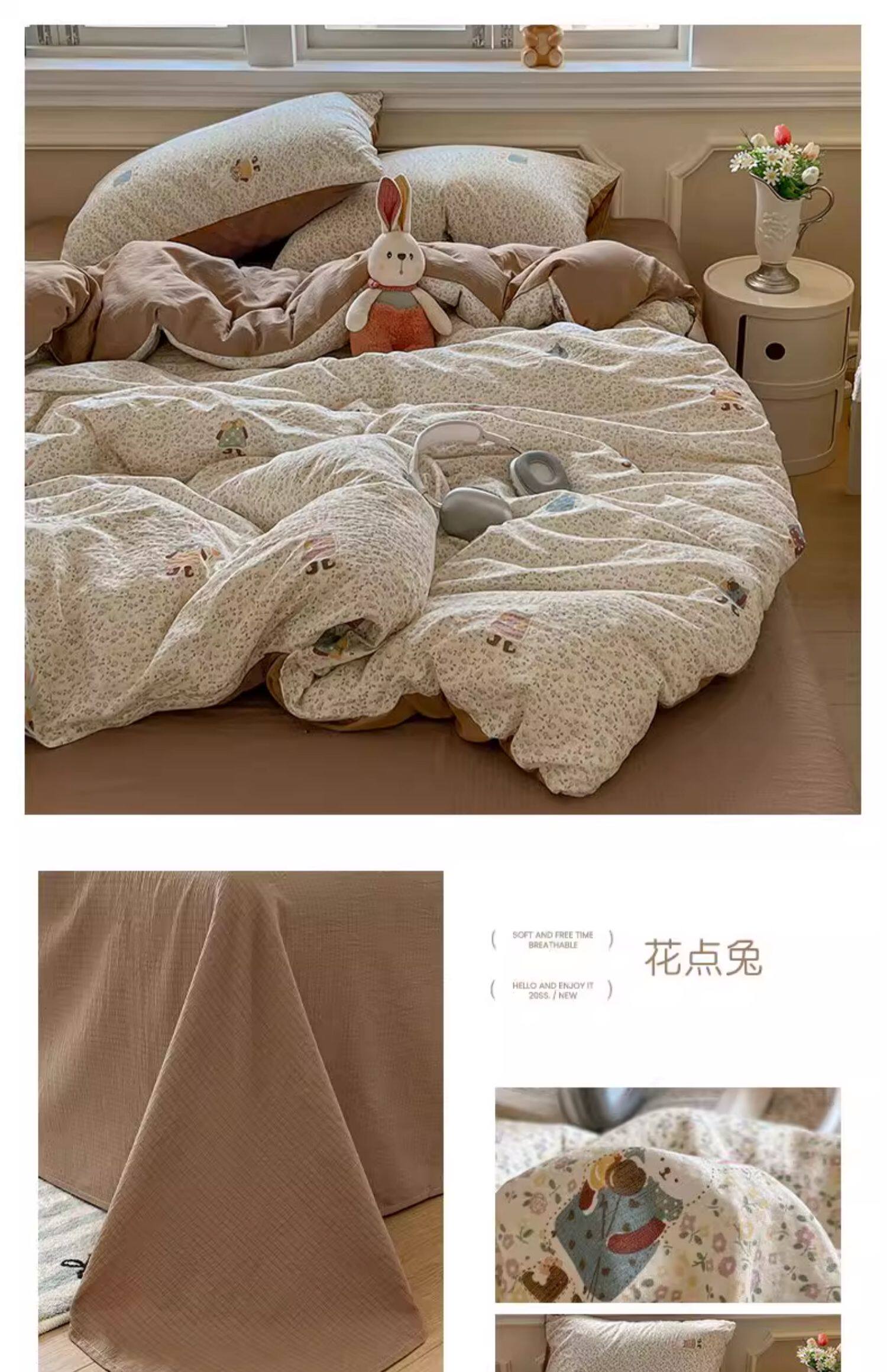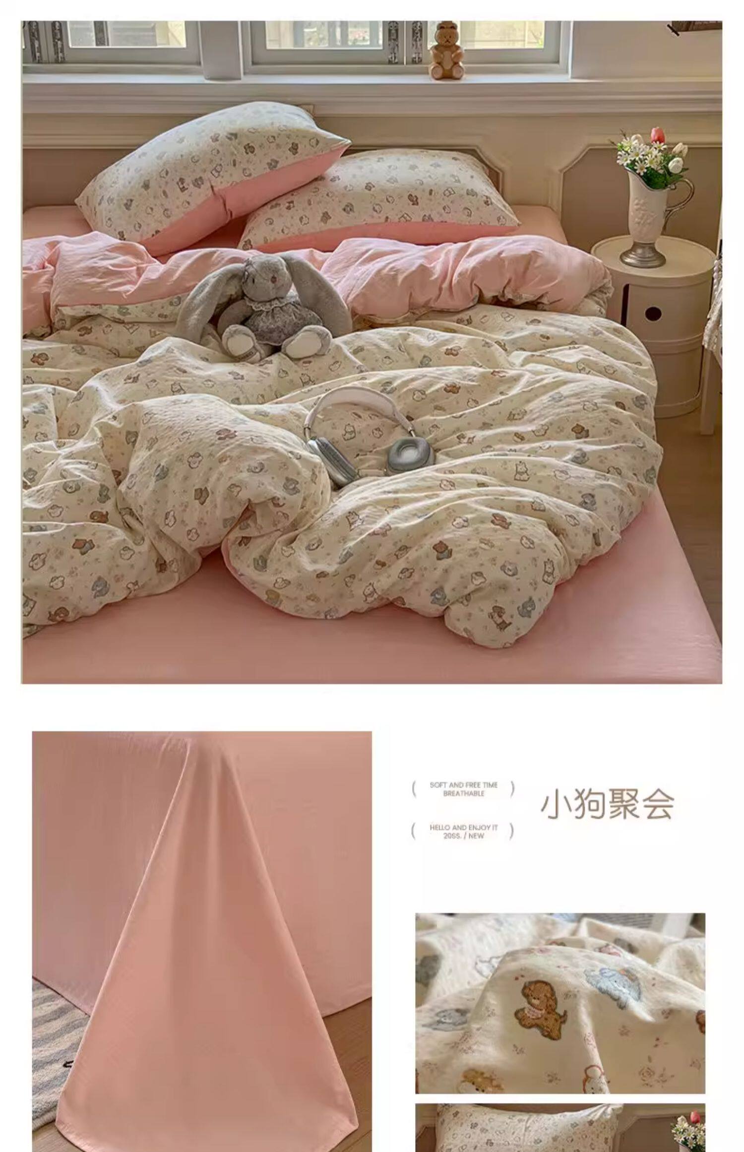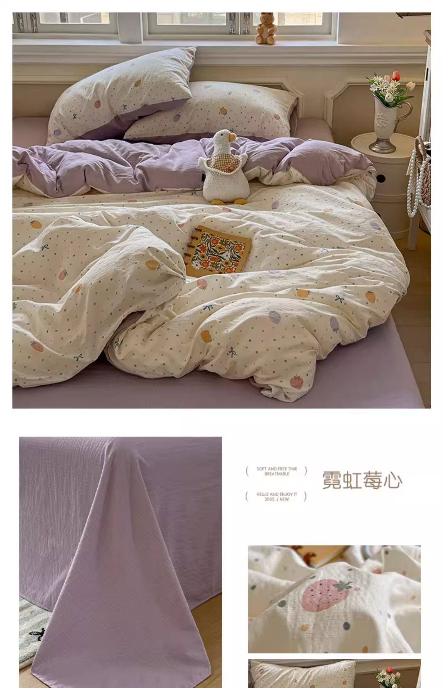 雲感褶皺風雙層紗四件套軟糯床單床包款小清新卡通學生宿捨三件套
